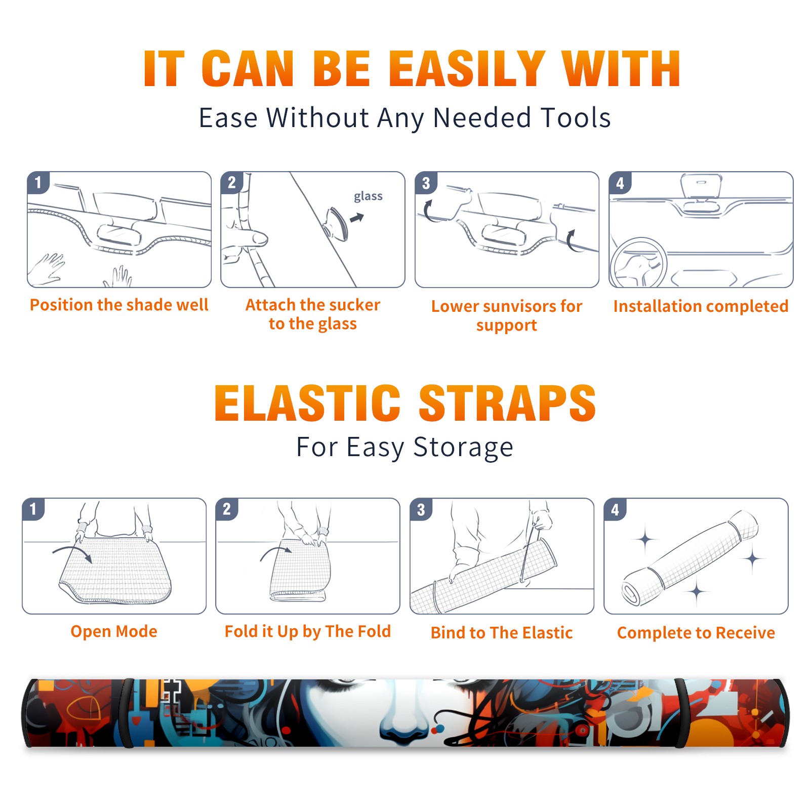 • Diameter /Size 63"L x 33.5"W Made from excellent materials which makes it sturdy and protects the car from the sun. Easy to use and pack. Makes the interior of the car cooler.You can easily stash the sunshade in the storage bag or store long term.It open and closes easy. Also the leather storage bag is durable and easy to put the umbrella back into.This windshield sunshade provides complete coverage and keeps your car interior cool under direct sun. It is easy to open and position under the windshield and around the rear-view mirror. Makes Your Car Easy To Identify, Perfect For Finding Your Car In Crowded Parking Lots And Garages.Great Choice: It Is A Great Gift For Dad, Boyfriend, Brother, Brother And Uncle, Friends, Classmates, Family And So On. Notice: Due To Difference Computer Monitors, The Color Maybe Slightly Different From Picture. As Different Measurement Methods, Measurement Data Will Float Within 2%.I Hope You Understand. If You Have Any Question About The Item Please Do Not Hesitate To Contact Us Immediately And We Will Give You A Satisfactory Reply Within 24 Hours.
