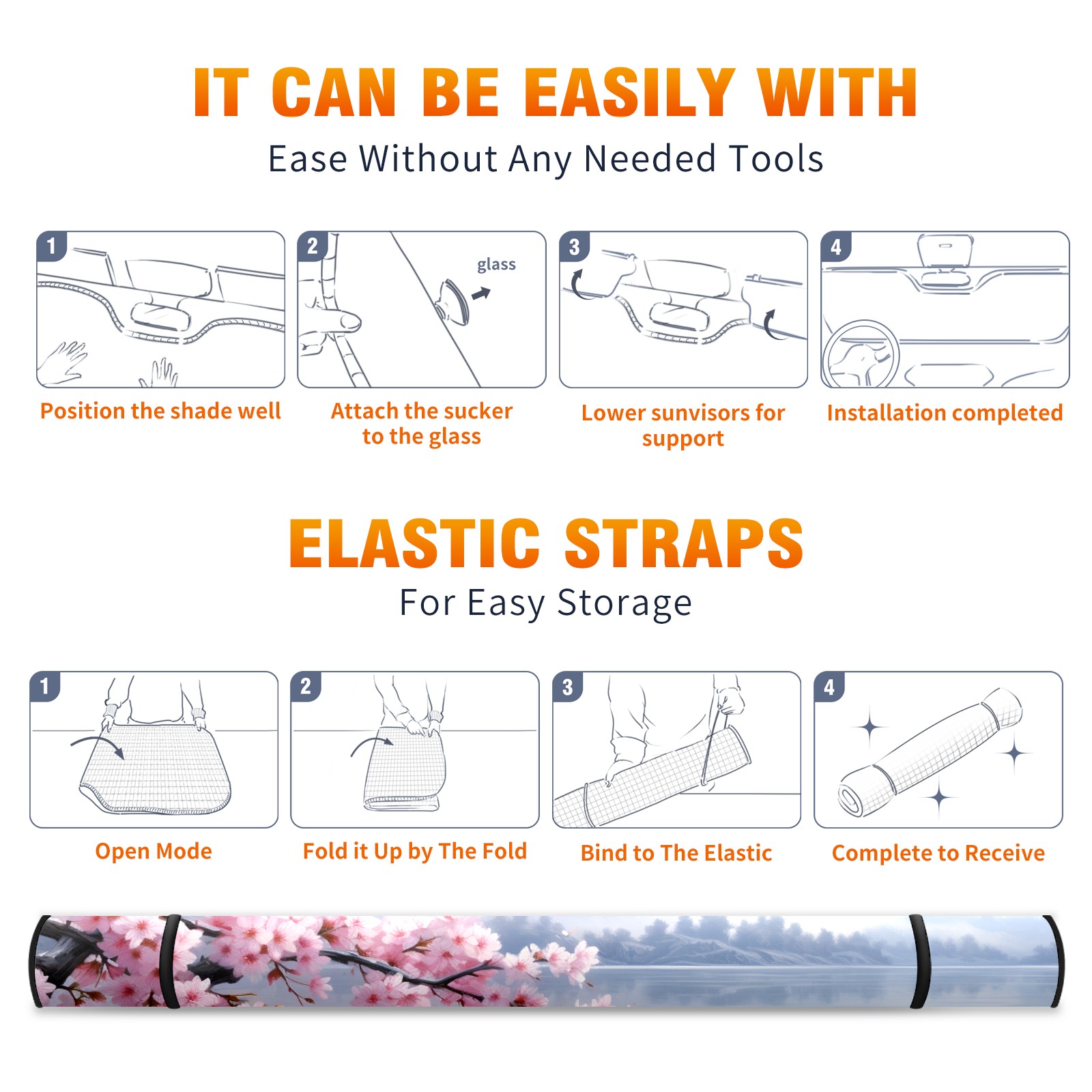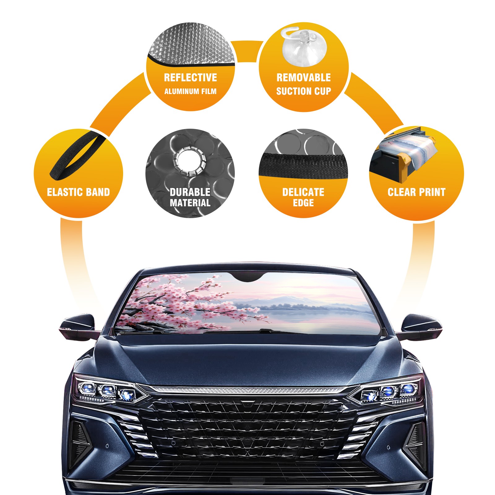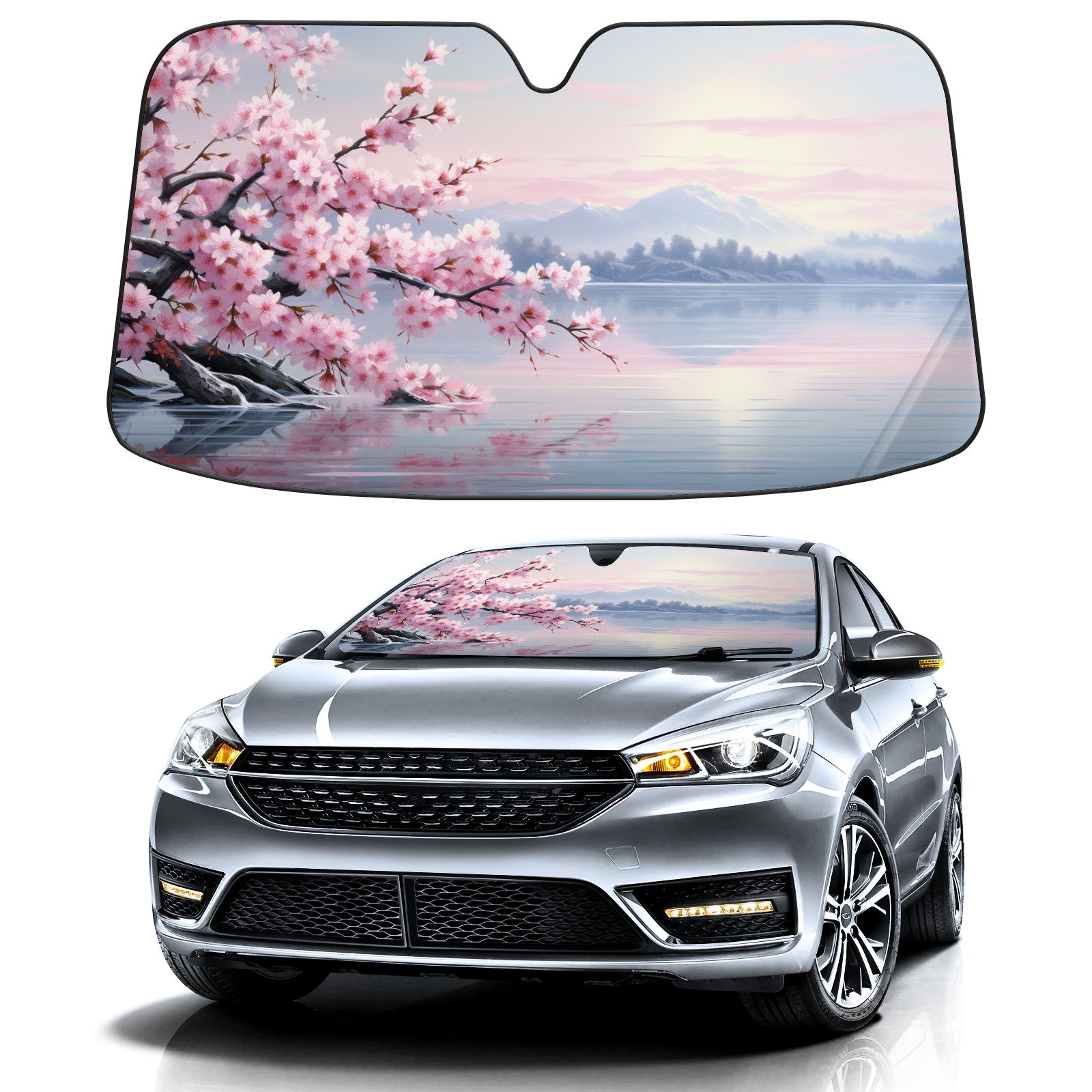 Car Windshield Sun Shade For Front Window Cherry Blossom Foldable Vehicle Windshield Car Sun Visor Covers Automotive Window Protector Car Camping Privacy Sun Blocker