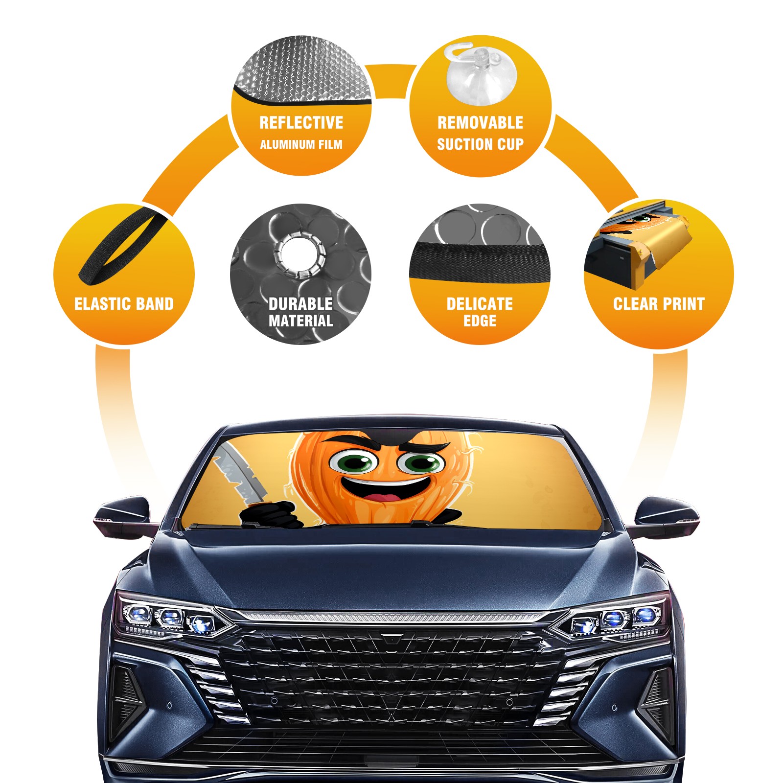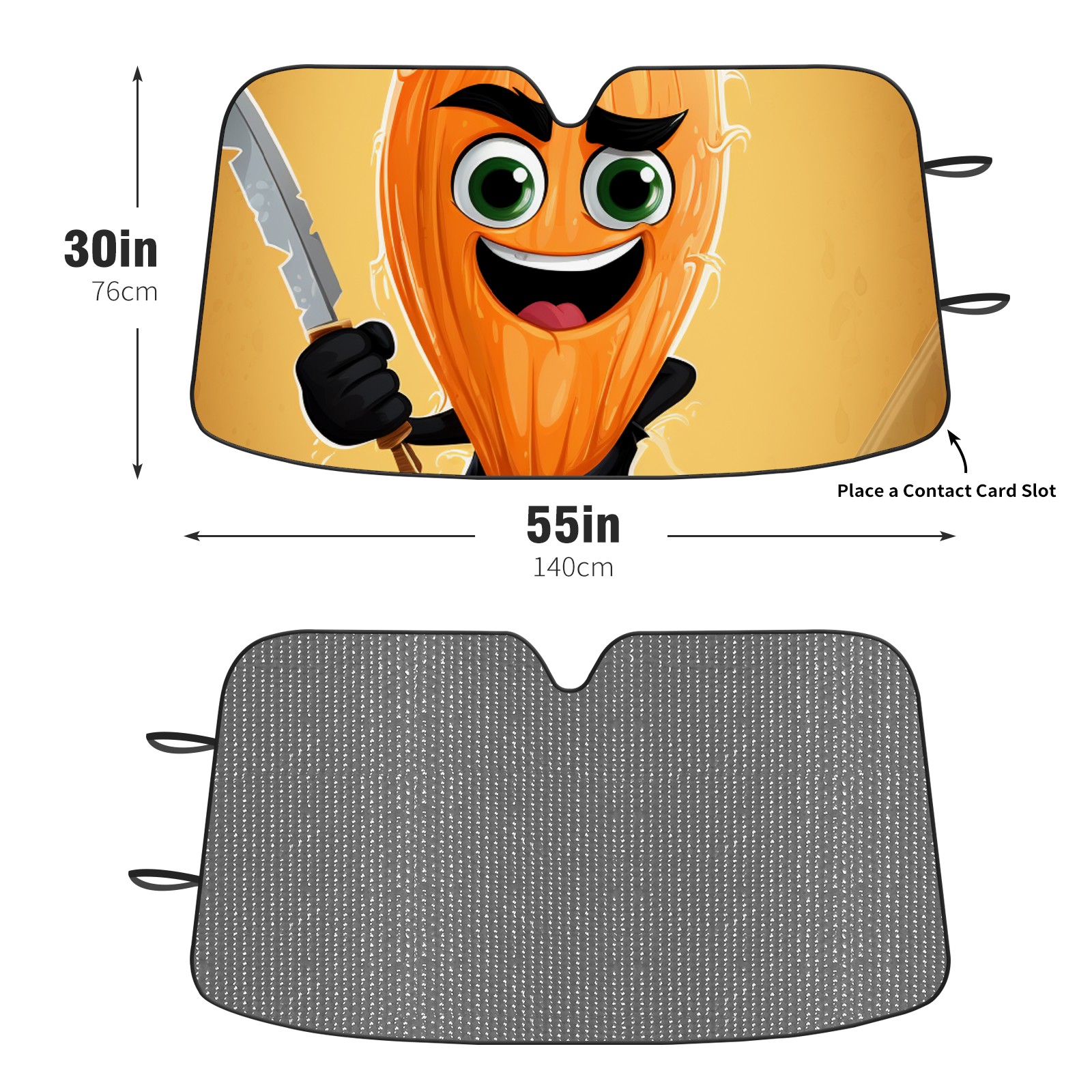 Diameter /Size 63"L x 33.5"W Made from excellent materials which makes it sturdy and protects the car from the sun. Easy to use and pack. Makes the interior of the car cooler.You can easily stash the sunshade in the storage bag or store long term.It open and closes easy. Also the leather storage bag is durable and easy to put the umbrella back into.This windshield sunshade provides complete coverage and keeps your car interior cool under direct sun. It is easy to open and position under the windshield and around the rear-view mirror. Makes Your Car Easy To Identify, Perfect For Finding Your Car In Crowded Parking Lots And Garages.Great Choice: It Is A Great Gift For Dad, Boyfriend, Brother, Brother And Uncle, Friends, Classmates, Family And So On. Notice: Due To Difference Computer Monitors, The Color Maybe Slightly Different From Picture. As Different Measurement Methods, Measurement Data Will Float Within 2%.I Hope You Understand. If You Have Any Question About The Item Please Do Not Hesitate To Contact Us Immediately And We Will Give You A Satisfactory Reply Within 24 Hours.