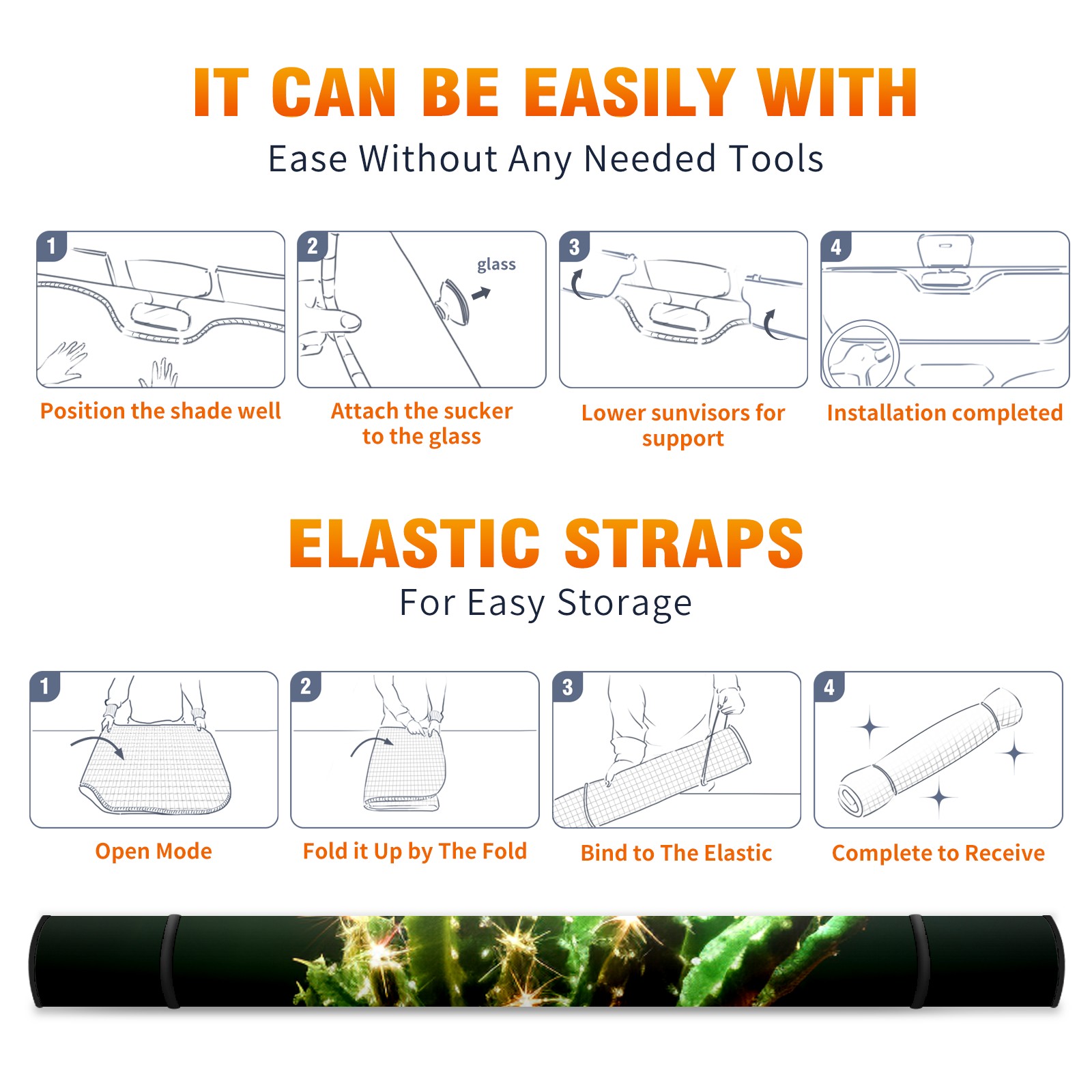 • Diameter /Size 63"L x 33.5"W Made from excellent materials which makes it sturdy and protects the car from the sun. Easy to use and pack. Makes the interior of the car cooler.You can easily stash the sunshade in the storage bag or store long term.It open and closes easy. Also the leather storage bag is durable and easy to put the umbrella back into.This windshield sunshade provides complete coverage and keeps your car interior cool under direct sun. It is easy to open and position under the windshield and around the rear-view mirror. Makes Your Car Easy To Identify, Perfect For Finding Your Car In Crowded Parking Lots And Garages.Great Choice: It Is A Great Gift For Dad, Boyfriend, Brother, Brother And Uncle, Friends, Classmates, Family And So On. Notice: Due To Difference Computer Monitors, The Color Maybe Slightly Different From Picture. As Different Measurement Methods, Measurement Data Will Float Within 2%.I Hope You Understand. If You Have Any Question About The Item Please Do Not Hesitate To Contact Us Immediately And We Will Give You A Satisfactory Reply Within 24 Hours.