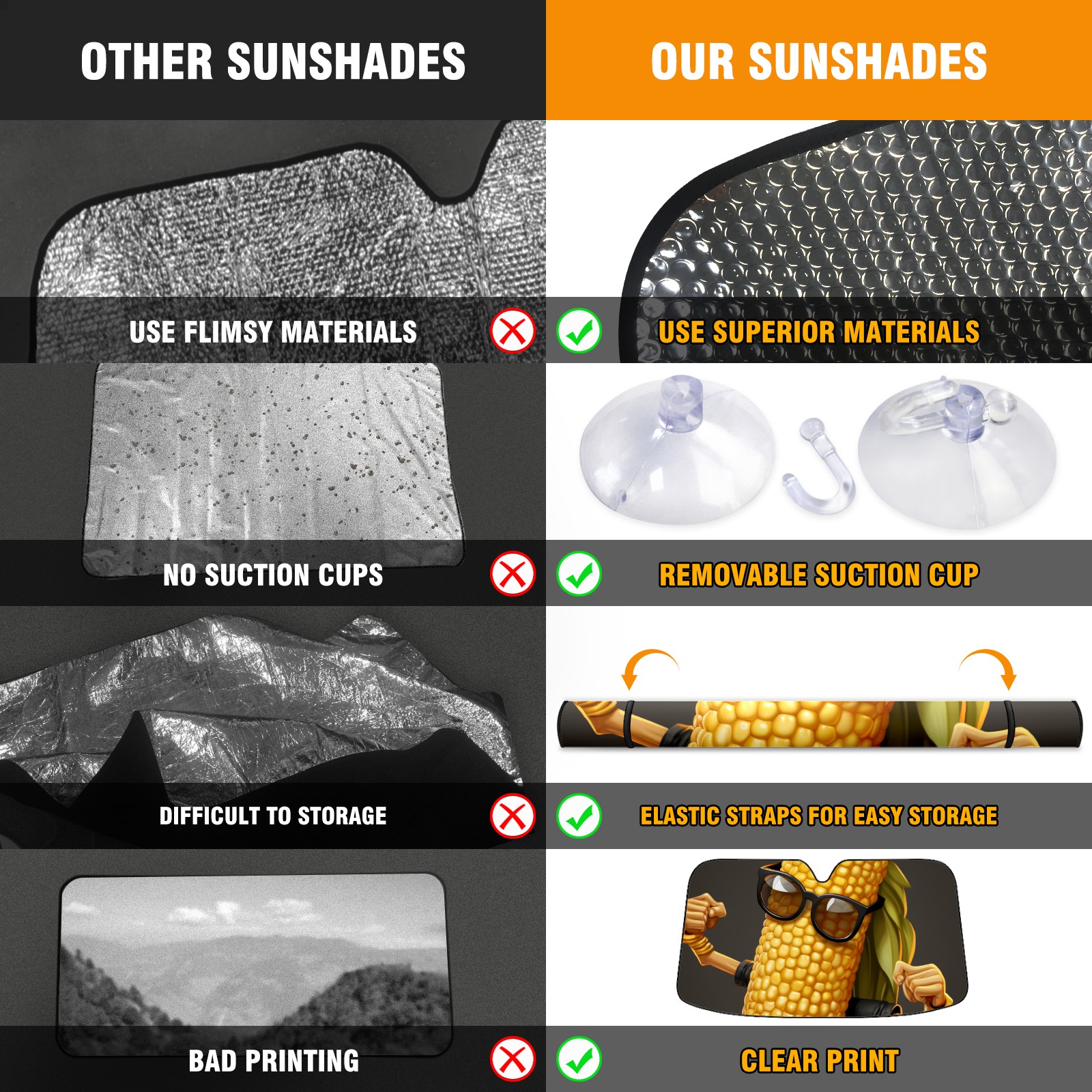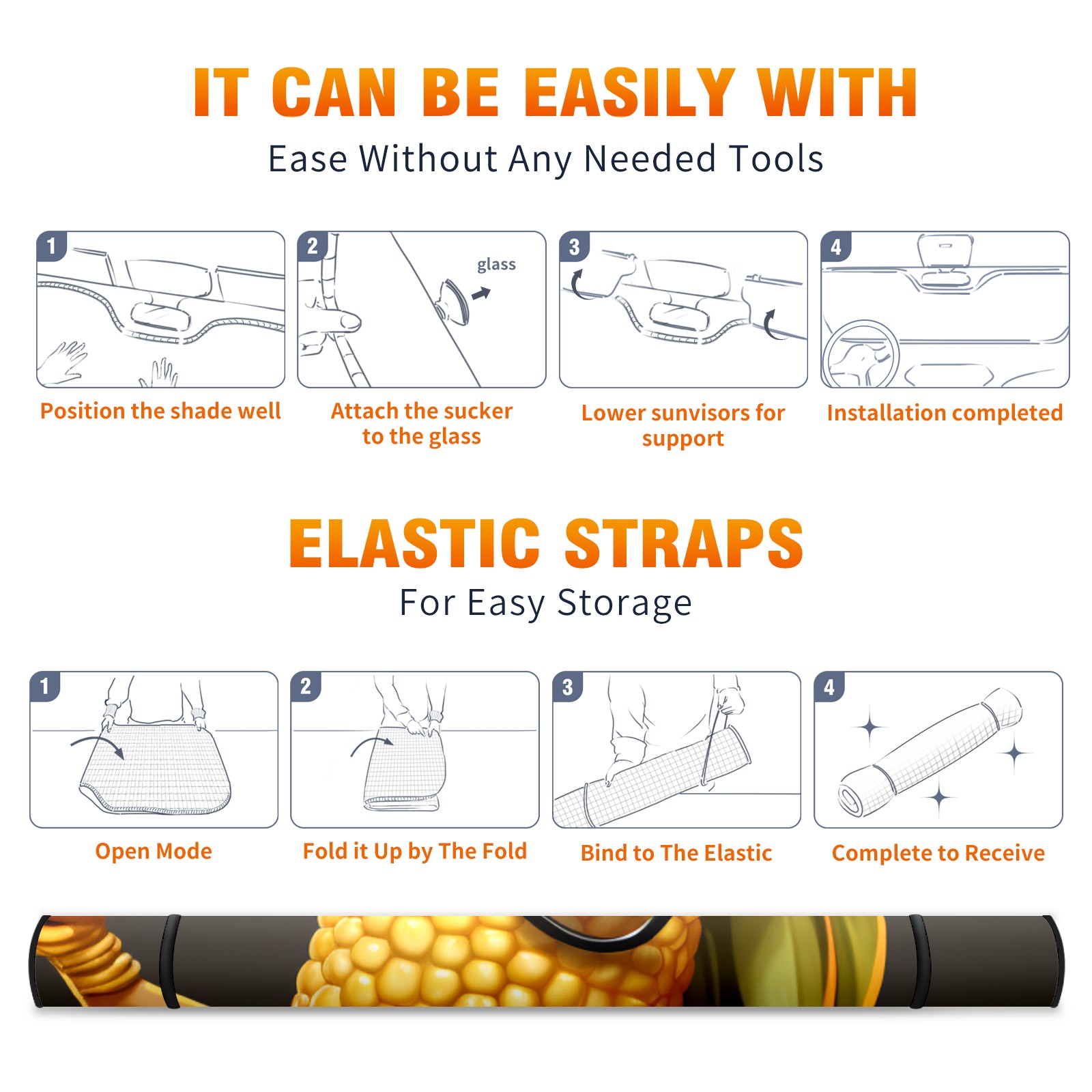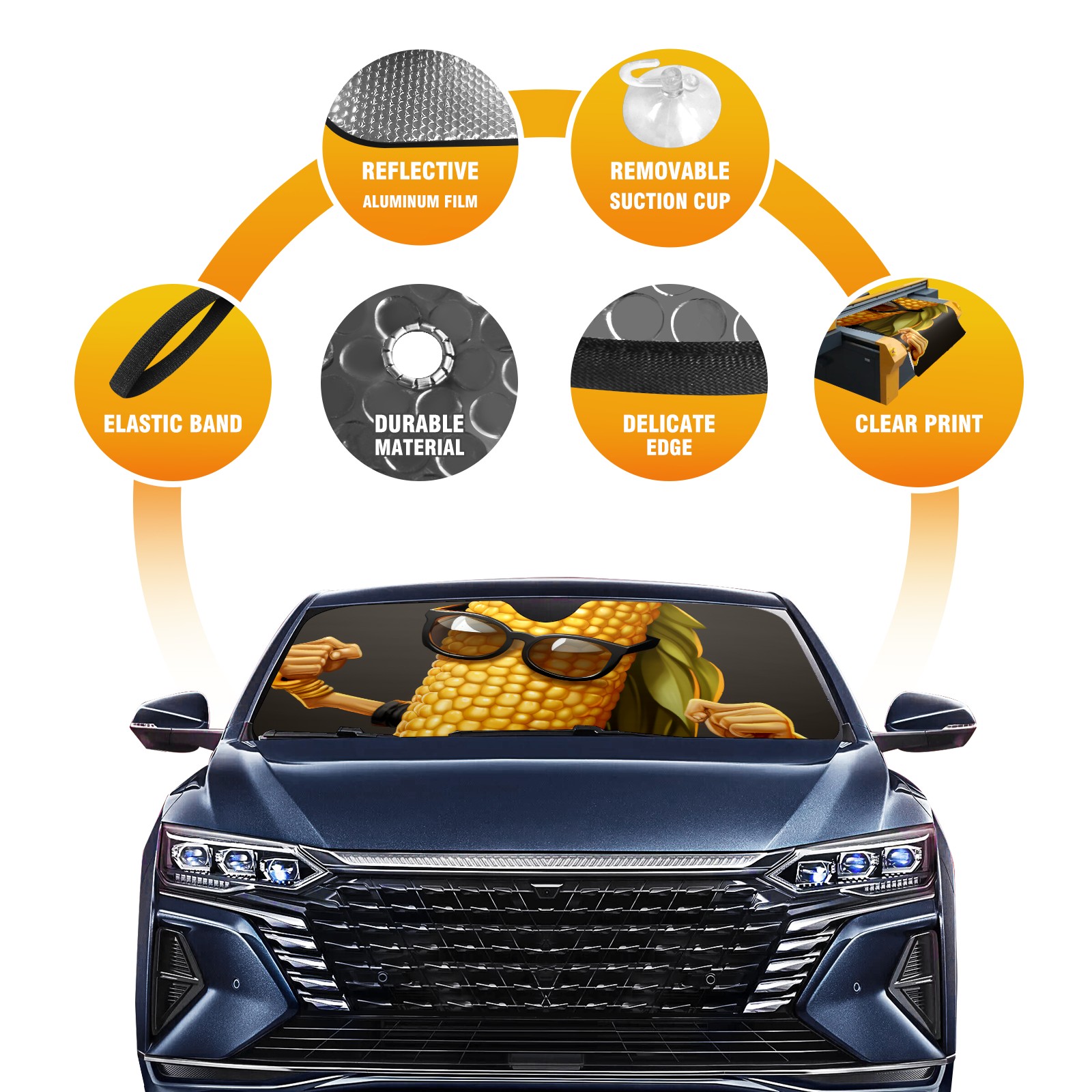 Car Windshield Sun Shade For Front Window Corn Foldable Vehicle Windshield Car Sun Visor Covers Automotive Window Protector Car Camping Privacy Sun Blocker