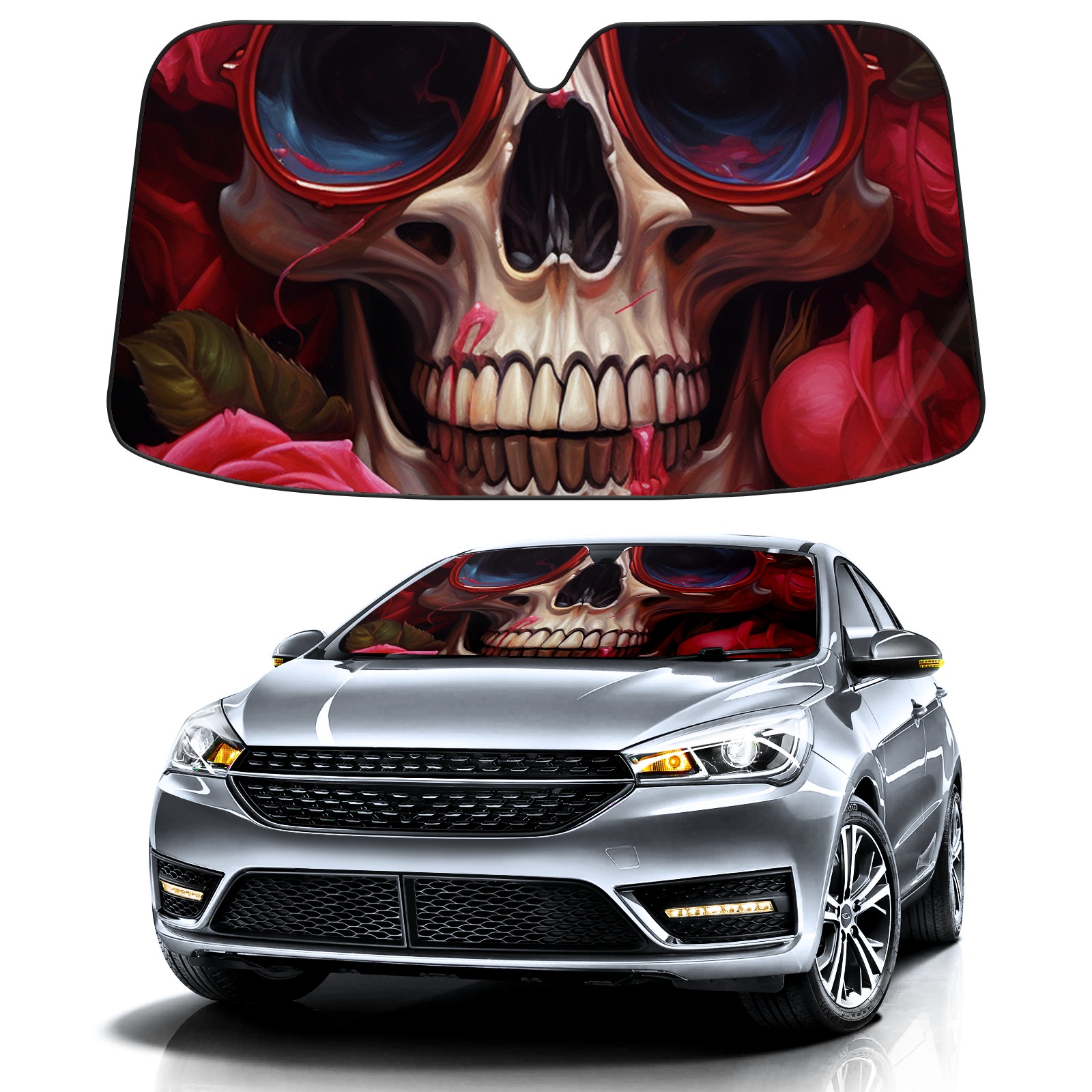 Car Windshield Sun Shade For Front Window Skull Foldable Vehicle Windshield Car Sun Visor Covers Automotive Window Protector Car Camping Privacy Sun Blocker