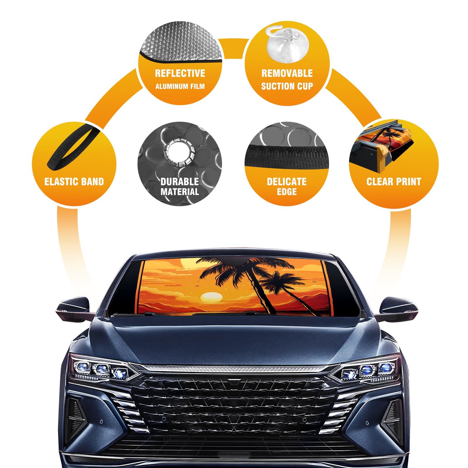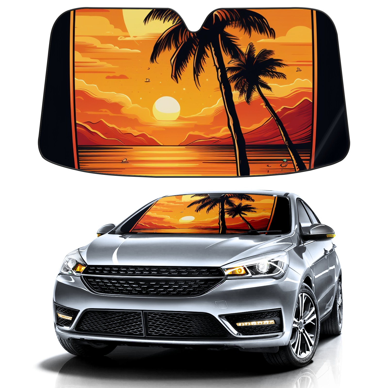 • Diameter /Size 63"L x 33.5"W Made from excellent materials which makes it sturdy and protects the car from the sun. Easy to use and pack. Makes the interior of the car cooler.You can easily stash the sunshade in the storage bag or store long term.It open and closes easy. Also the leather storage bag is durable and easy to put the umbrella back into.This windshield sunshade provides complete coverage and keeps your car interior cool under direct sun. It is easy to open and position under the windshield and around the rear-view mirror. Makes Your Car Easy To Identify, Perfect For Finding Your Car In Crowded Parking Lots And Garages.Great Choice: It Is A Great Gift For Dad, Boyfriend, Brother, Brother And Uncle, Friends, Classmates, Family And So On. Notice: Due To Difference Computer Monitors, The Color Maybe Slightly Different From Picture. As Different Measurement Methods, Measurement Data Will Float Within 2%.I Hope You Understand. If You Have Any Question About The Item Please Do Not Hesitate To Contact Us Immediately And We Will Give You A Satisfactory Reply Within 24 Hours.