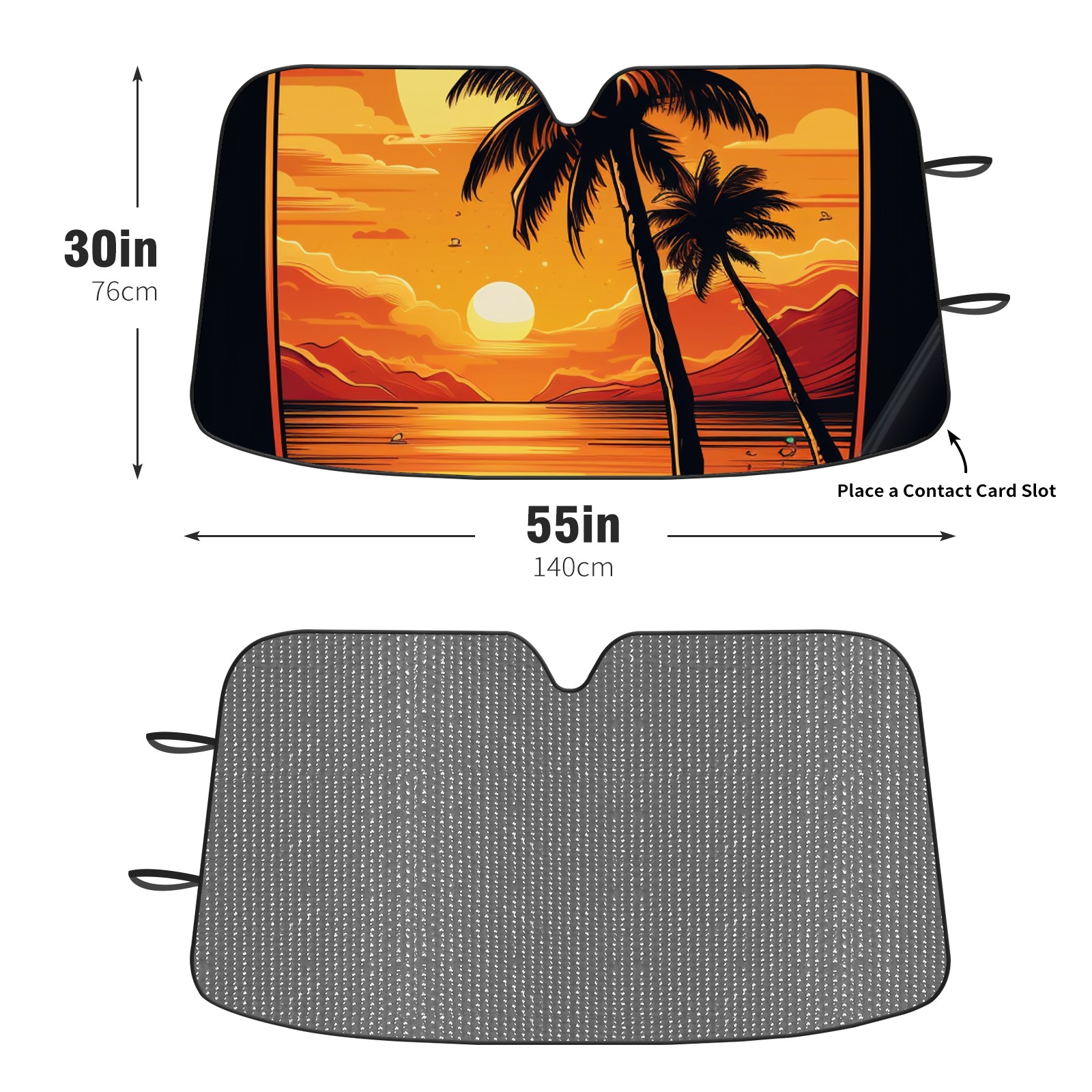Diameter /Size 63"L x 33.5"W Made from excellent materials which makes it sturdy and protects the car from the sun. Easy to use and pack. Makes the interior of the car cooler.You can easily stash the sunshade in the storage bag or store long term.It open and closes easy. Also the leather storage bag is durable and easy to put the umbrella back into.This windshield sunshade provides complete coverage and keeps your car interior cool under direct sun. It is easy to open and position under the windshield and around the rear-view mirror. Makes Your Car Easy To Identify, Perfect For Finding Your Car In Crowded Parking Lots And Garages.Great Choice: It Is A Great Gift For Dad, Boyfriend, Brother, Brother And Uncle, Friends, Classmates, Family And So On. Notice: Due To Difference Computer Monitors, The Color Maybe Slightly Different From Picture. As Different Measurement Methods, Measurement Data Will Float Within 2%.I Hope You Understand. If You Have Any Question About The Item Please Do Not Hesitate To Contact Us Immediately And We Will Give You A Satisfactory Reply Within 24 Hours.