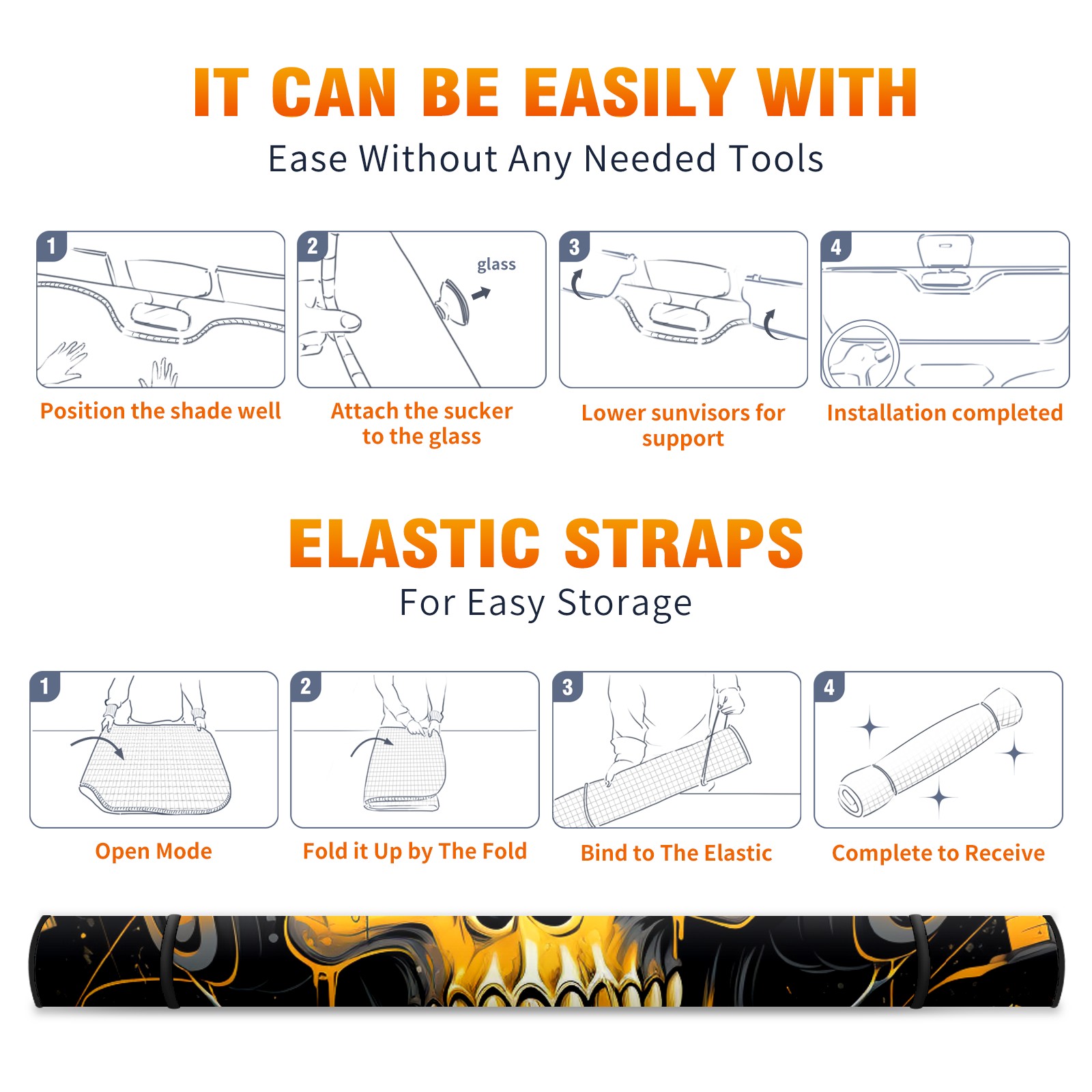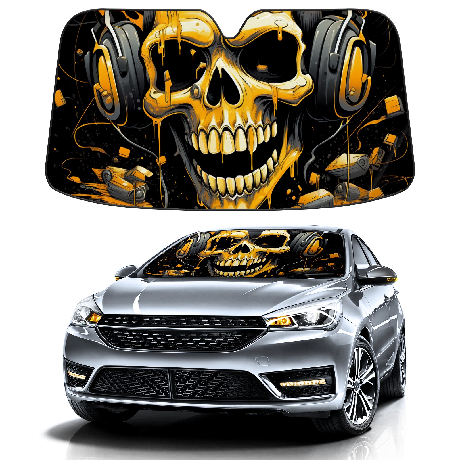 Car Windshield Sun Shade For Front Window Skull Head Foldable Vehicle Windshield Car Sun Visor Covers Automotive Window Protector Car Camping Privacy Sun Blocker