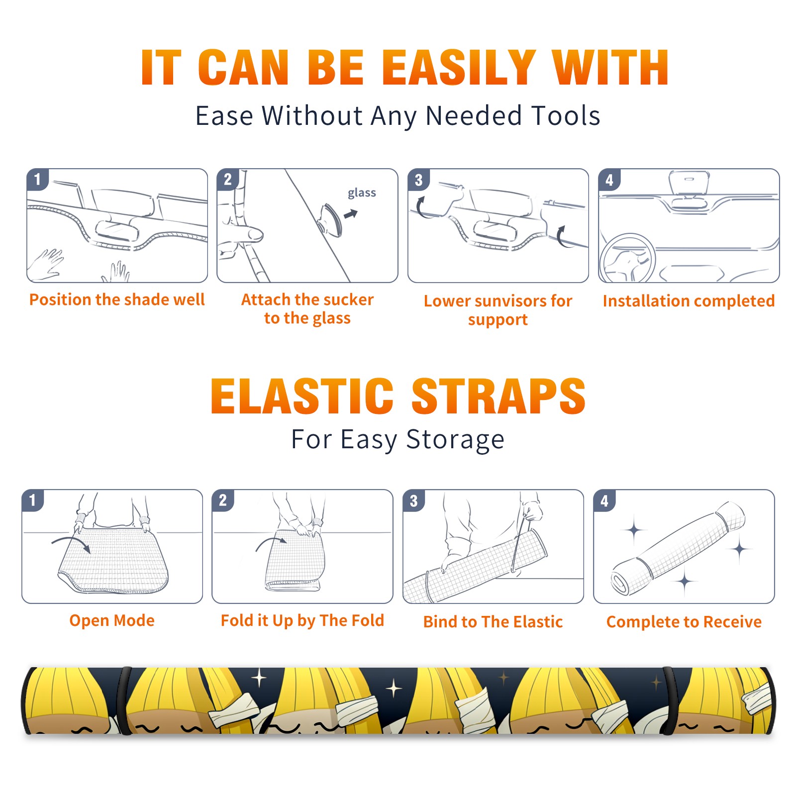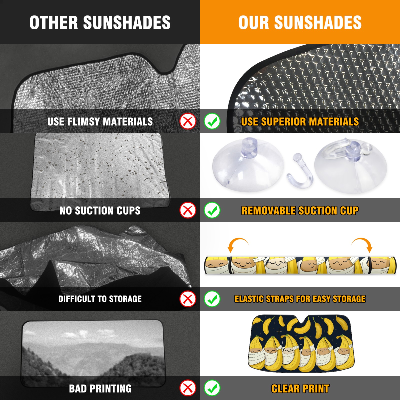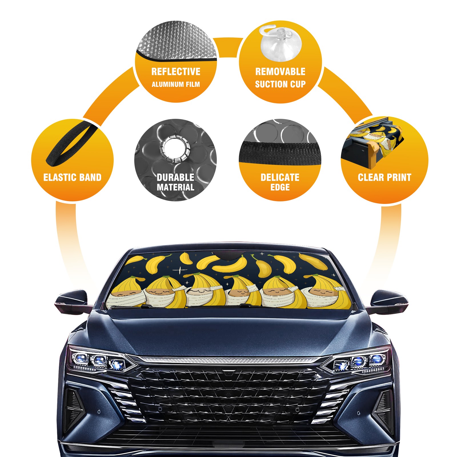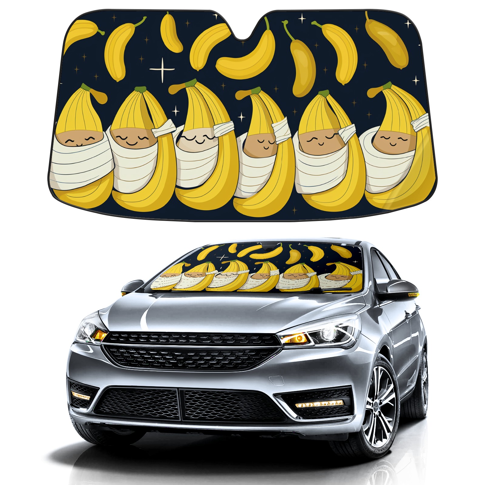 Car Windshield Sun Shade For Front Window Banana Foldable Vehicle Windshield Car Sun Visor Covers Automotive Window Protector Car Camping Privacy Sun Blocker