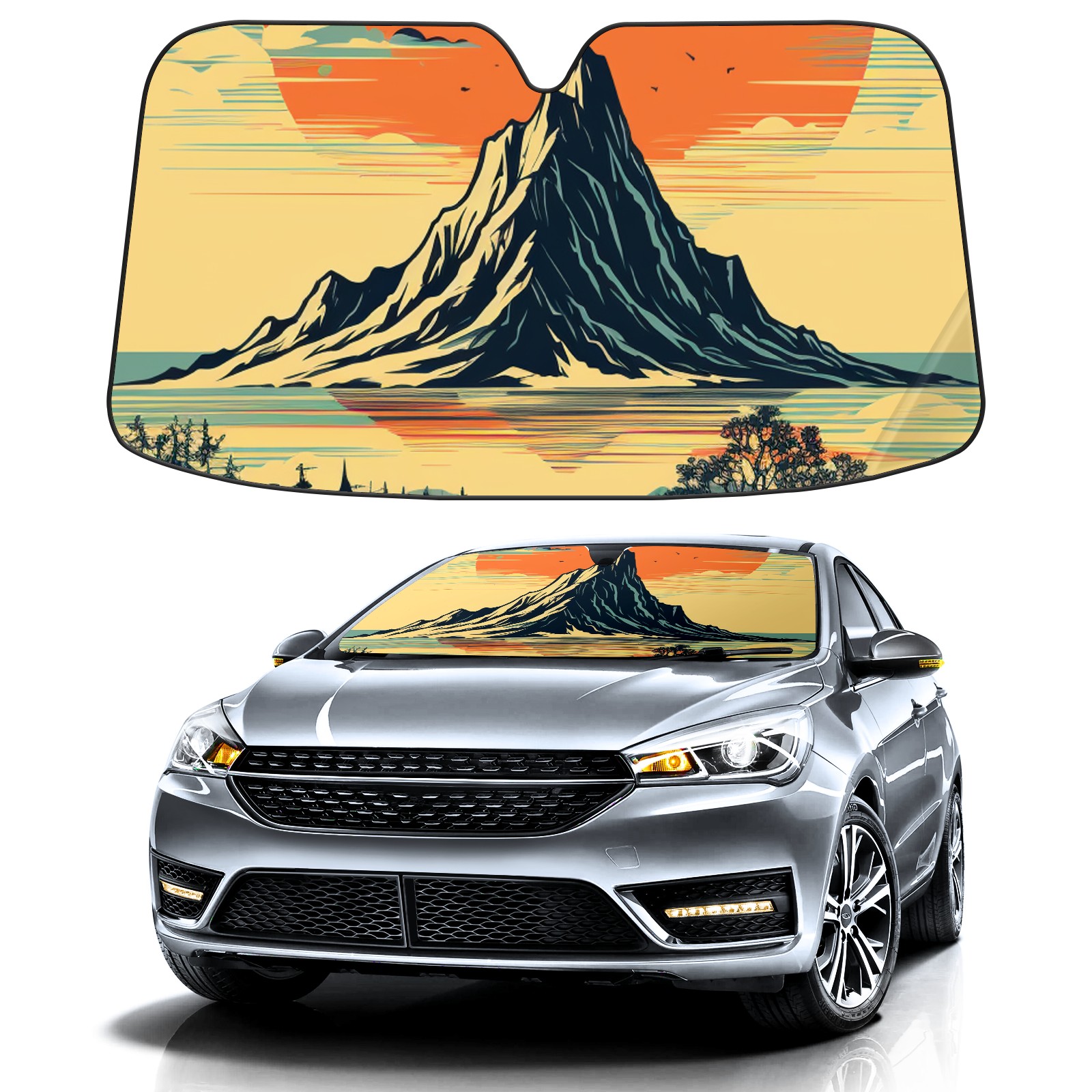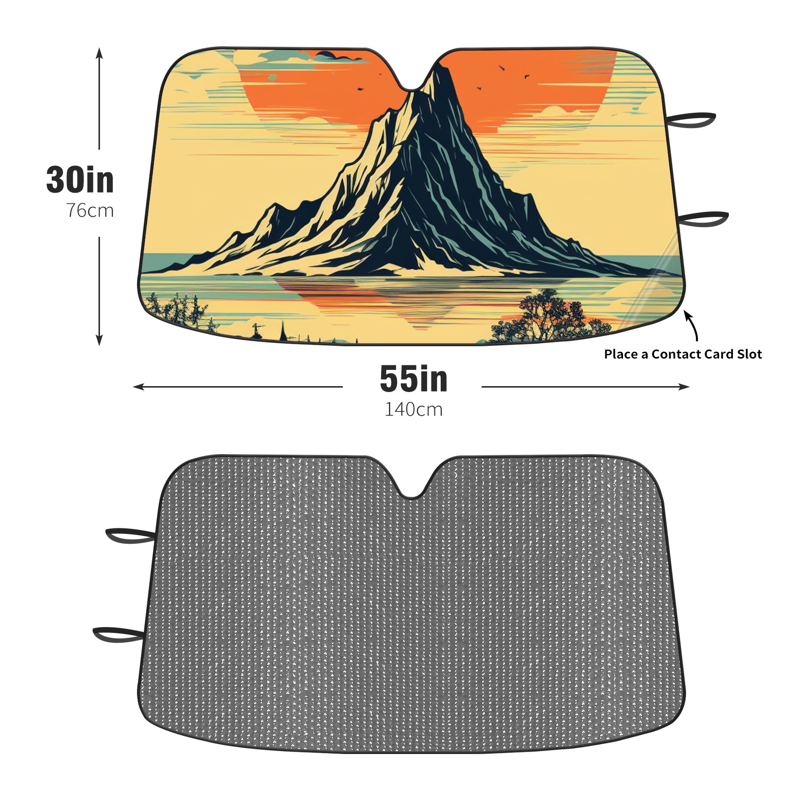 Diameter /Size 63"L x 33.5"W Made from excellent materials which makes it sturdy and protects the car from the sun. Easy to use and pack. Makes the interior of the car cooler.You can easily stash the sunshade in the storage bag or store long term.It open and closes easy. Also the leather storage bag is durable and easy to put the umbrella back into.This windshield sunshade provides complete coverage and keeps your car interior cool under direct sun. It is easy to open and position under the windshield and around the rear-view mirror. Makes Your Car Easy To Identify, Perfect For Finding Your Car In Crowded Parking Lots And Garages.Great Choice: It Is A Great Gift For Dad, Boyfriend, Brother, Brother And Uncle, Friends, Classmates, Family And So On. Notice: Due To Difference Computer Monitors, The Color Maybe Slightly Different From Picture. As Different Measurement Methods, Measurement Data Will Float Within 2%.I Hope You Understand. If You Have Any Question About The Item Please Do Not Hesitate To Contact Us Immediately And We Will Give You A Satisfactory Reply Within 24 Hours.