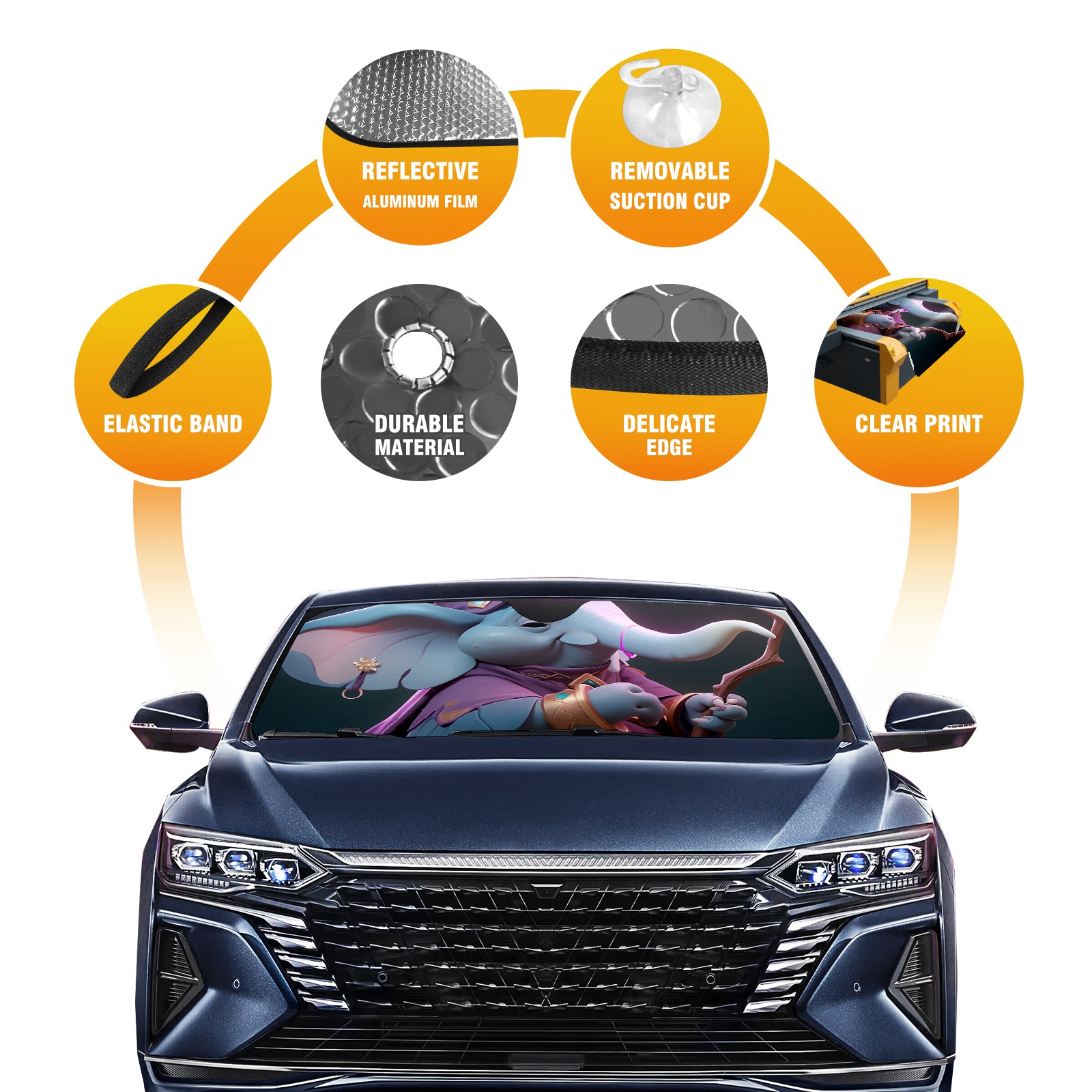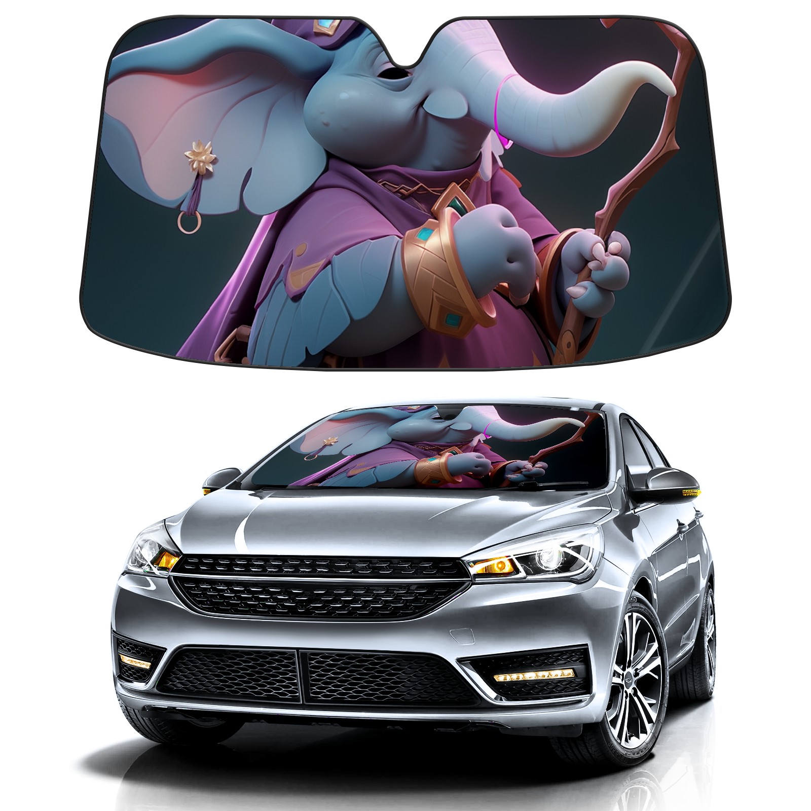 Car Windshield Sun Shade For Front Window Elephant Foldable Vehicle Windshield Car Sun Visor Covers Automotive Window Protector Car Camping Privacy Sun Blocker