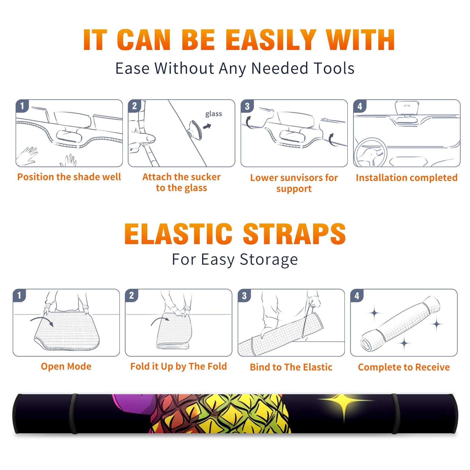Car Windshield Sun Shade For Front Window Pineapple Foldable Vehicle Windshield Car Sun Visor Covers Automotive Window Protector Car Camping Privacy Sun Blocker