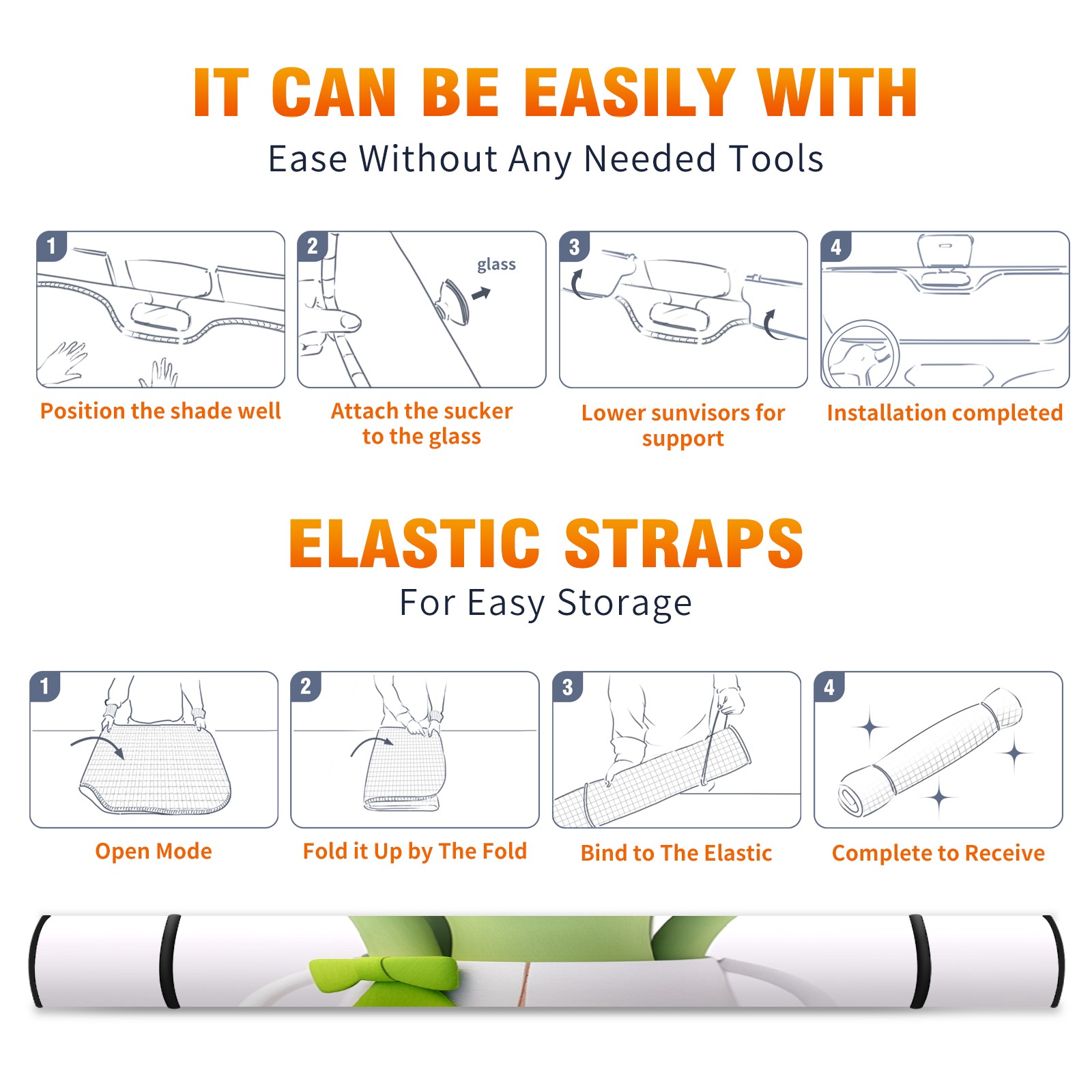 • Diameter /Size 63"L x 33.5"W Made from excellent materials which makes it sturdy and protects the car from the sun. Easy to use and pack. Makes the interior of the car cooler.You can easily stash the sunshade in the storage bag or store long term.It open and closes easy. Also the leather storage bag is durable and easy to put the umbrella back into.This windshield sunshade provides complete coverage and keeps your car interior cool under direct sun. It is easy to open and position under the windshield and around the rear-view mirror. Makes Your Car Easy To Identify, Perfect For Finding Your Car In Crowded Parking Lots And Garages.Great Choice: It Is A Great Gift For Dad, Boyfriend, Brother, Brother And Uncle, Friends, Classmates, Family And So On. Notice: Due To Difference Computer Monitors, The Color Maybe Slightly Different From Picture. As Different Measurement Methods, Measurement Data Will Float Within 2%.I Hope You Understand. If You Have Any Question About The Item Please Do Not Hesitate To Contact Us Immediately And We Will Give You A Satisfactory Reply Within 24 Hours.