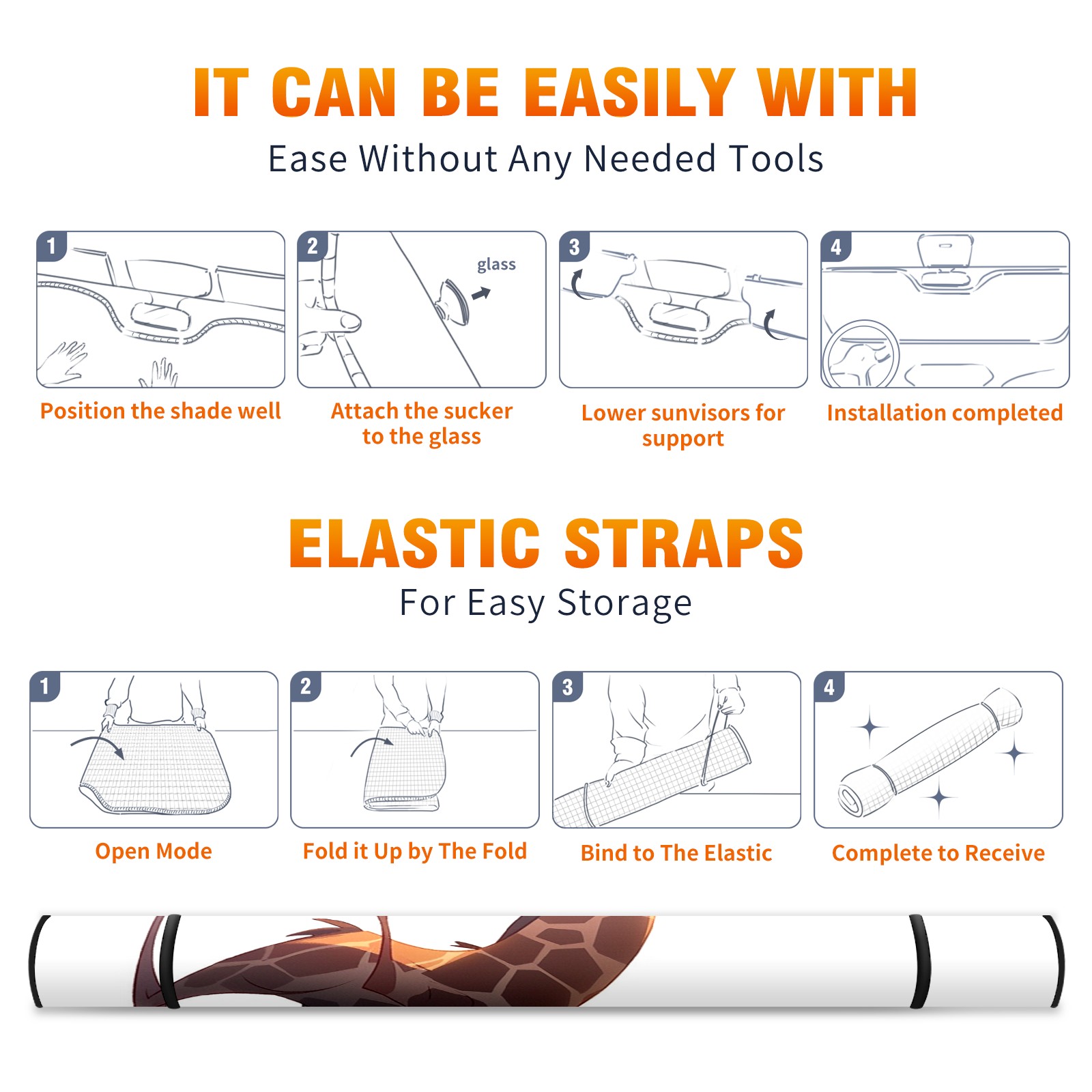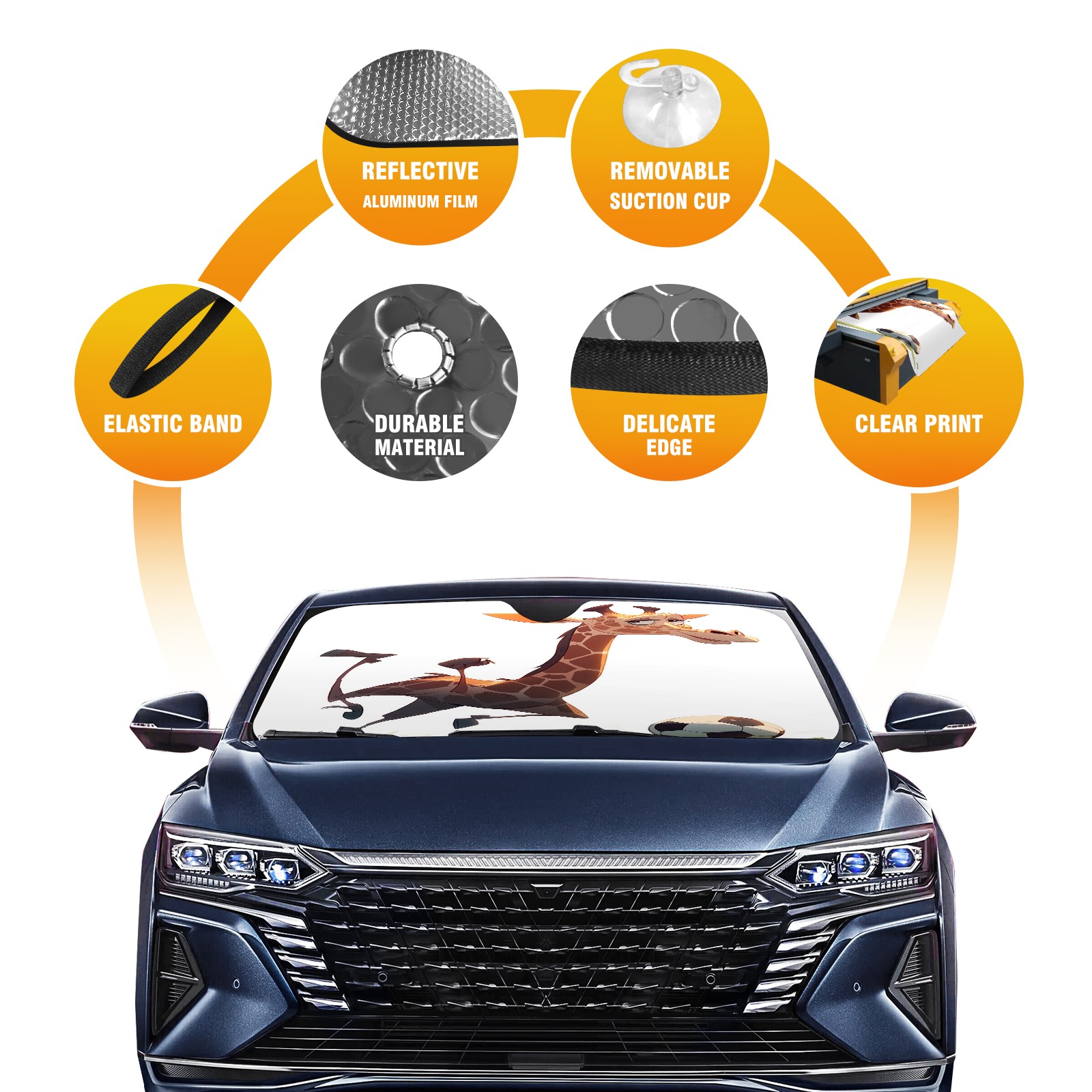 Car Windshield Sun Shade For Front Window Giraffe Foldable Vehicle Windshield Car Sun Visor Covers Automotive Window Protector Car Camping Privacy Sun Blocker