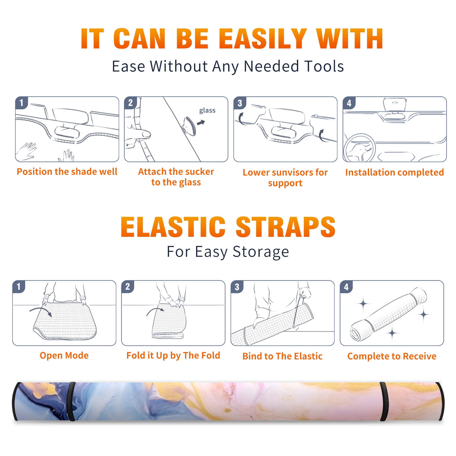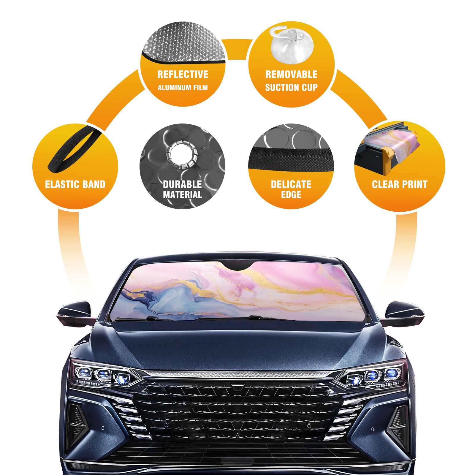 Car Windshield Sun Shade For Front Window Pink Marble Foldable Vehicle Windshield Car Sun Visor Covers Automotive Window Protector Car Camping Privacy Sun Blocker
