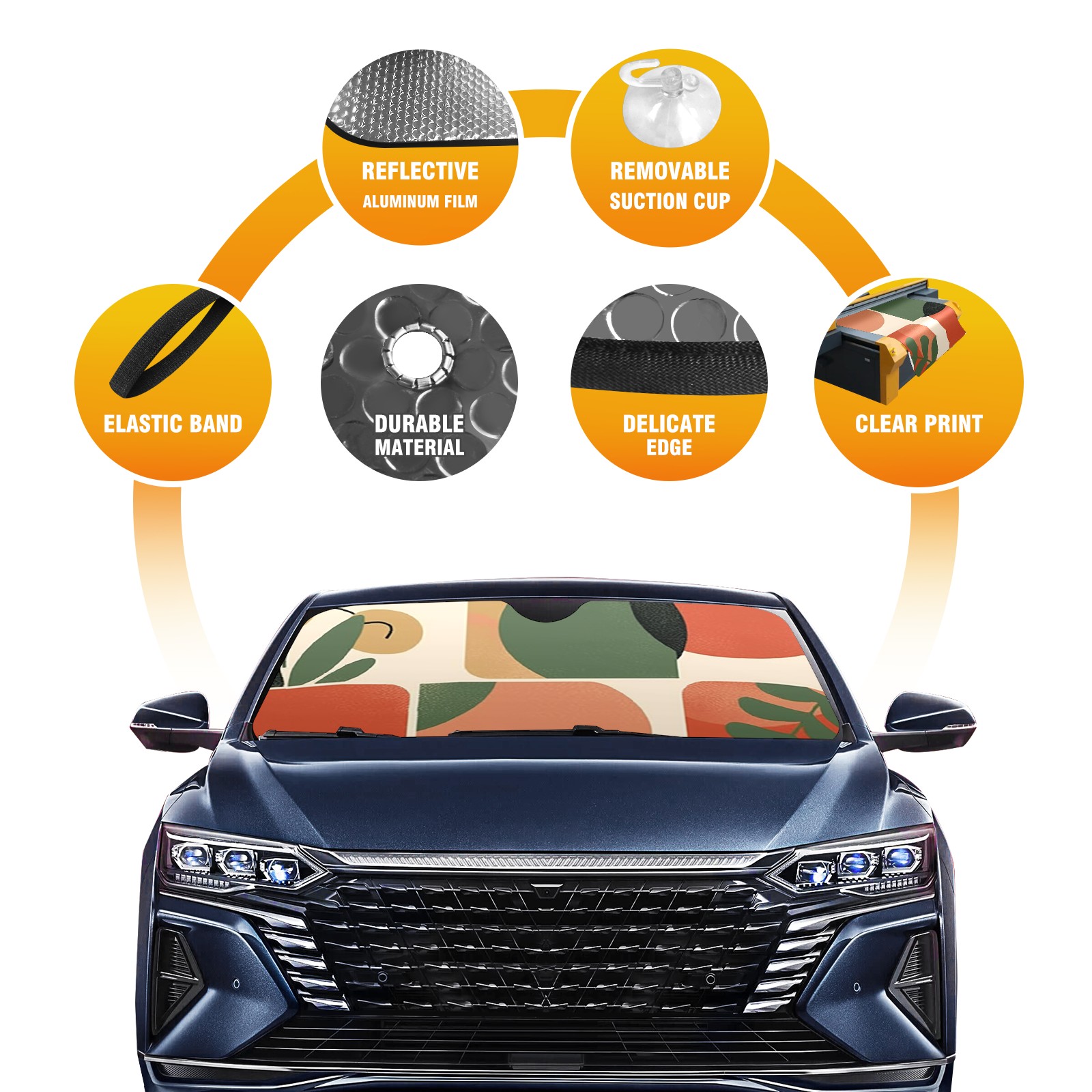 • Diameter /Size 63"L x 33.5"W Made from excellent materials which makes it sturdy and protects the car from the sun. Easy to use and pack. Makes the interior of the car cooler.You can easily stash the sunshade in the storage bag or store long term.It open and closes easy. Also the leather storage bag is durable and easy to put the umbrella back into.This windshield sunshade provides complete coverage and keeps your car interior cool under direct sun. It is easy to open and position under the windshield and around the rear-view mirror. Makes Your Car Easy To Identify, Perfect For Finding Your Car In Crowded Parking Lots And Garages.Great Choice: It Is A Great Gift For Dad, Boyfriend, Brother, Brother And Uncle, Friends, Classmates, Family And So On. Notice: Due To Difference Computer Monitors, The Color Maybe Slightly Different From Picture. As Different Measurement Methods, Measurement Data Will Float Within 2%.I Hope You Understand. If You Have Any Question About The Item Please Do Not Hesitate To Contact Us Immediately And We Will Give You A Satisfactory Reply Within 24 Hours.