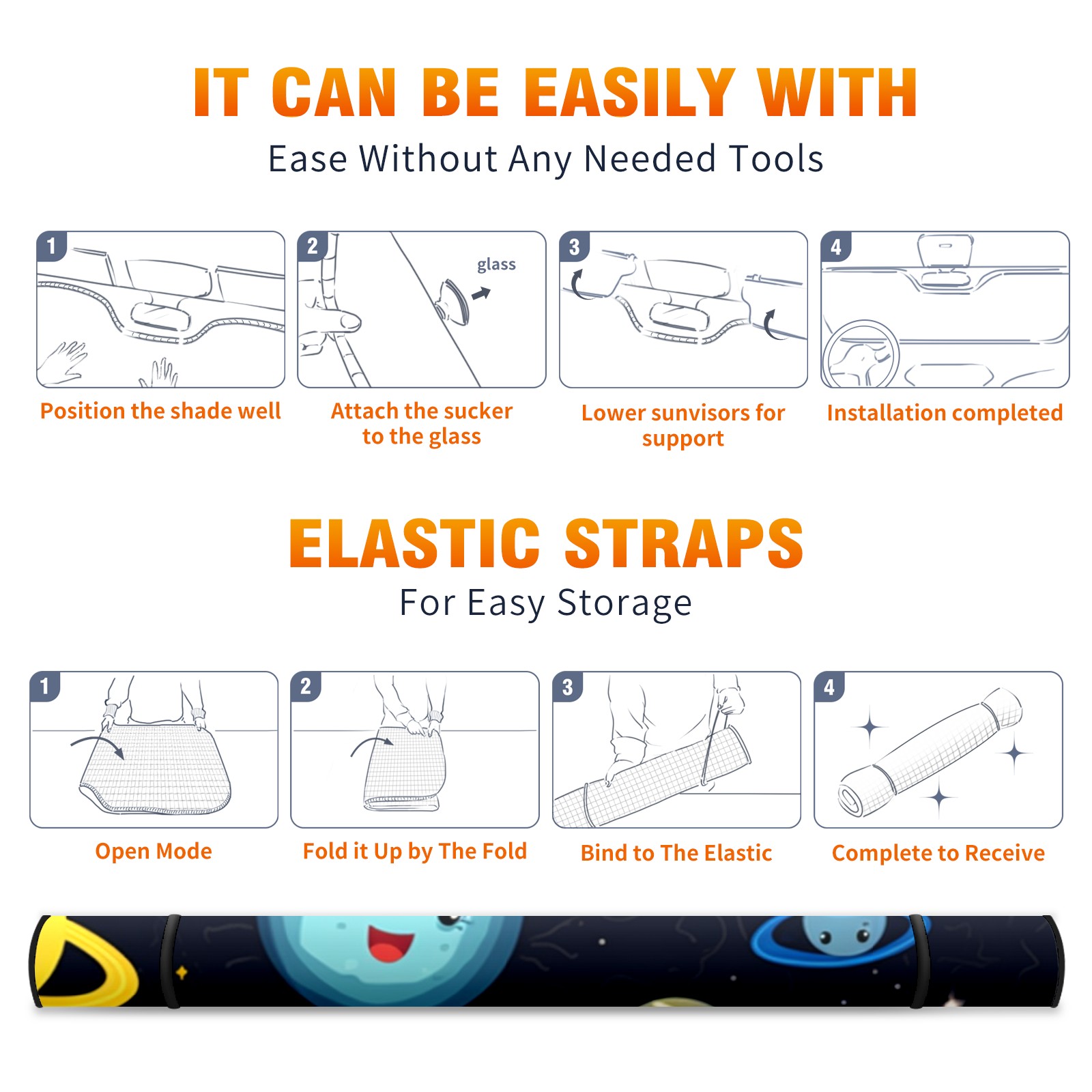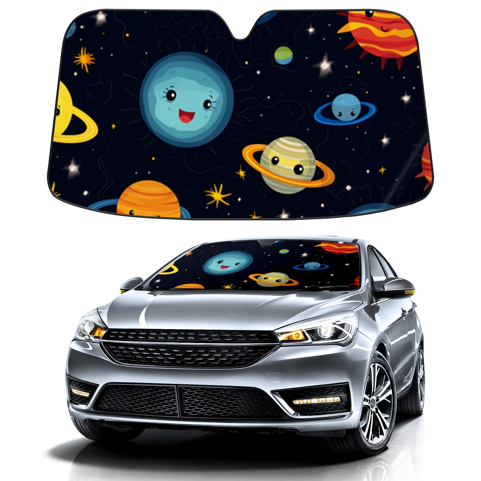 Car Windshield Sun Shade For Front Window Funny Planets Foldable Vehicle Windshield Car Sun Visor Covers Automotive Window Protector Car Camping Privacy Sun Blocker