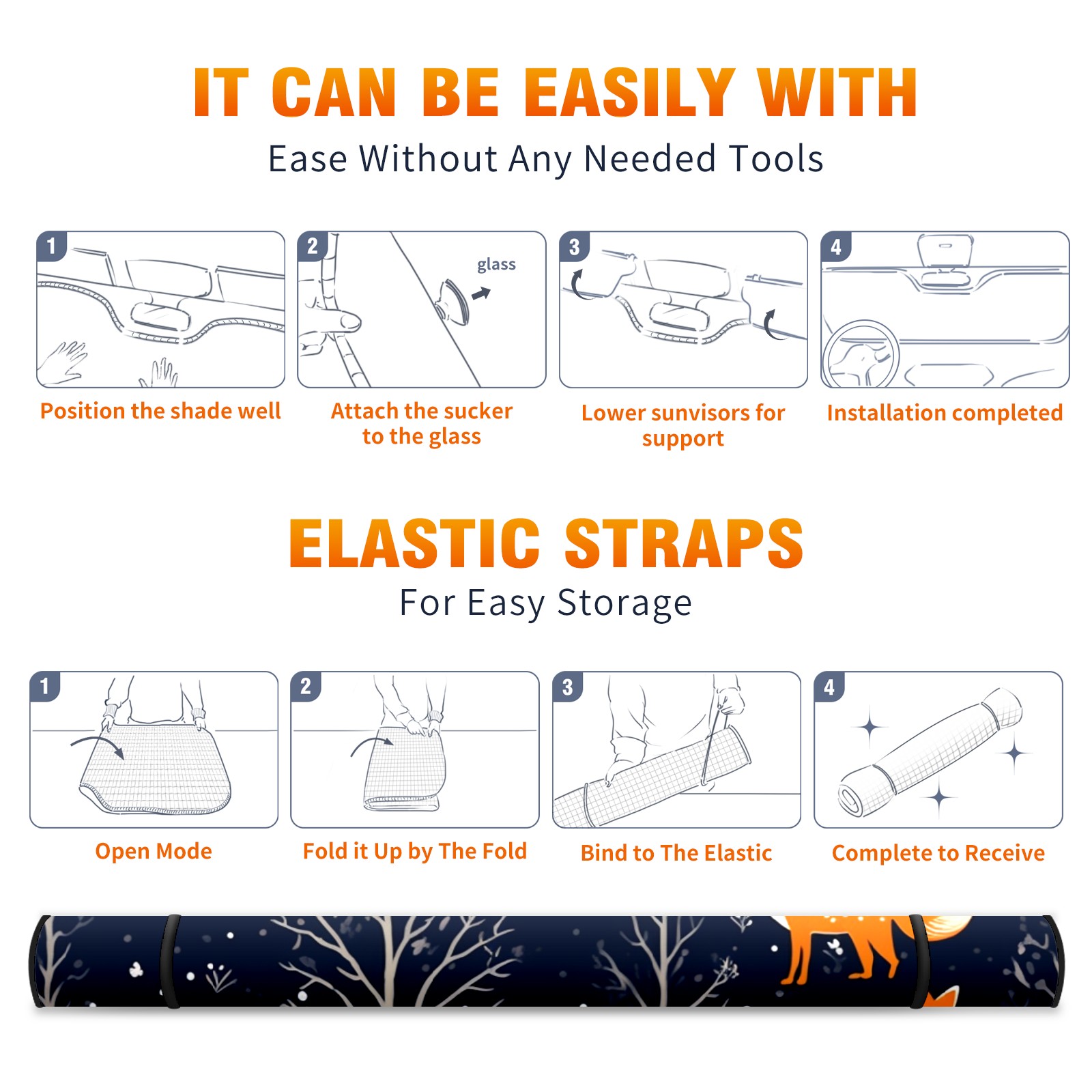 Car Windshield Sun Shade For Front Window Foxes Foldable Vehicle Windshield Car Sun Visor Covers Automotive Window Protector Car Camping Privacy Sun Blocker