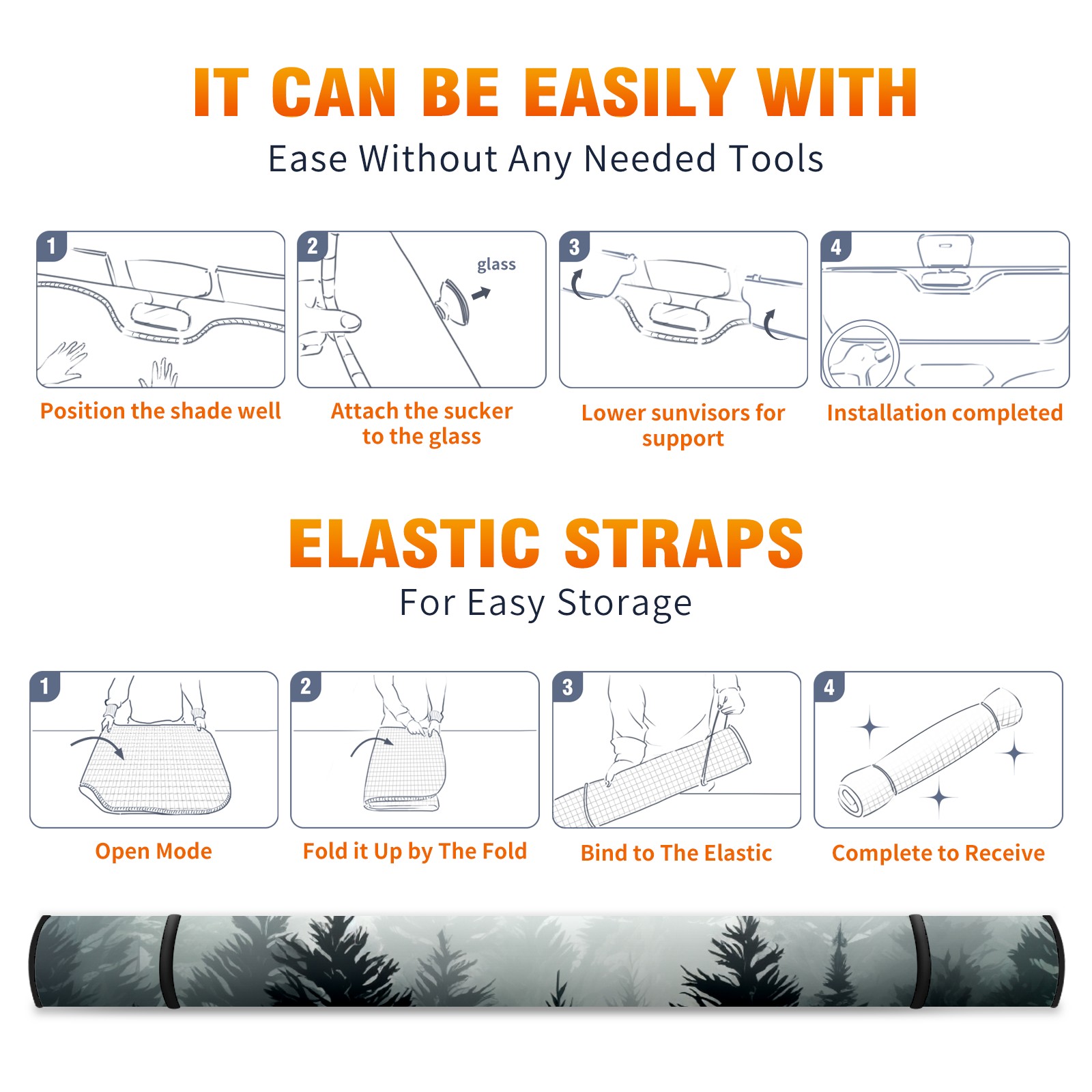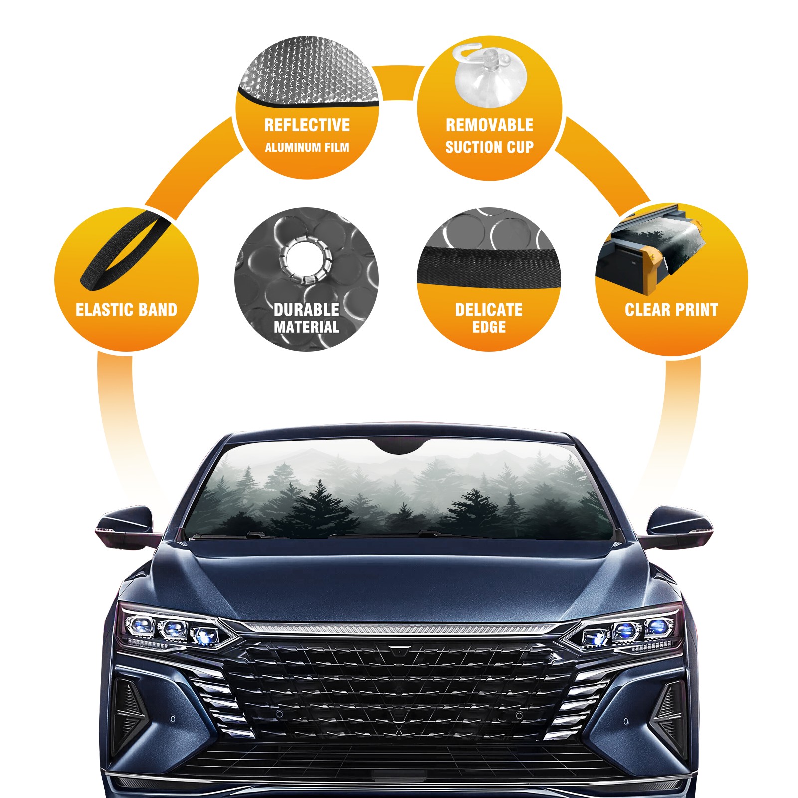 Car Windshield Sun Shade For Front Window Dark Trees Foldable Vehicle Windshield Car Sun Visor Covers Automotive Window Protector Car Camping Privacy Sun Blocker
