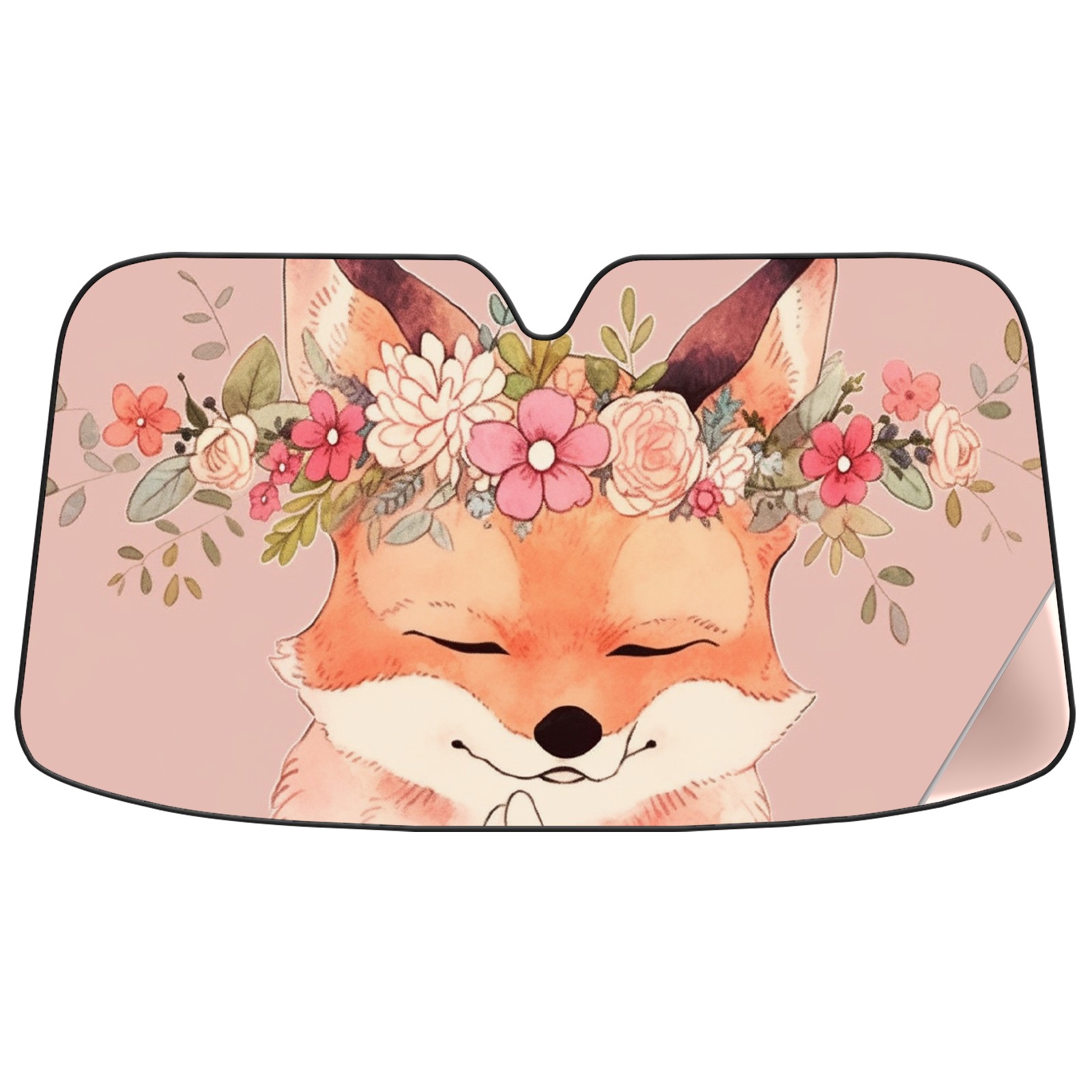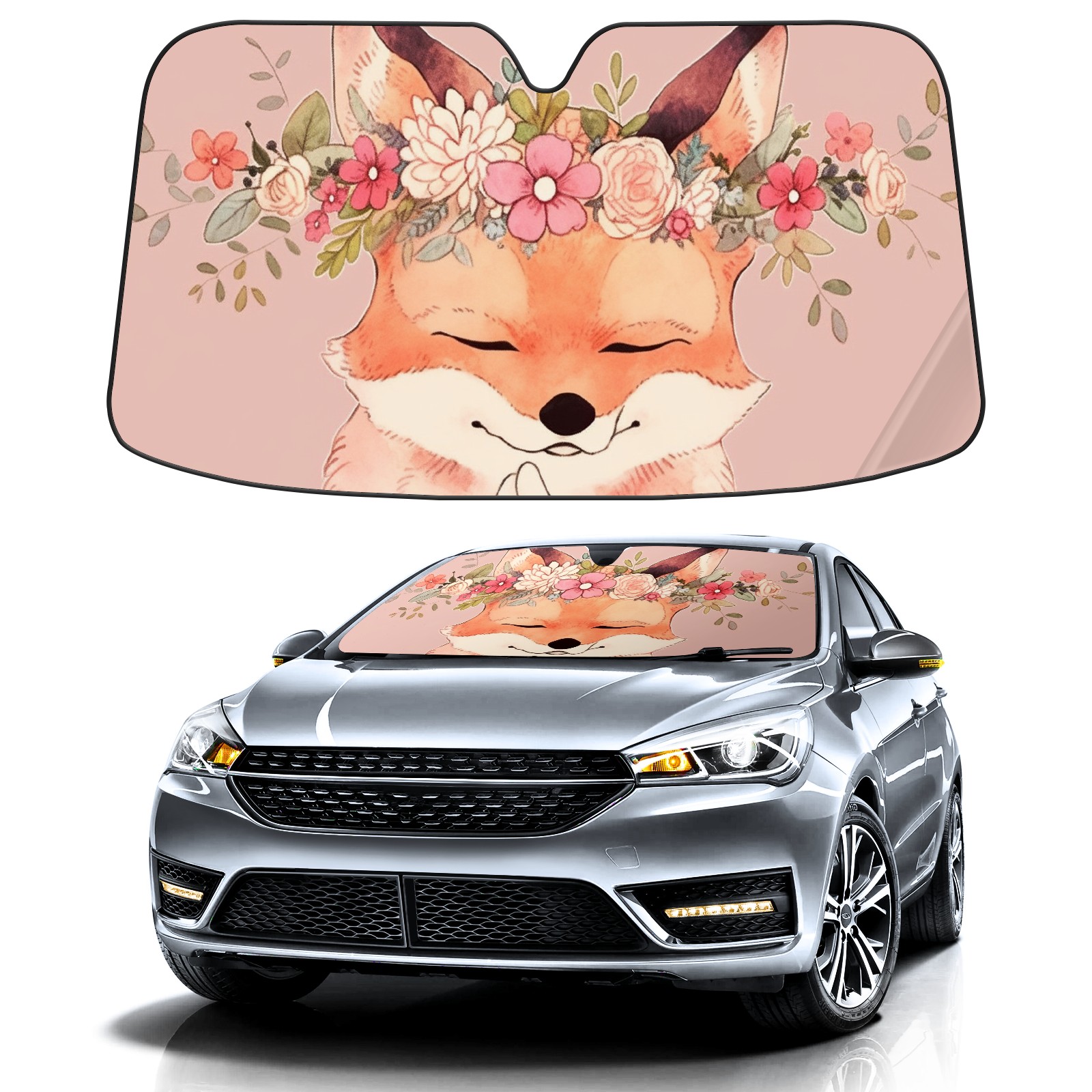 Car Windshield Sun Shade For Front Window Cute Fox With Flowers Foldable Vehicle Windshield Car Sun Visor Covers Automotive Window Protector Car Camping Privacy Sun Blocker
