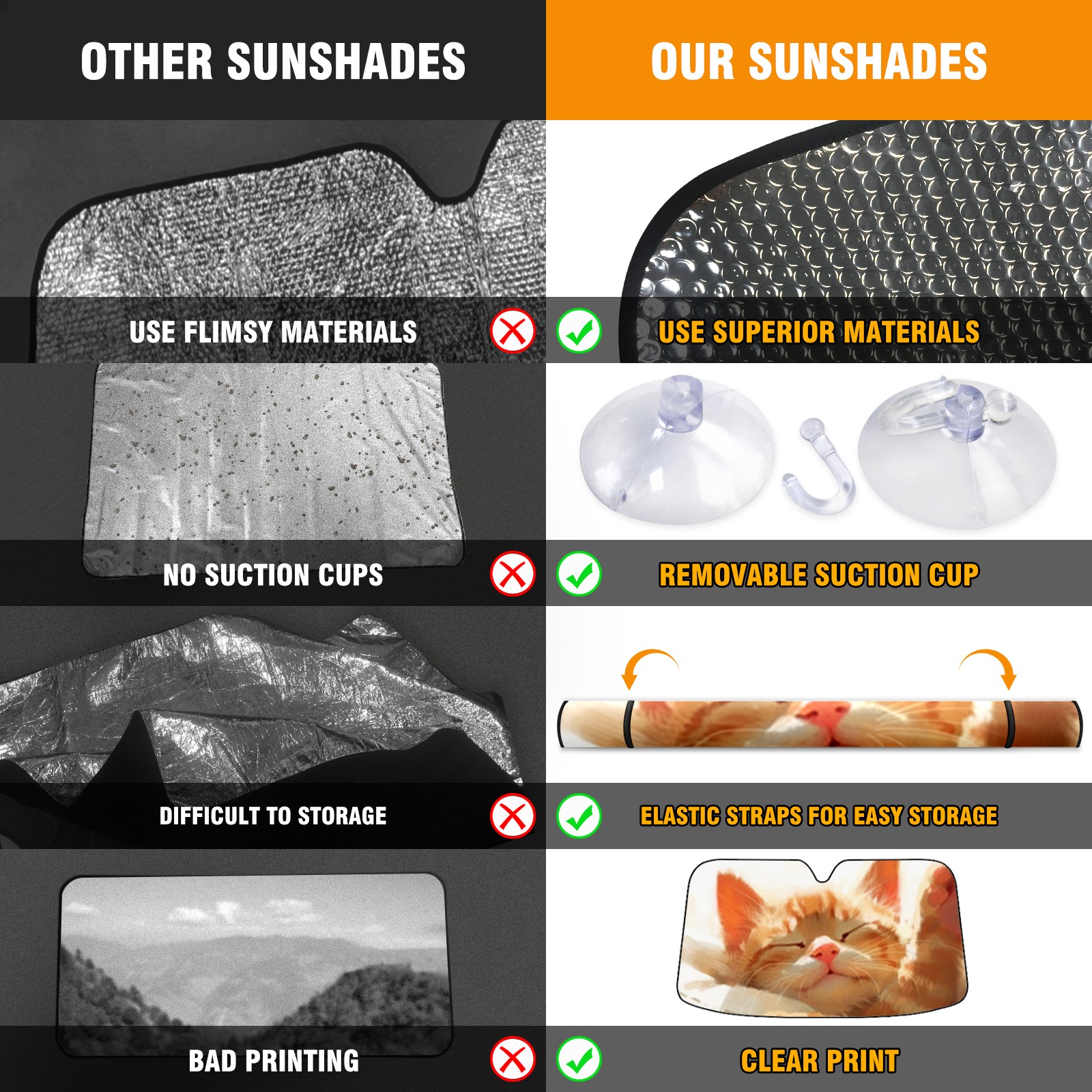 • Diameter /Size 63"L x 33.5"W Made from excellent materials which makes it sturdy and protects the car from the sun. Easy to use and pack. Makes the interior of the car cooler.You can easily stash the sunshade in the storage bag or store long term.It open and closes easy. Also the leather storage bag is durable and easy to put the umbrella back into.This windshield sunshade provides complete coverage and keeps your car interior cool under direct sun. It is easy to open and position under the windshield and around the rear-view mirror. Makes Your Car Easy To Identify, Perfect For Finding Your Car In Crowded Parking Lots And Garages.Great Choice: It Is A Great Gift For Dad, Boyfriend, Brother, Brother And Uncle, Friends, Classmates, Family And So On. Notice: Due To Difference Computer Monitors, The Color Maybe Slightly Different From Picture. As Different Measurement Methods, Measurement Data Will Float Within 2%.I Hope You Understand. If You Have Any Question About The Item Please Do Not Hesitate To Contact Us Immediately And We Will Give You A Satisfactory Reply Within 24 Hours.