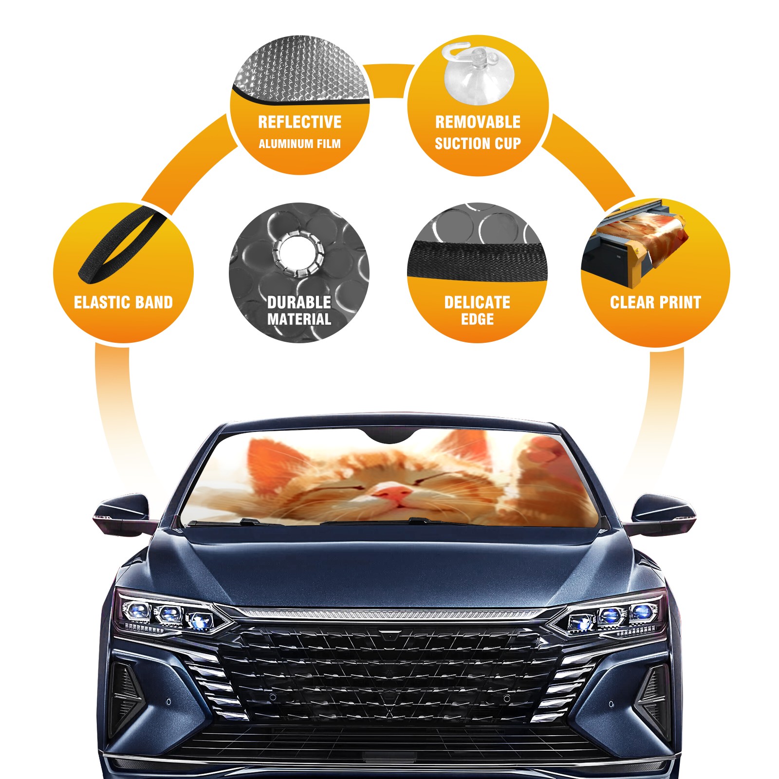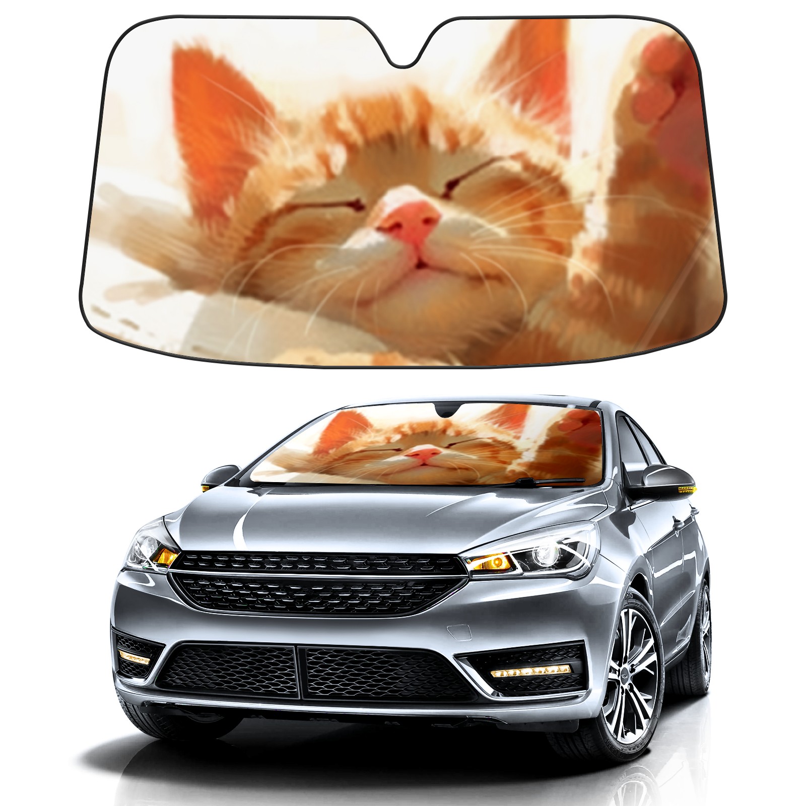 Car Windshield Sun Shade For Front Window Cute Cat Sleepy Foldable Vehicle Windshield Car Sun Visor Covers Automotive Window Protector Car Camping Privacy Sun Blocker
