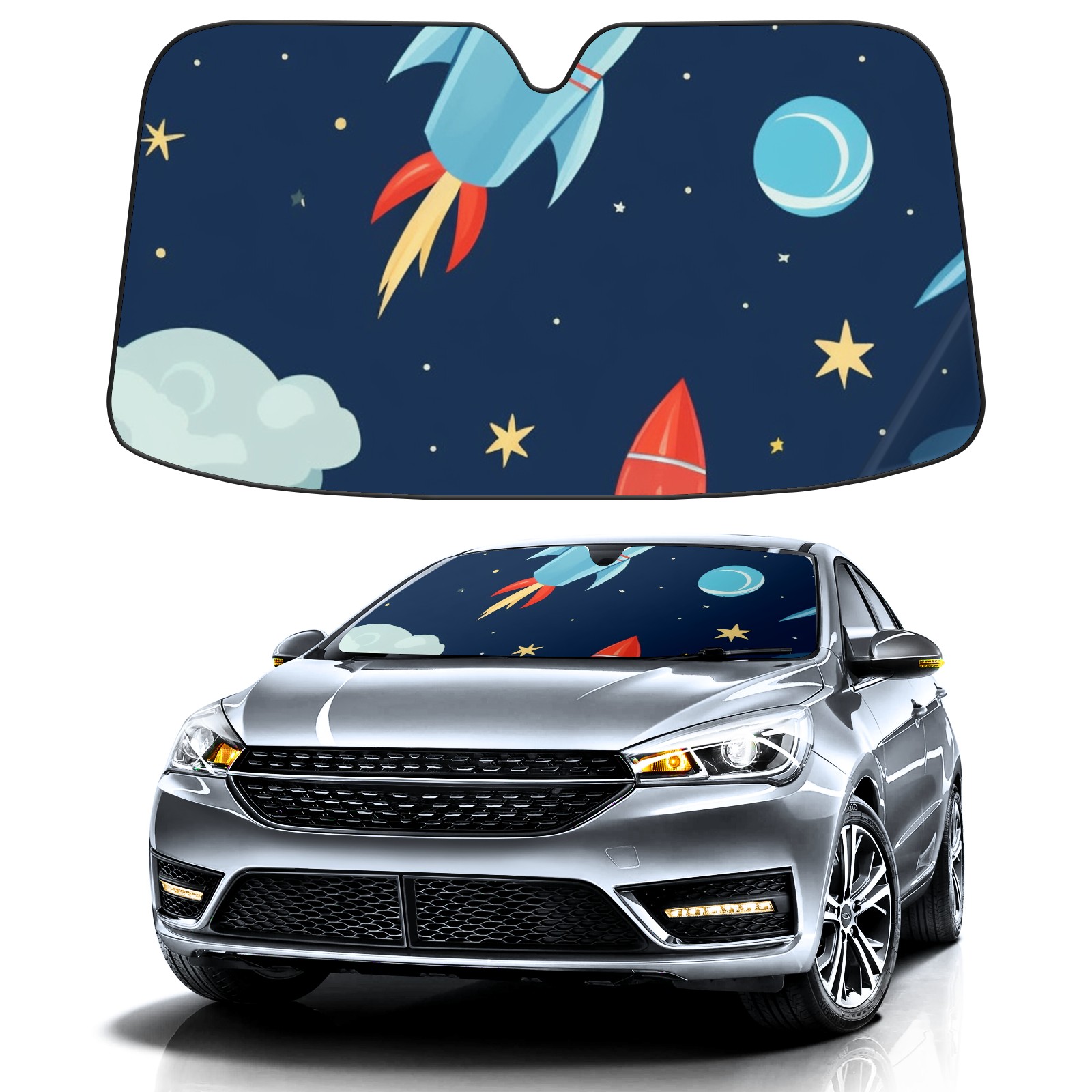 Car Windshield Sun Shade For Front Window Cartoon Airplanes Foldable Vehicle Windshield Car Sun Visor Covers Automotive Window Protector Car Camping Privacy Sun Blocker