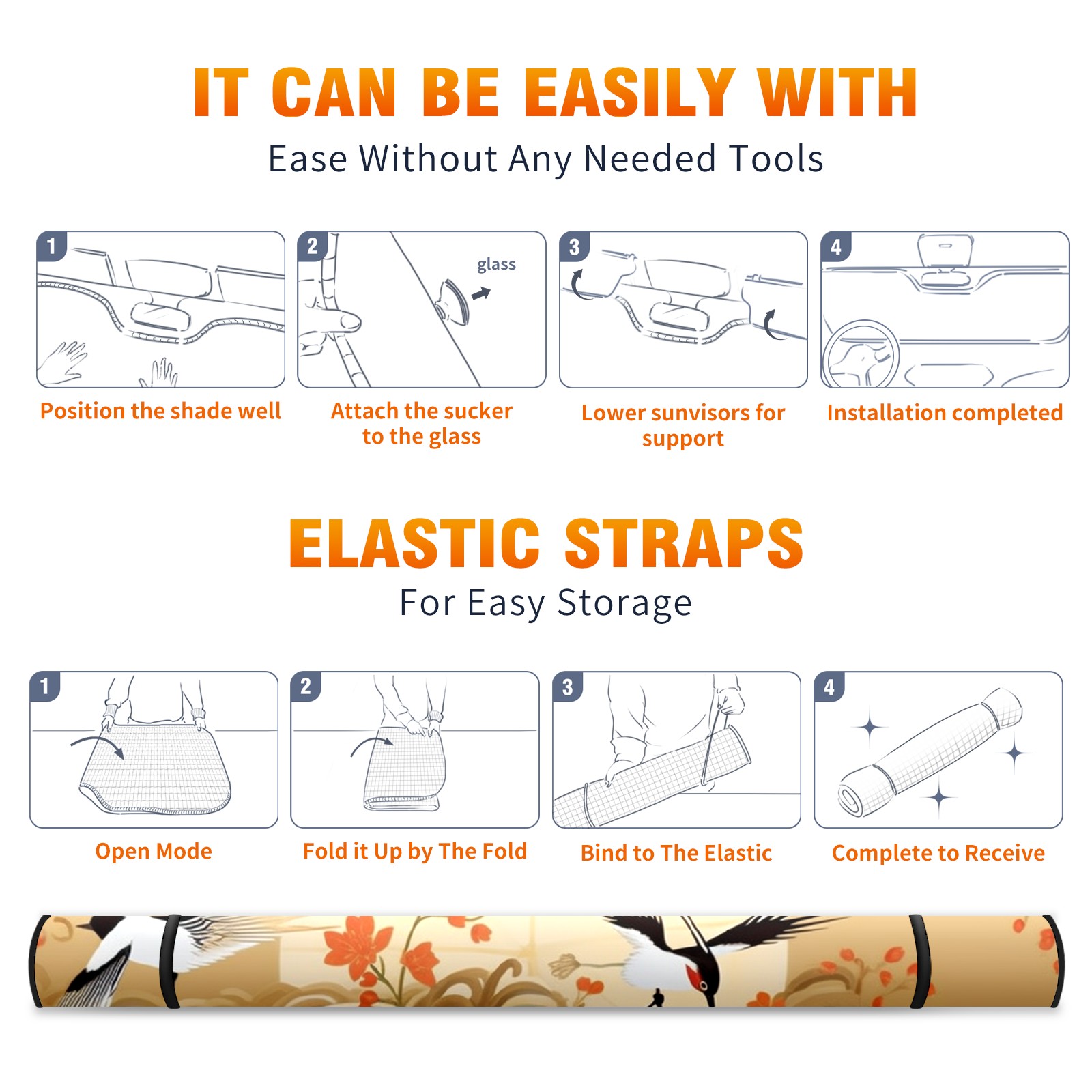 • Diameter /Size 63"L x 33.5"W Made from excellent materials which makes it sturdy and protects the car from the sun. Easy to use and pack. Makes the interior of the car cooler.You can easily stash the sunshade in the storage bag or store long term.It open and closes easy. Also the leather storage bag is durable and easy to put the umbrella back into.This windshield sunshade provides complete coverage and keeps your car interior cool under direct sun. It is easy to open and position under the windshield and around the rear-view mirror. Makes Your Car Easy To Identify, Perfect For Finding Your Car In Crowded Parking Lots And Garages.Great Choice: It Is A Great Gift For Dad, Boyfriend, Brother, Brother And Uncle, Friends, Classmates, Family And So On. Notice: Due To Difference Computer Monitors, The Color Maybe Slightly Different From Picture. As Different Measurement Methods, Measurement Data Will Float Within 2%.I Hope You Understand. If You Have Any Question About The Item Please Do Not Hesitate To Contact Us Immediately And We Will Give You A Satisfactory Reply Within 24 Hours.