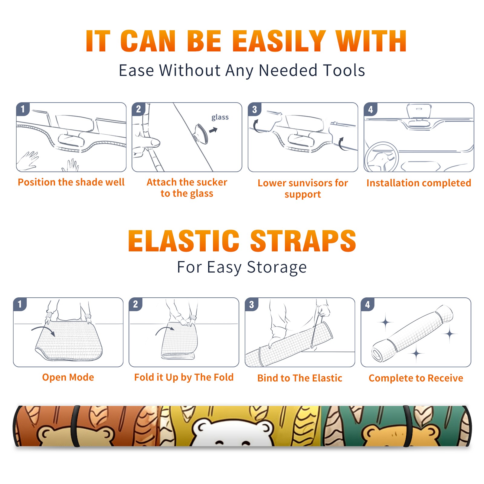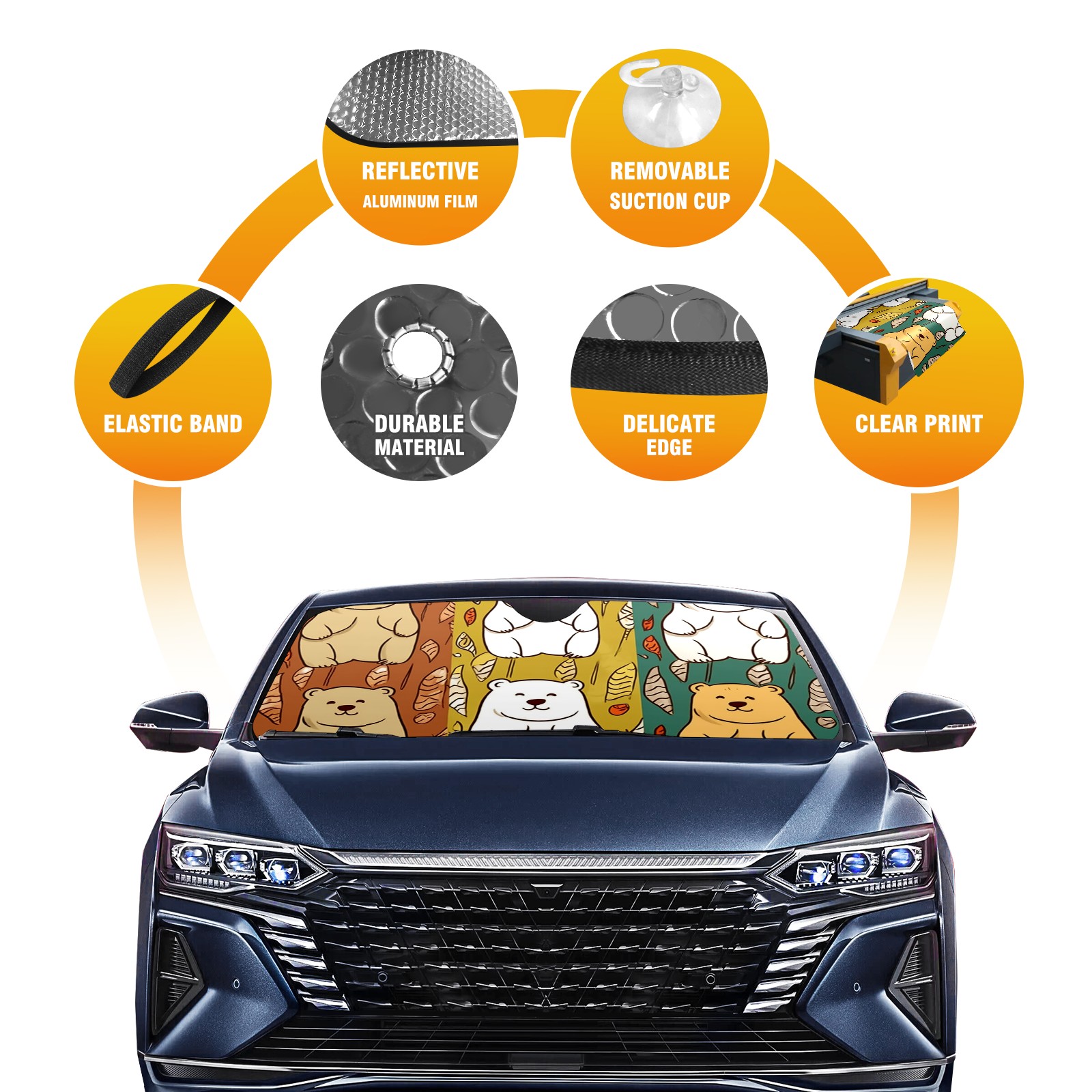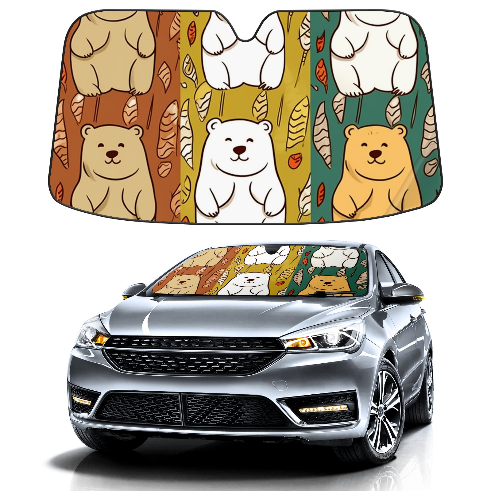 Car Windshield Sun Shade For Front Window Bear Foldable Vehicle Windshield Car Sun Visor Covers Automotive Window Protector Car Camping Privacy Sun Blocker