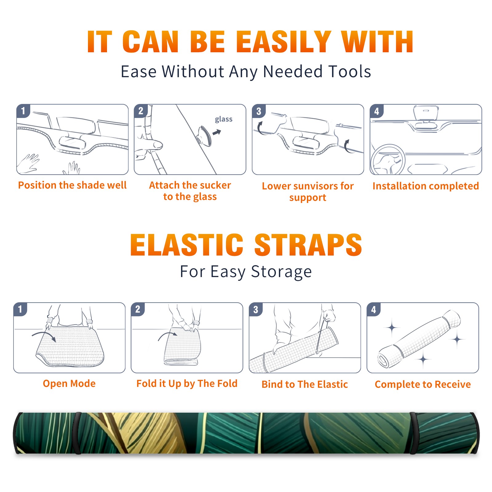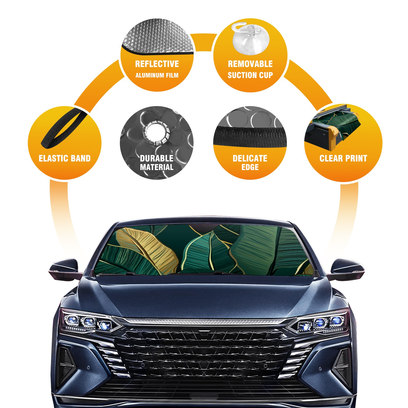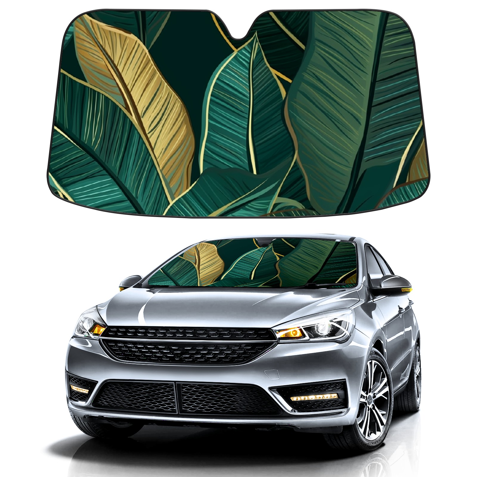 Car Windshield Sun Shade For Front Window Banana Leaves Foldable Vehicle Windshield Car Sun Visor Covers Automotive Window Protector Car Camping Privacy Sun Blocker