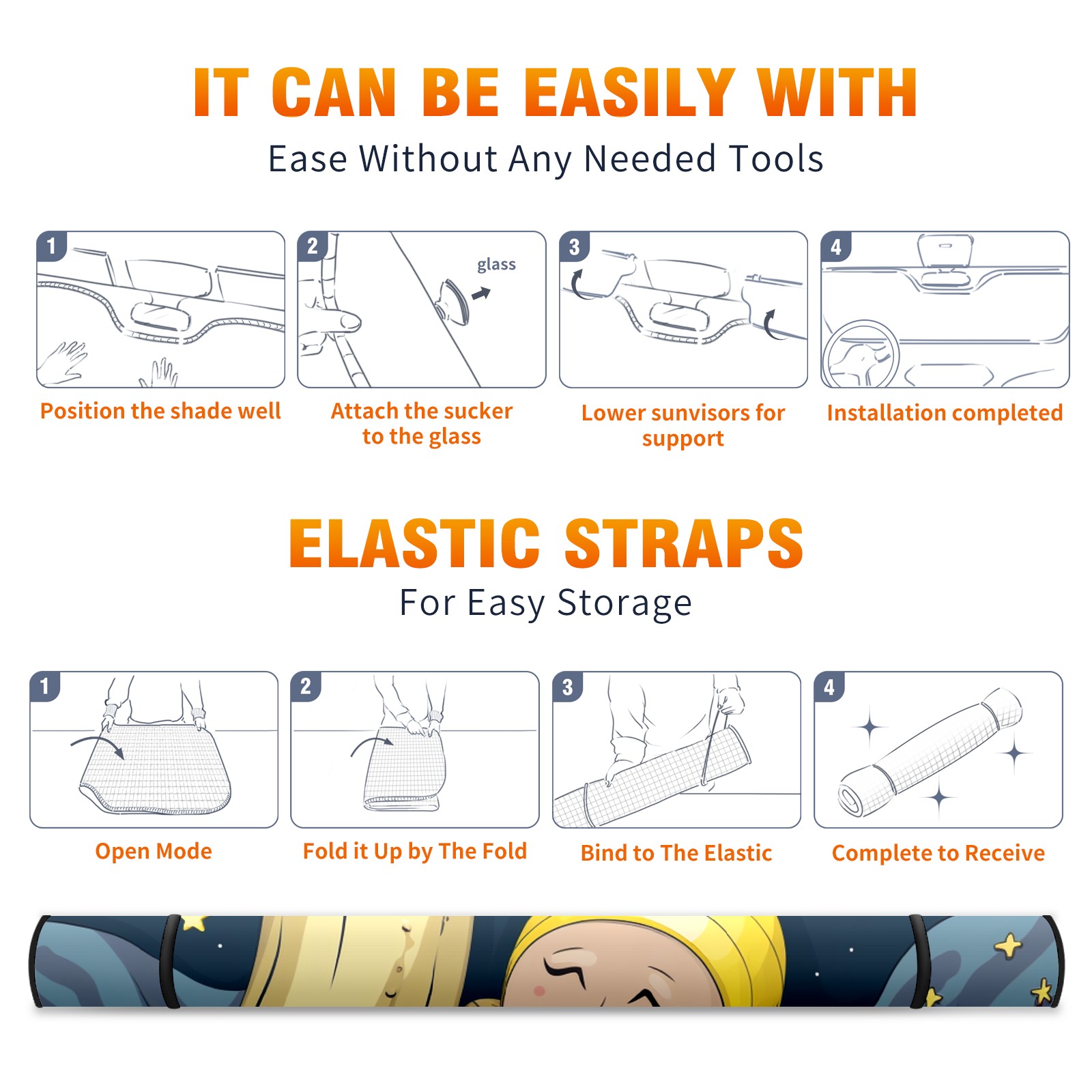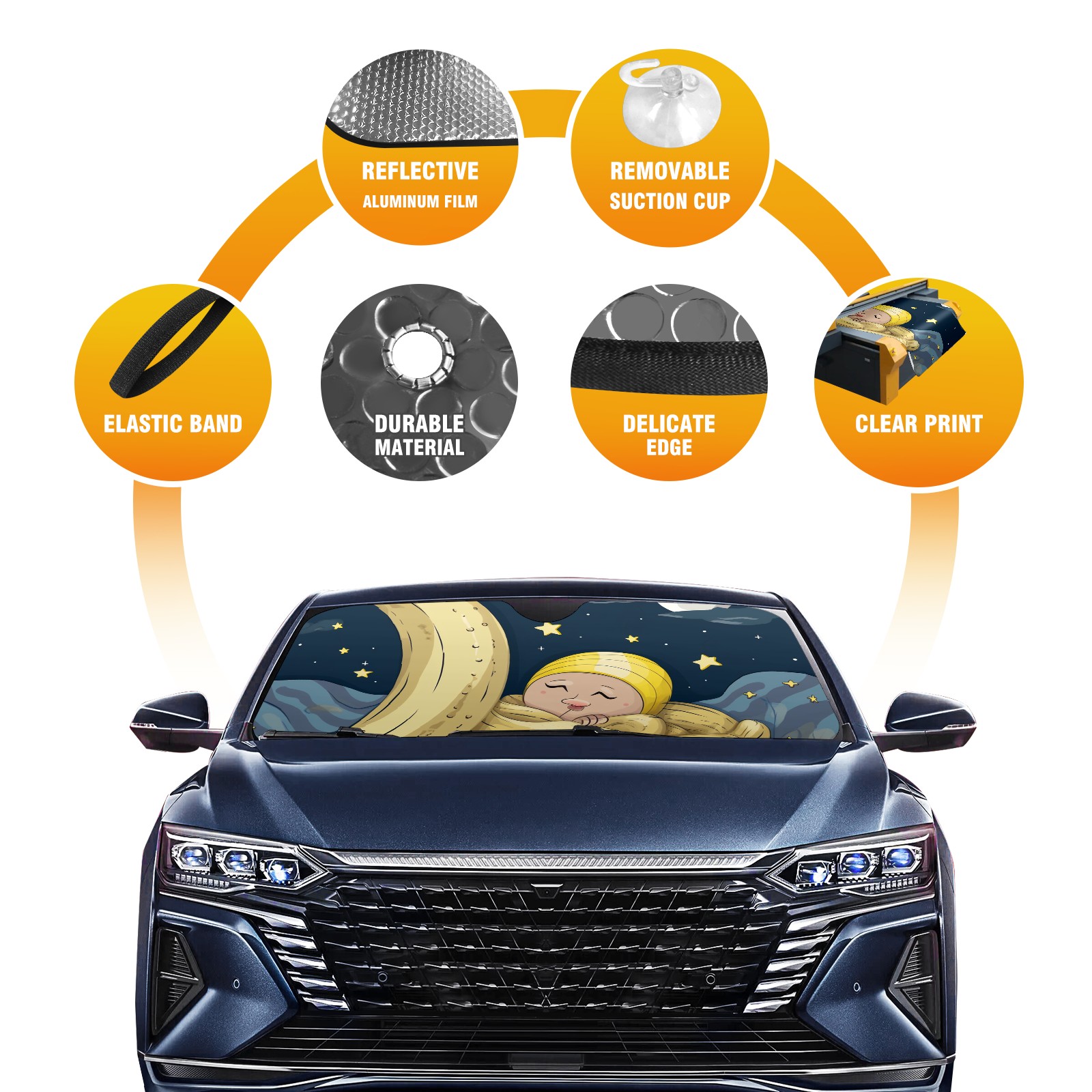 Car Windshield Sun Shade For Front Window Yellow Foldable Vehicle Windshield Car Sun Visor Covers Automotive Window Protector Car Camping Privacy Sun Blocker