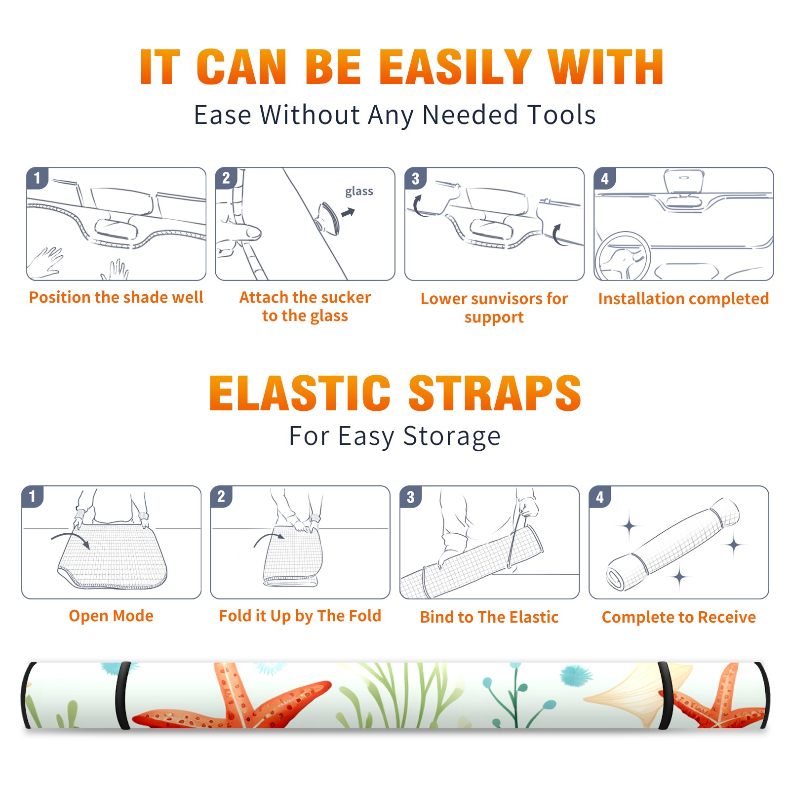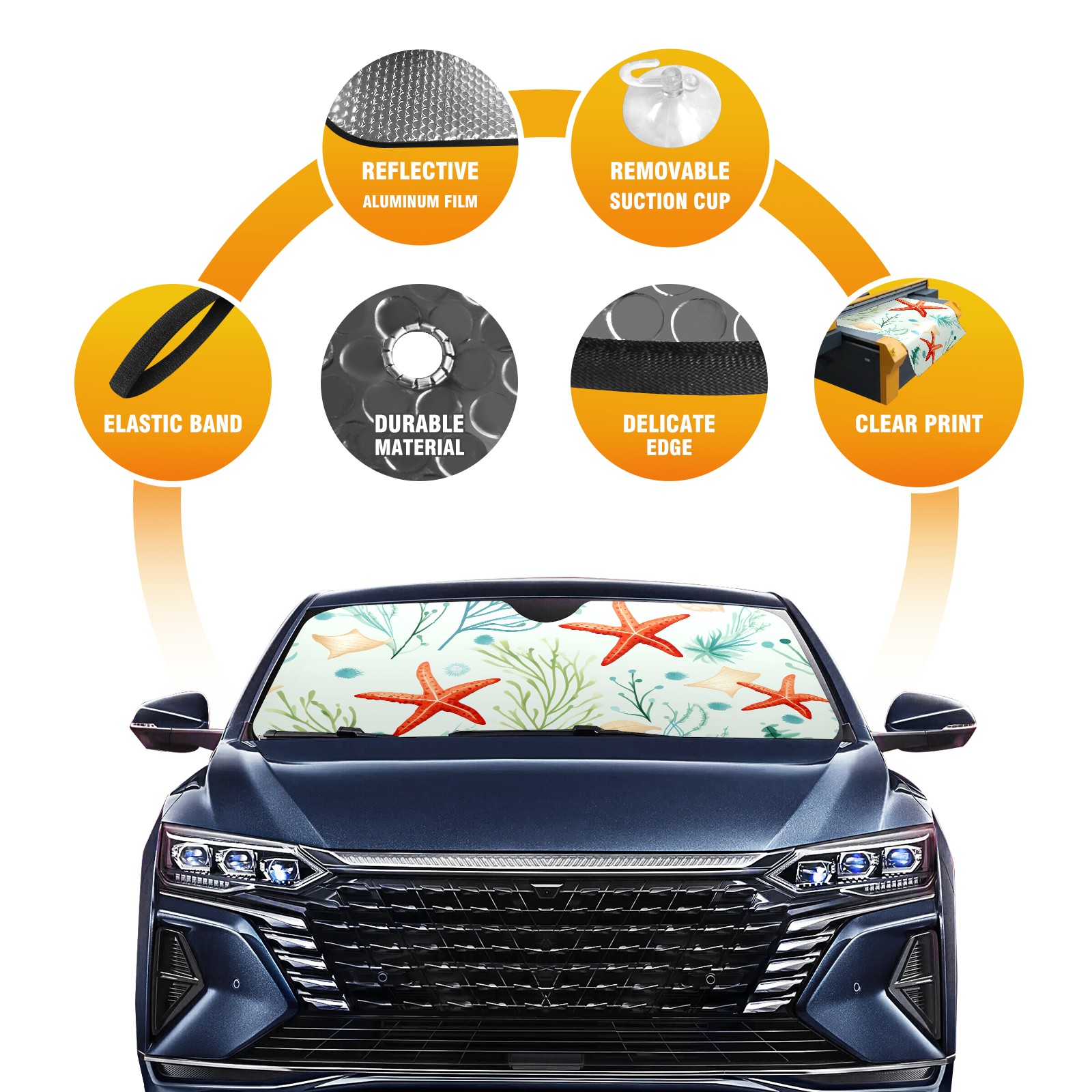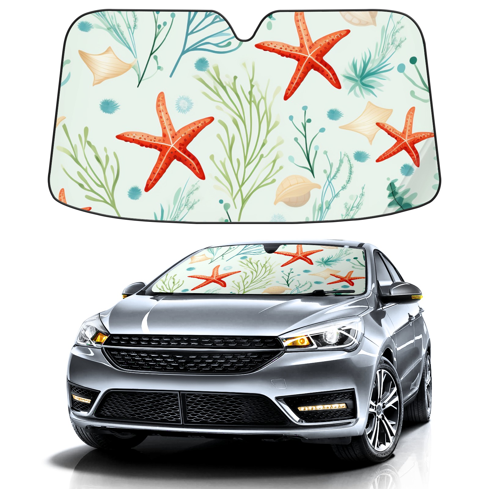 Car Windshield Sun Shade For Front Window Starfish Foldable Vehicle Windshield Car Sun Visor Covers Automotive Window Protector Car Camping Privacy Sun Blocker
