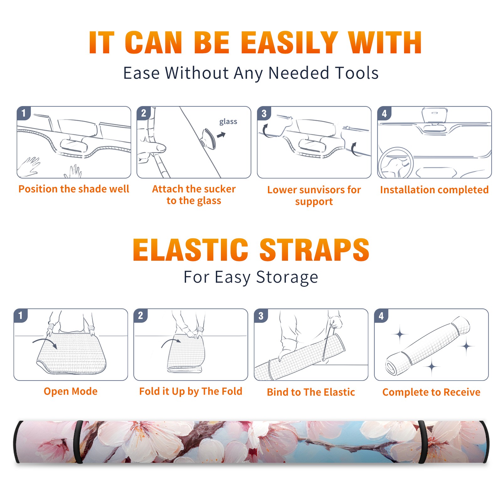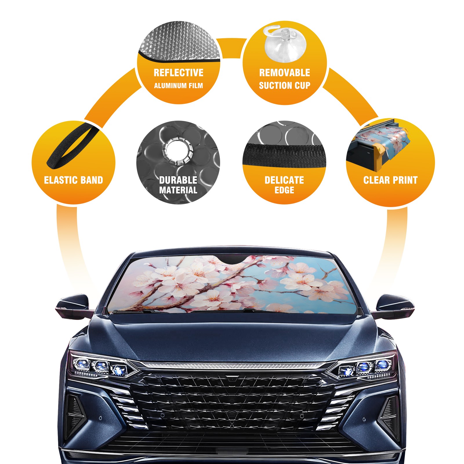 Car Windshield Sun Shade For Front Window Sakura Foldable Vehicle Windshield Car Sun Visor Covers Automotive Window Protector Car Camping Privacy Sun Blocker