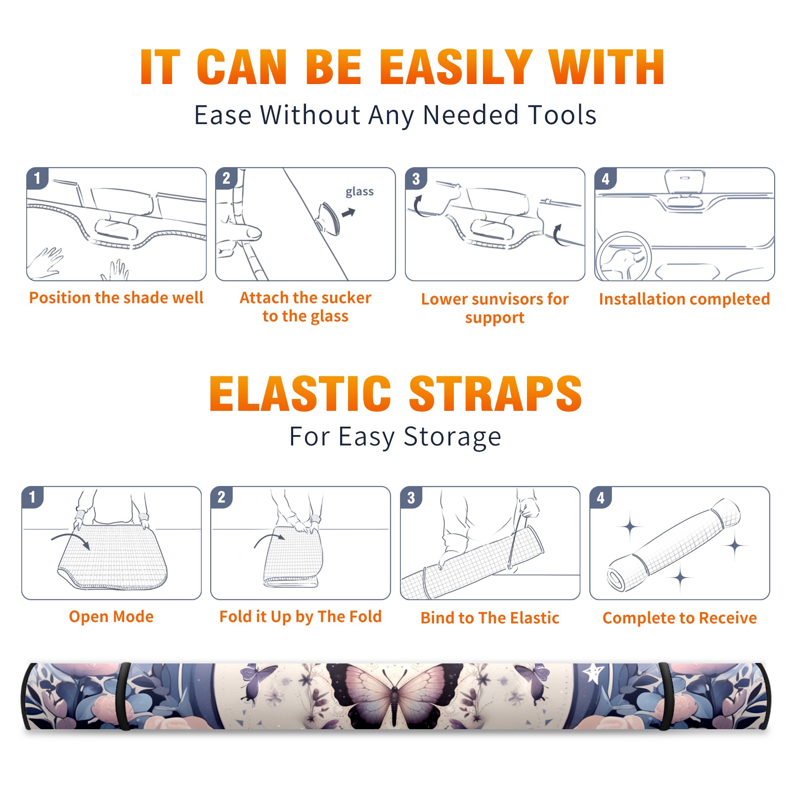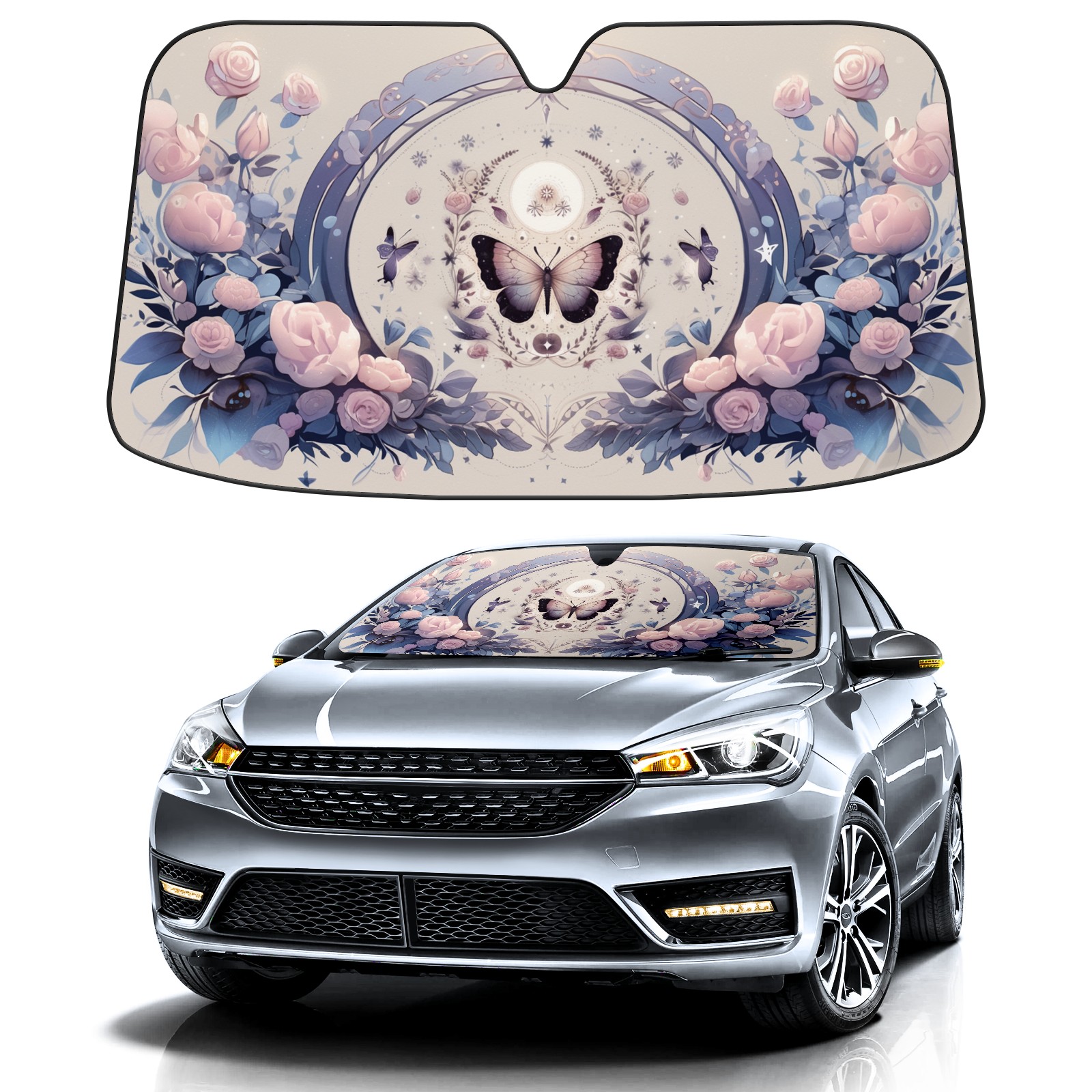 Car Windshield Sun Shade For Front Window Colorful Butterfly Foldable Vehicle Windshield Car Sun Visor Covers Automotive Window Protector Car Camping Privacy Sun Blocker