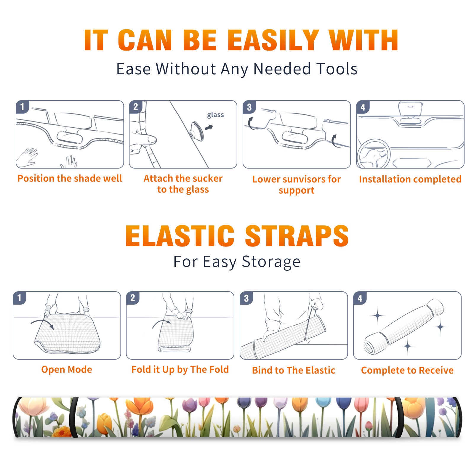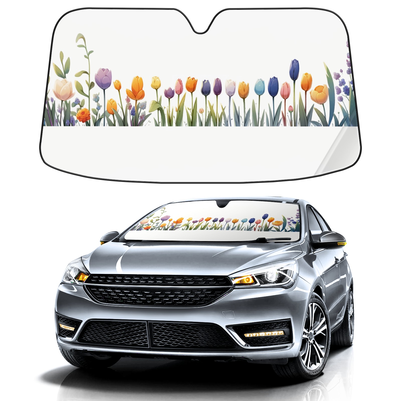 Car Windshield Sun Shade For Front Window Safflower Foldable Vehicle Windshield Car Sun Visor Covers Automotive Window Protector Car Camping Privacy Sun Blocker