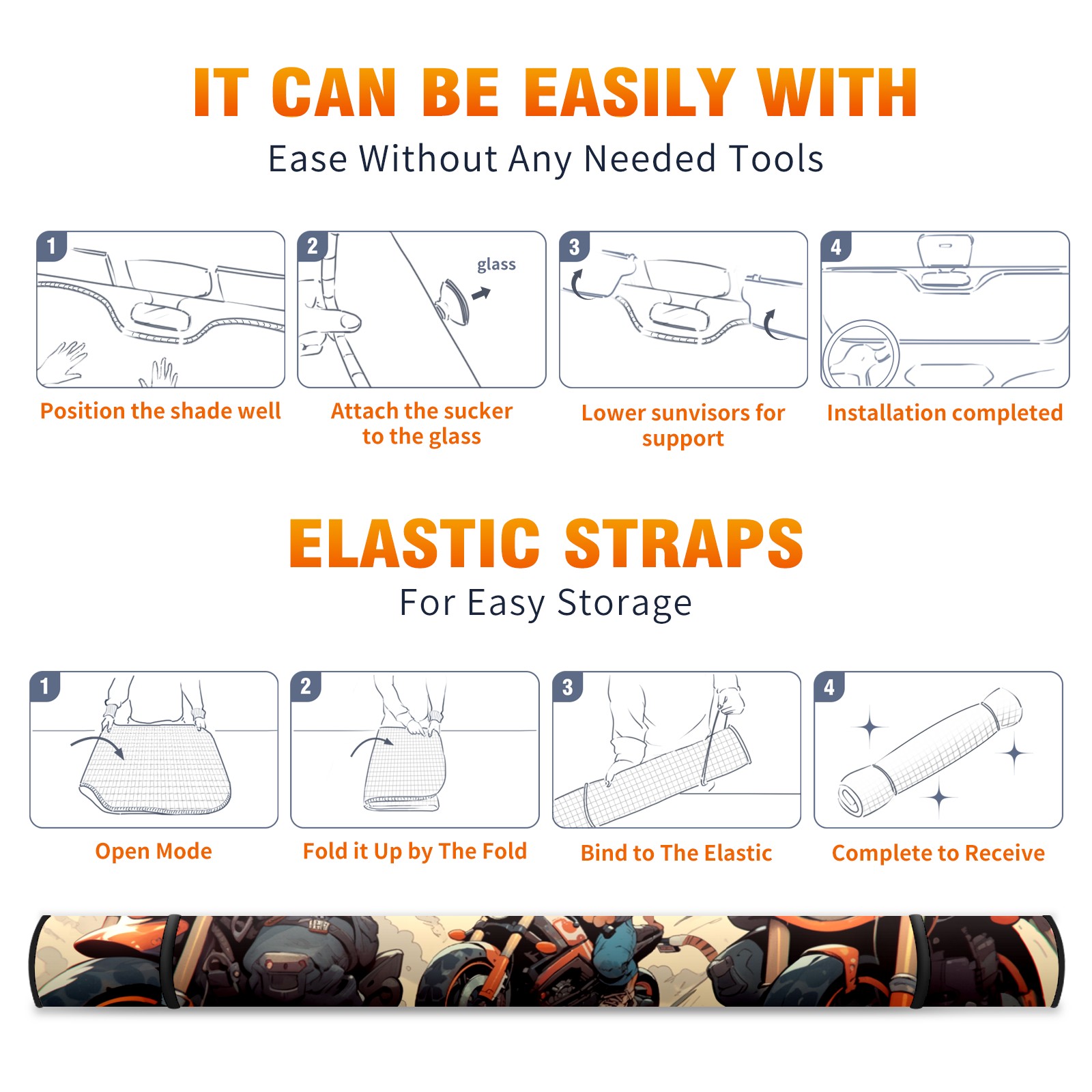 • Diameter /Size 63"L x 33.5"W Made from excellent materials which makes it sturdy and protects the car from the sun. Easy to use and pack. Makes the interior of the car cooler.You can easily stash the sunshade in the storage bag or store long term.It open and closes easy. Also the leather storage bag is durable and easy to put the umbrella back into.This windshield sunshade provides complete coverage and keeps your car interior cool under direct sun. It is easy to open and position under the windshield and around the rear-view mirror. Makes Your Car Easy To Identify, Perfect For Finding Your Car In Crowded Parking Lots And Garages.Great Choice: It Is A Great Gift For Dad, Boyfriend, Brother, Brother And Uncle, Friends, Classmates, Family And So On. Notice: Due To Difference Computer Monitors, The Color Maybe Slightly Different From Picture. As Different Measurement Methods, Measurement Data Will Float Within 2%.I Hope You Understand. If You Have Any Question About The Item Please Do Not Hesitate To Contact Us Immediately And We Will Give You A Satisfactory Reply Within 24 Hours.