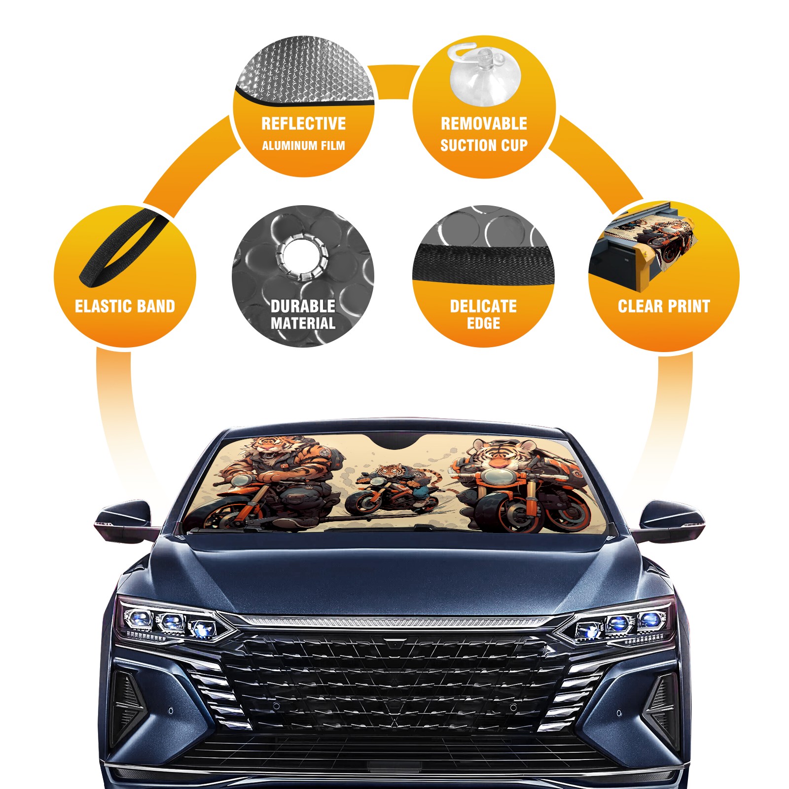 Car Windshield Sun Shade For Front Window Tiger Foldable Vehicle Windshield Car Sun Visor Covers Automotive Window Protector Car Camping Privacy Sun Blocker