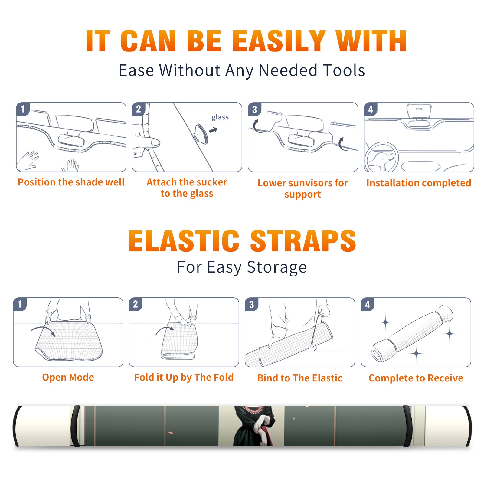 • Diameter /Size 63"L x 33.5"W Made from excellent materials which makes it sturdy and protects the car from the sun. Easy to use and pack. Makes the interior of the car cooler.You can easily stash the sunshade in the storage bag or store long term.It open and closes easy. Also the leather storage bag is durable and easy to put the umbrella back into.This windshield sunshade provides complete coverage and keeps your car interior cool under direct sun. It is easy to open and position under the windshield and around the rear-view mirror. Makes Your Car Easy To Identify, Perfect For Finding Your Car In Crowded Parking Lots And Garages.Great Choice: It Is A Great Gift For Dad, Boyfriend, Brother, Brother And Uncle, Friends, Classmates, Family And So On. Notice: Due To Difference Computer Monitors, The Color Maybe Slightly Different From Picture. As Different Measurement Methods, Measurement Data Will Float Within 2%.I Hope You Understand. If You Have Any Question About The Item Please Do Not Hesitate To Contact Us Immediately And We Will Give You A Satisfactory Reply Within 24 Hours.