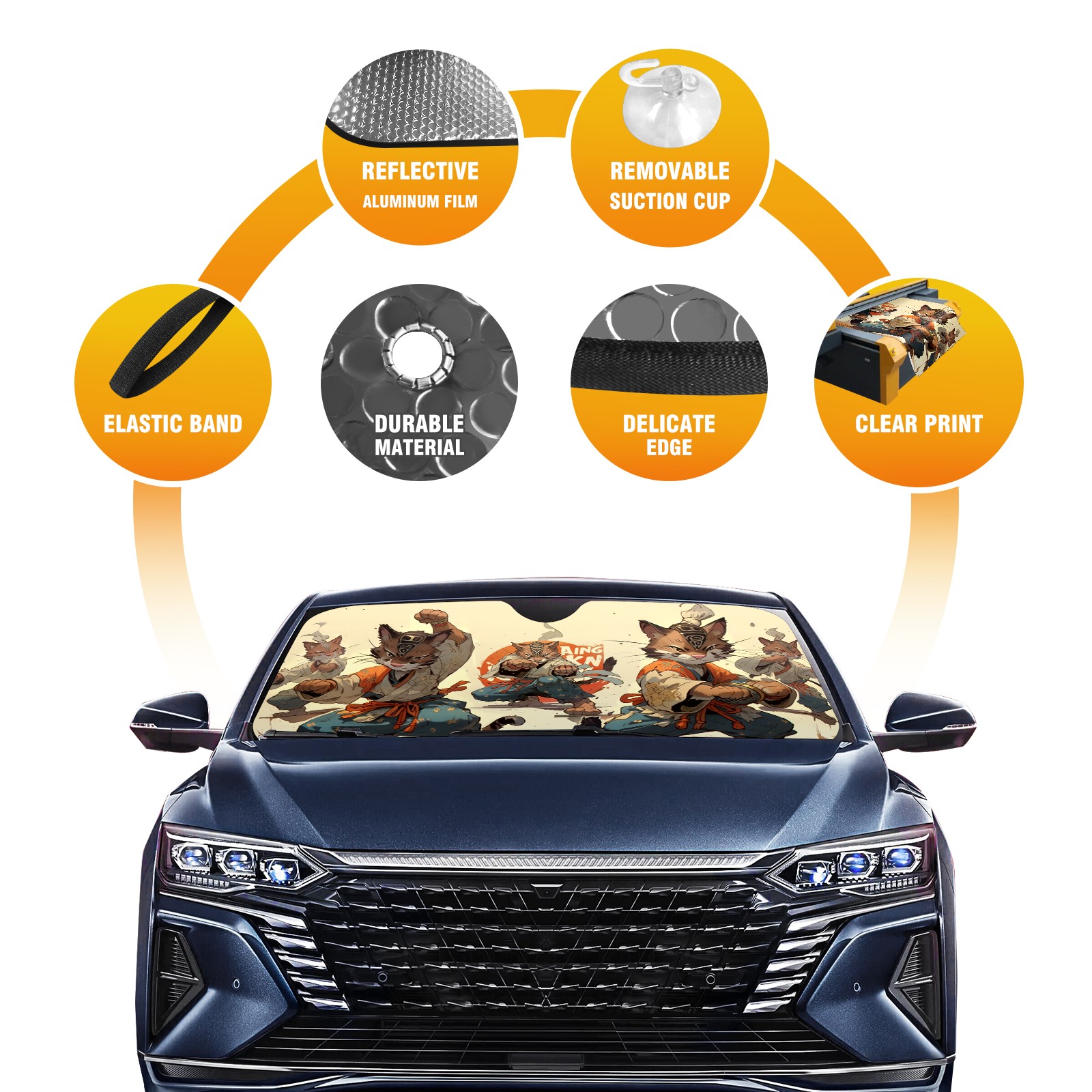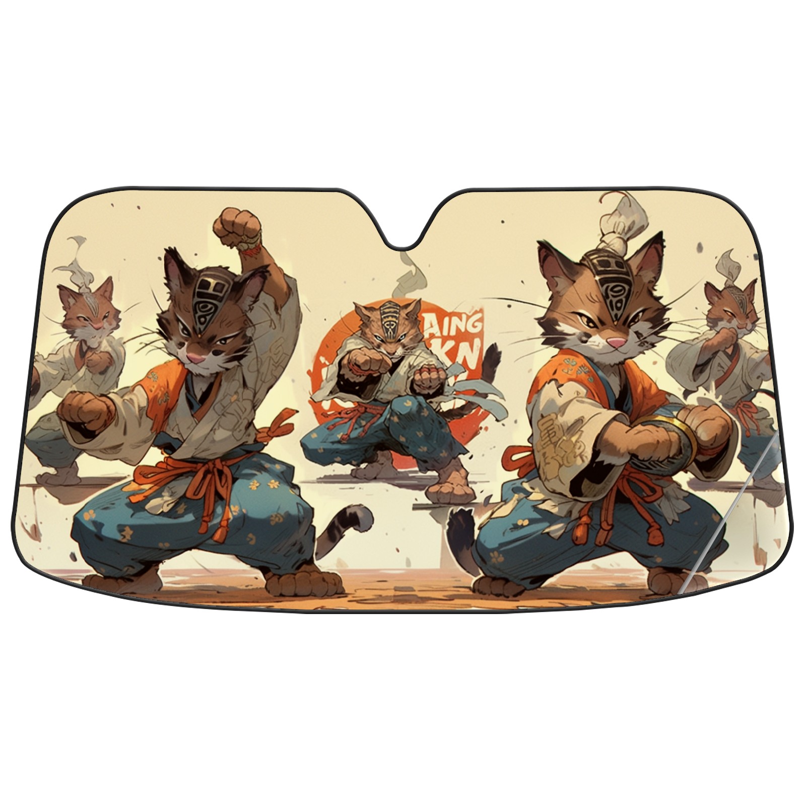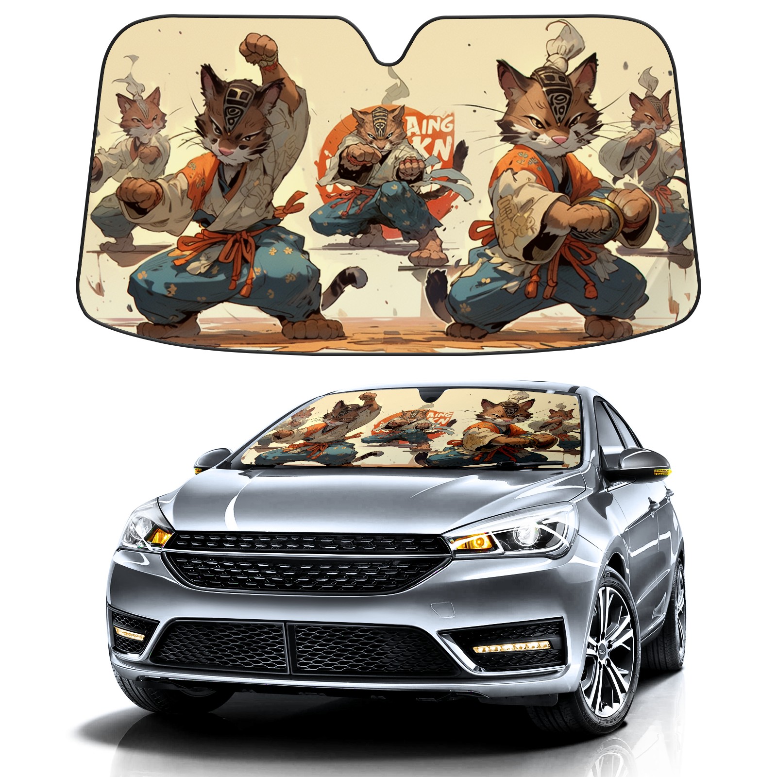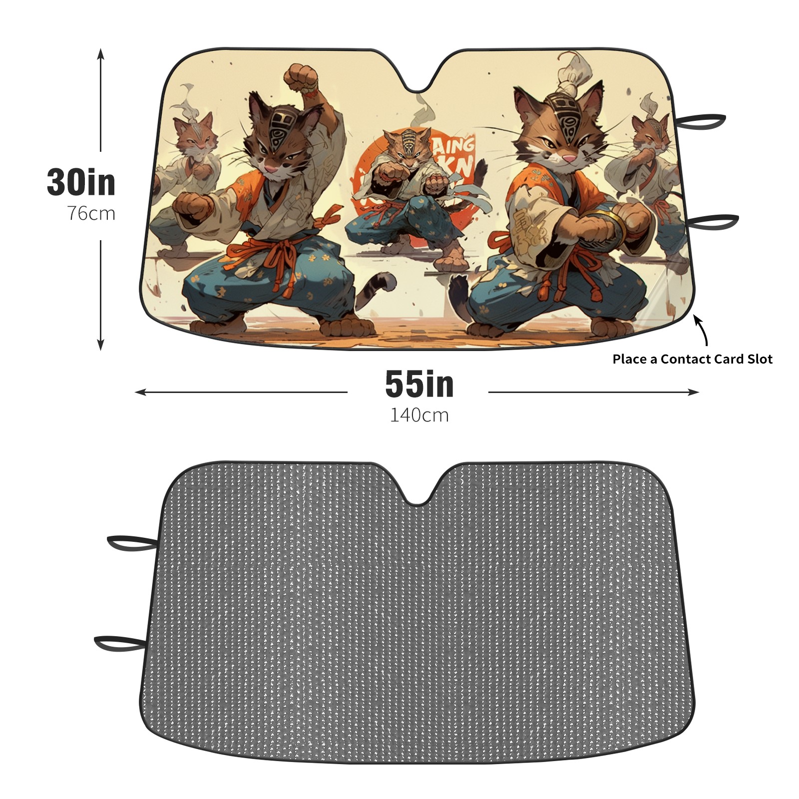 Car Windshield Sun Shade For Front Window Kung Fu Cat Foldable Vehicle Windshield Car Sun Visor Covers Automotive Window Protector Car Camping Privacy Sun Blocker