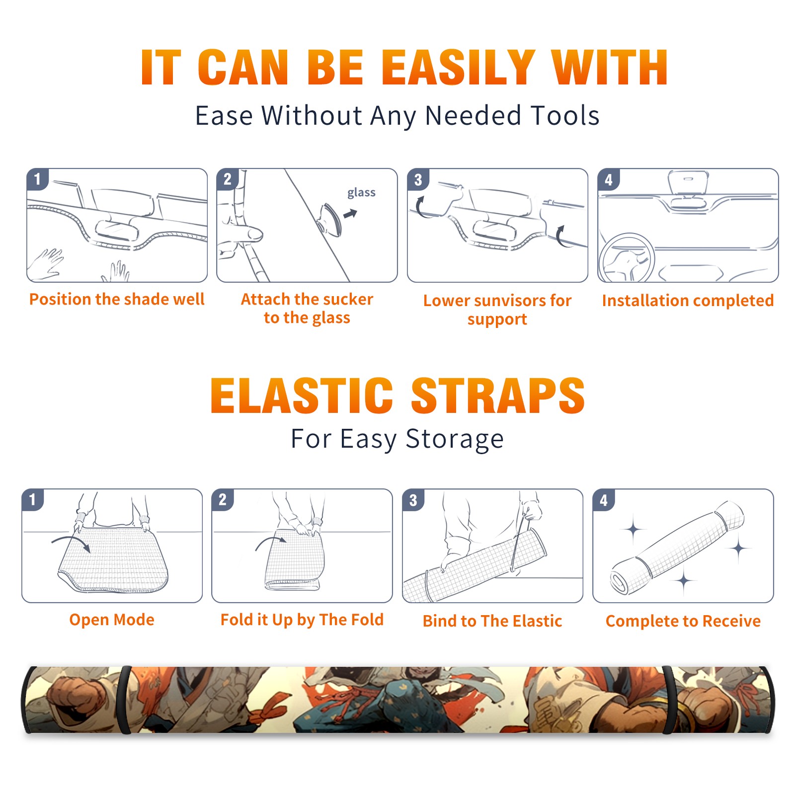 • Diameter /Size 63"L x 33.5"W Made from excellent materials which makes it sturdy and protects the car from the sun. Easy to use and pack. Makes the interior of the car cooler.You can easily stash the sunshade in the storage bag or store long term.It open and closes easy. Also the leather storage bag is durable and easy to put the umbrella back into.This windshield sunshade provides complete coverage and keeps your car interior cool under direct sun. It is easy to open and position under the windshield and around the rear-view mirror. Makes Your Car Easy To Identify, Perfect For Finding Your Car In Crowded Parking Lots And Garages.Great Choice: It Is A Great Gift For Dad, Boyfriend, Brother, Brother And Uncle, Friends, Classmates, Family And So On. Notice: Due To Difference Computer Monitors, The Color Maybe Slightly Different From Picture. As Different Measurement Methods, Measurement Data Will Float Within 2%.I Hope You Understand. If You Have Any Question About The Item Please Do Not Hesitate To Contact Us Immediately And We Will Give You A Satisfactory Reply Within 24 Hours.