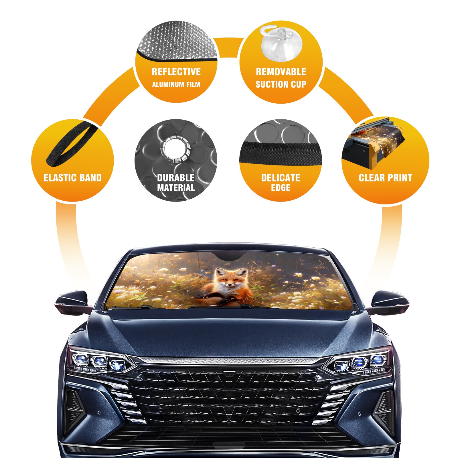 Diameter /Size 63"L x 33.5"W Made from excellent materials which makes it sturdy and protects the car from the sun. Easy to use and pack. Makes the interior of the car cooler.You can easily stash the sunshade in the storage bag or store long term.It open and closes easy. Also the leather storage bag is durable and easy to put the umbrella back into.This windshield sunshade provides complete coverage and keeps your car interior cool under direct sun. It is easy to open and position under the windshield and around the rear-view mirror. Makes Your Car Easy To Identify, Perfect For Finding Your Car In Crowded Parking Lots And Garages.Great Choice: It Is A Great Gift For Dad, Boyfriend, Brother, Brother And Uncle, Friends, Classmates, Family And So On. Notice: Due To Difference Computer Monitors, The Color Maybe Slightly Different From Picture. As Different Measurement Methods, Measurement Data Will Float Within 2%.I Hope You Understand. If You Have Any Question About The Item Please Do Not Hesitate To Contact Us Immediately And We Will Give You A Satisfactory Reply Within 24 Hours.