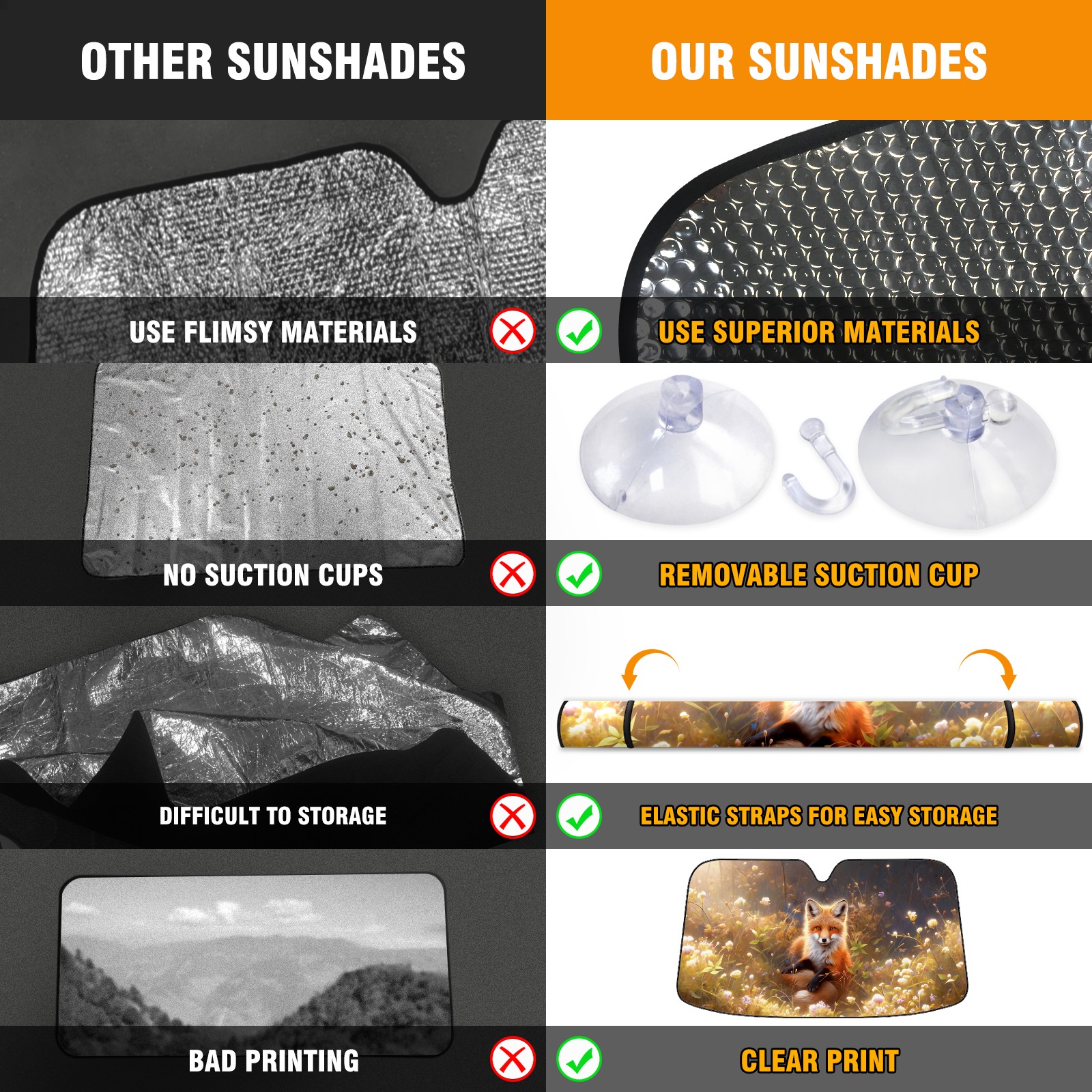 • Diameter /Size 63"L x 33.5"W Made from excellent materials which makes it sturdy and protects the car from the sun. Easy to use and pack. Makes the interior of the car cooler.You can easily stash the sunshade in the storage bag or store long term.It open and closes easy. Also the leather storage bag is durable and easy to put the umbrella back into.This windshield sunshade provides complete coverage and keeps your car interior cool under direct sun. It is easy to open and position under the windshield and around the rear-view mirror. Makes Your Car Easy To Identify, Perfect For Finding Your Car In Crowded Parking Lots And Garages.Great Choice: It Is A Great Gift For Dad, Boyfriend, Brother, Brother And Uncle, Friends, Classmates, Family And So On. Notice: Due To Difference Computer Monitors, The Color Maybe Slightly Different From Picture. As Different Measurement Methods, Measurement Data Will Float Within 2%.I Hope You Understand. If You Have Any Question About The Item Please Do Not Hesitate To Contact Us Immediately And We Will Give You A Satisfactory Reply Within 24 Hours.