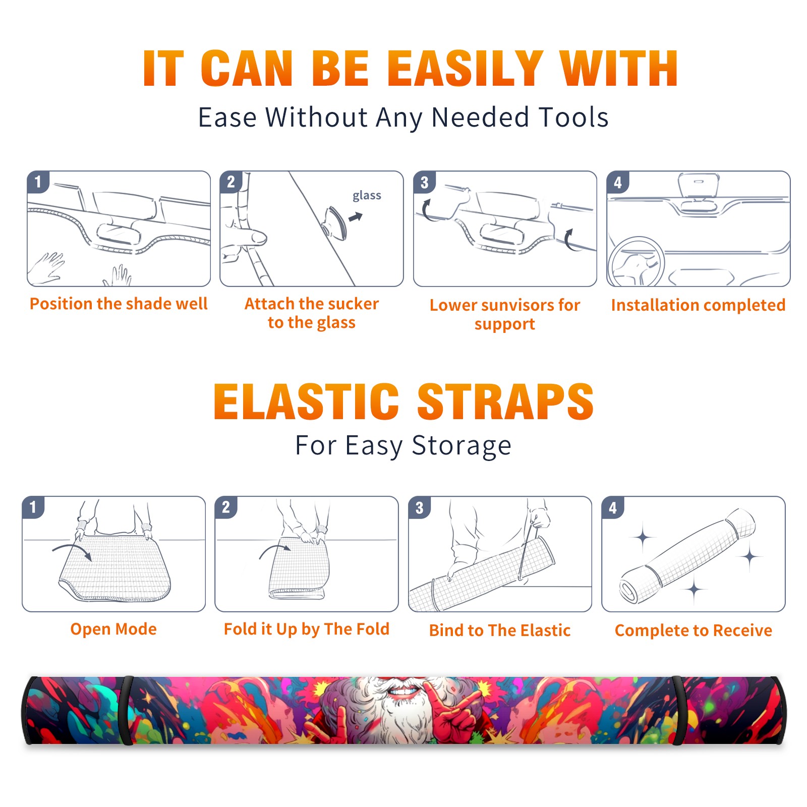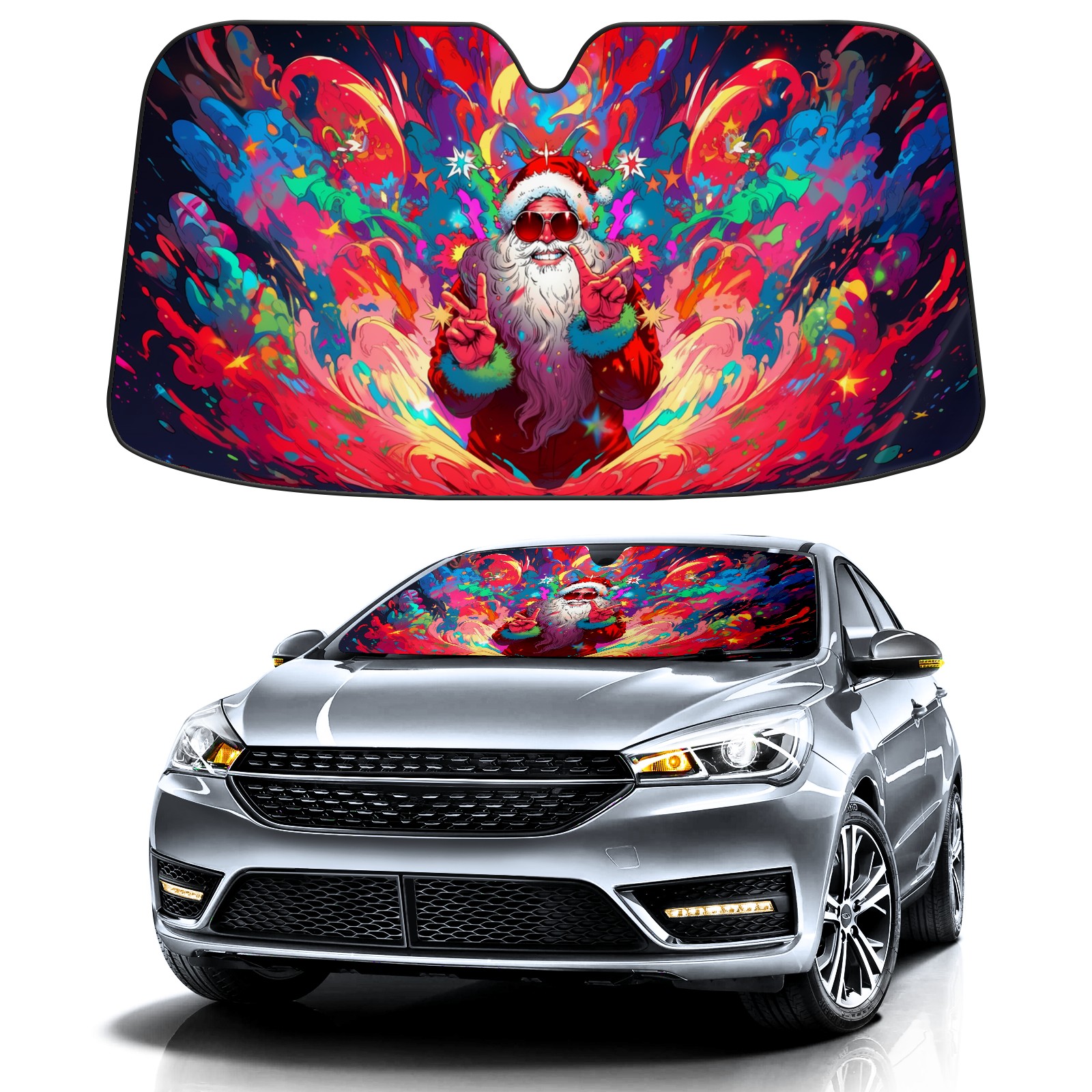 Car Windshield Sun Shade For Front Window Santa Claus Foldable Vehicle Windshield Car Sun Visor Covers Automotive Window Protector Car Camping Privacy Sun Blocker