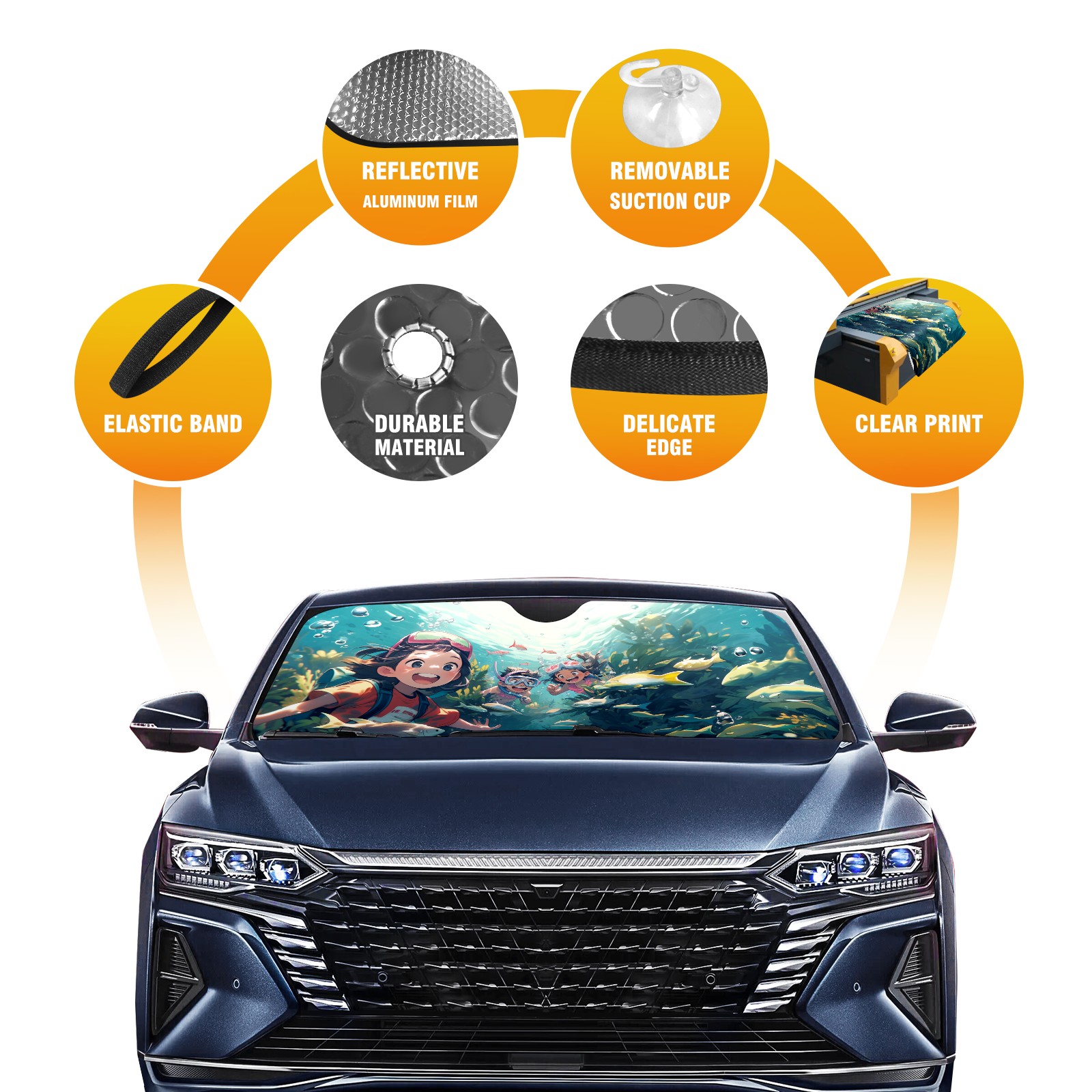 Diameter /Size 63"L x 33.5"W Made from excellent materials which makes it sturdy and protects the car from the sun. Easy to use and pack. Makes the interior of the car cooler.You can easily stash the sunshade in the storage bag or store long term.It open and closes easy. Also the leather storage bag is durable and easy to put the umbrella back into.This windshield sunshade provides complete coverage and keeps your car interior cool under direct sun. It is easy to open and position under the windshield and around the rear-view mirror. Makes Your Car Easy To Identify, Perfect For Finding Your Car In Crowded Parking Lots And Garages.Great Choice: It Is A Great Gift For Dad, Boyfriend, Brother, Brother And Uncle, Friends, Classmates, Family And So On. Notice: Due To Difference Computer Monitors, The Color Maybe Slightly Different From Picture. As Different Measurement Methods, Measurement Data Will Float Within 2%.I Hope You Understand. If You Have Any Question About The Item Please Do Not Hesitate To Contact Us Immediately And We Will Give You A Satisfactory Reply Within 24 Hours.