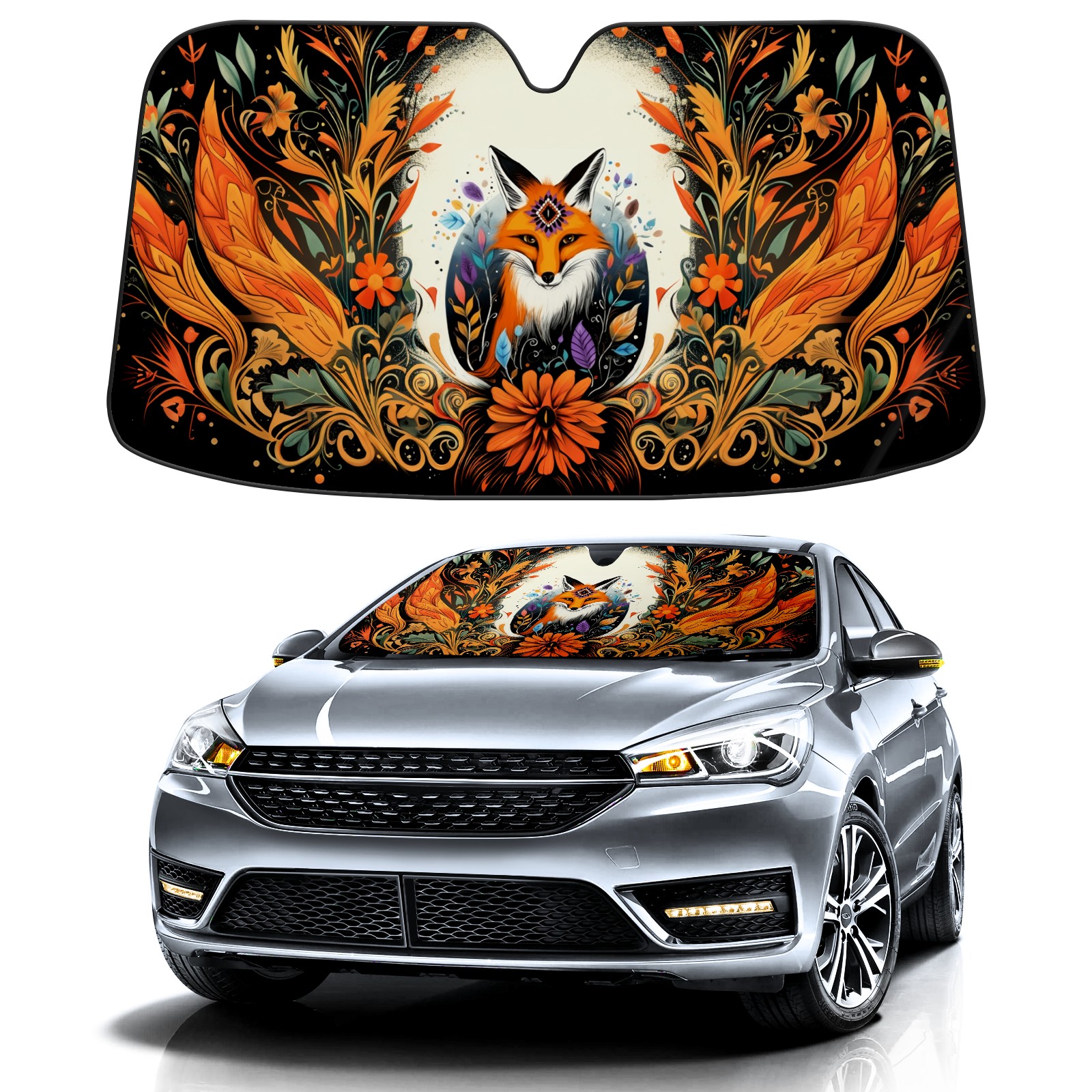 Car Windshield Sun Shade For Front Window Wolf Diagram Foldable Vehicle Windshield Car Sun Visor Covers Automotive Window Protector Car Camping Privacy Sun Blocker