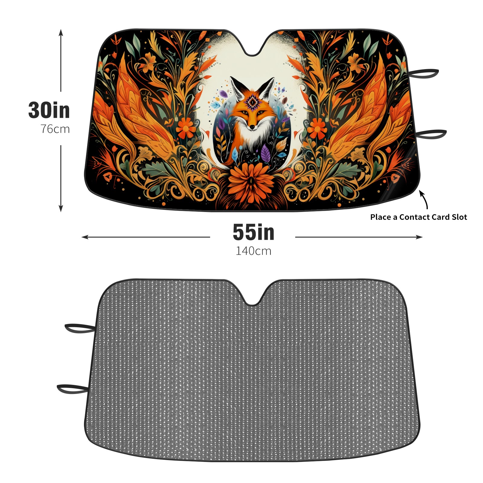 Diameter /Size 63"L x 33.5"W Made from excellent materials which makes it sturdy and protects the car from the sun. Easy to use and pack. Makes the interior of the car cooler.You can easily stash the sunshade in the storage bag or store long term.It open and closes easy. Also the leather storage bag is durable and easy to put the umbrella back into.This windshield sunshade provides complete coverage and keeps your car interior cool under direct sun. It is easy to open and position under the windshield and around the rear-view mirror. Makes Your Car Easy To Identify, Perfect For Finding Your Car In Crowded Parking Lots And Garages.Great Choice: It Is A Great Gift For Dad, Boyfriend, Brother, Brother And Uncle, Friends, Classmates, Family And So On. Notice: Due To Difference Computer Monitors, The Color Maybe Slightly Different From Picture. As Different Measurement Methods, Measurement Data Will Float Within 2%.I Hope You Understand. If You Have Any Question About The Item Please Do Not Hesitate To Contact Us Immediately And We Will Give You A Satisfactory Reply Within 24 Hours.