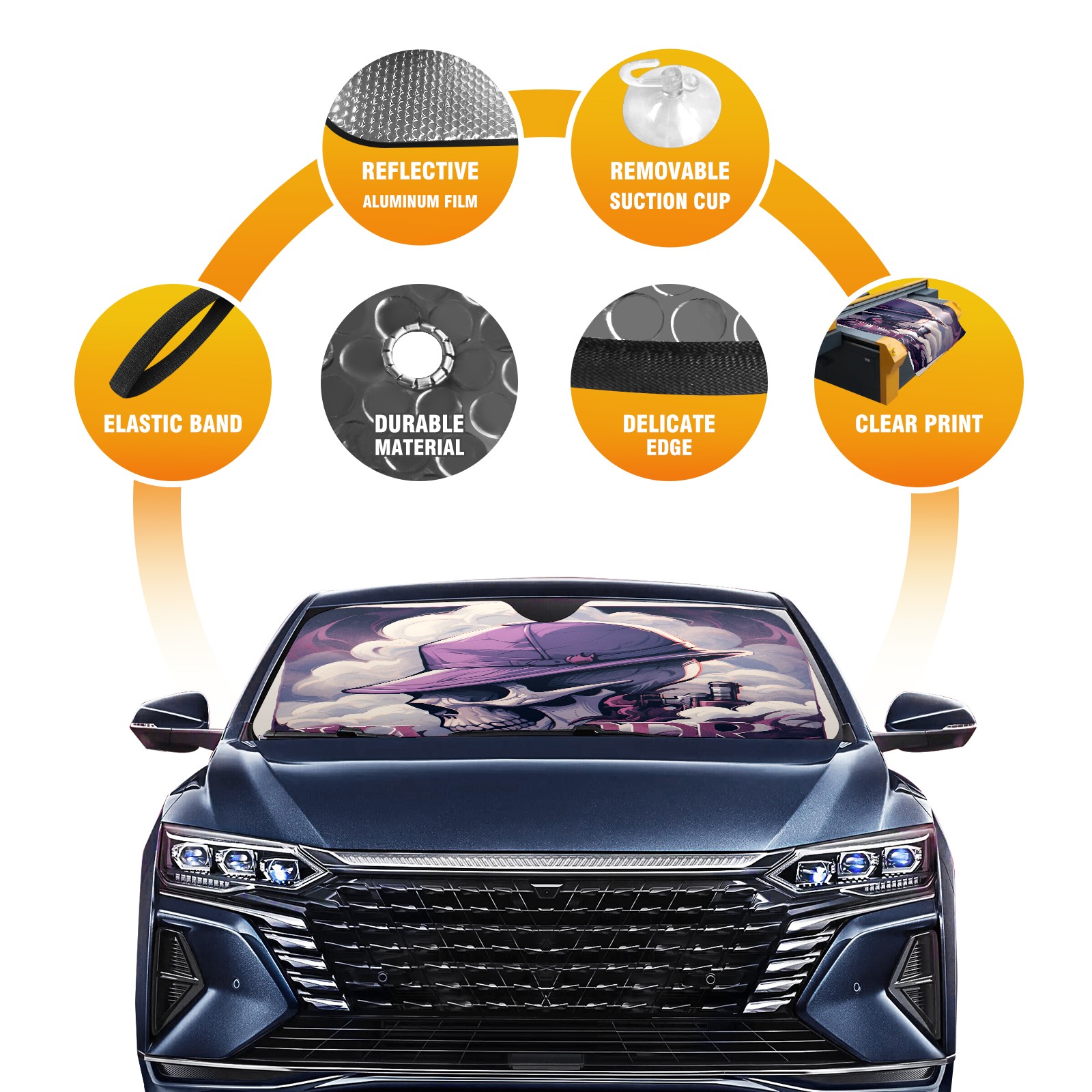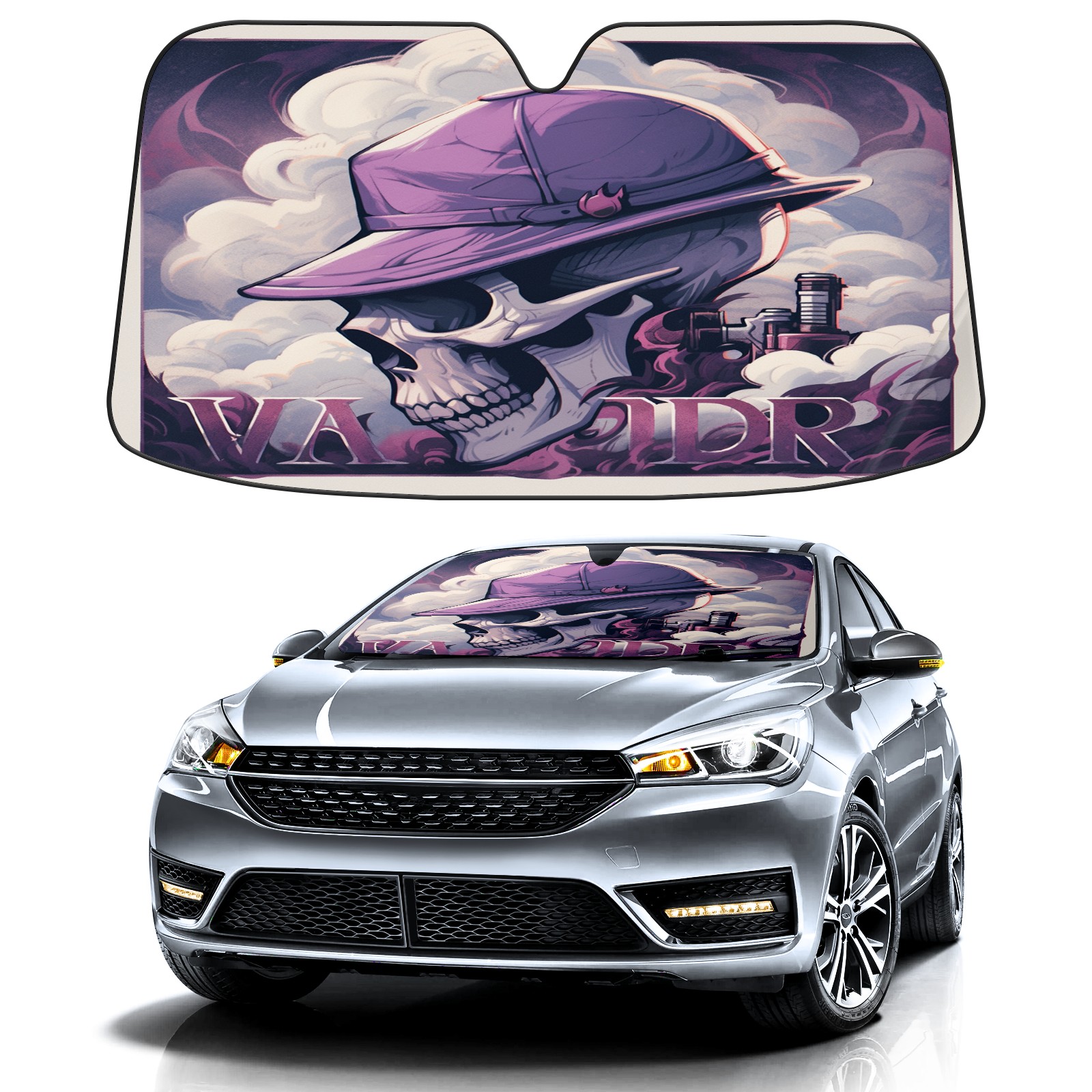 Car Windshield Sun Shade For Front Window Skull Foldable Vehicle Windshield Car Sun Visor Covers Automotive Window Protector Car Camping Privacy Sun Blocker