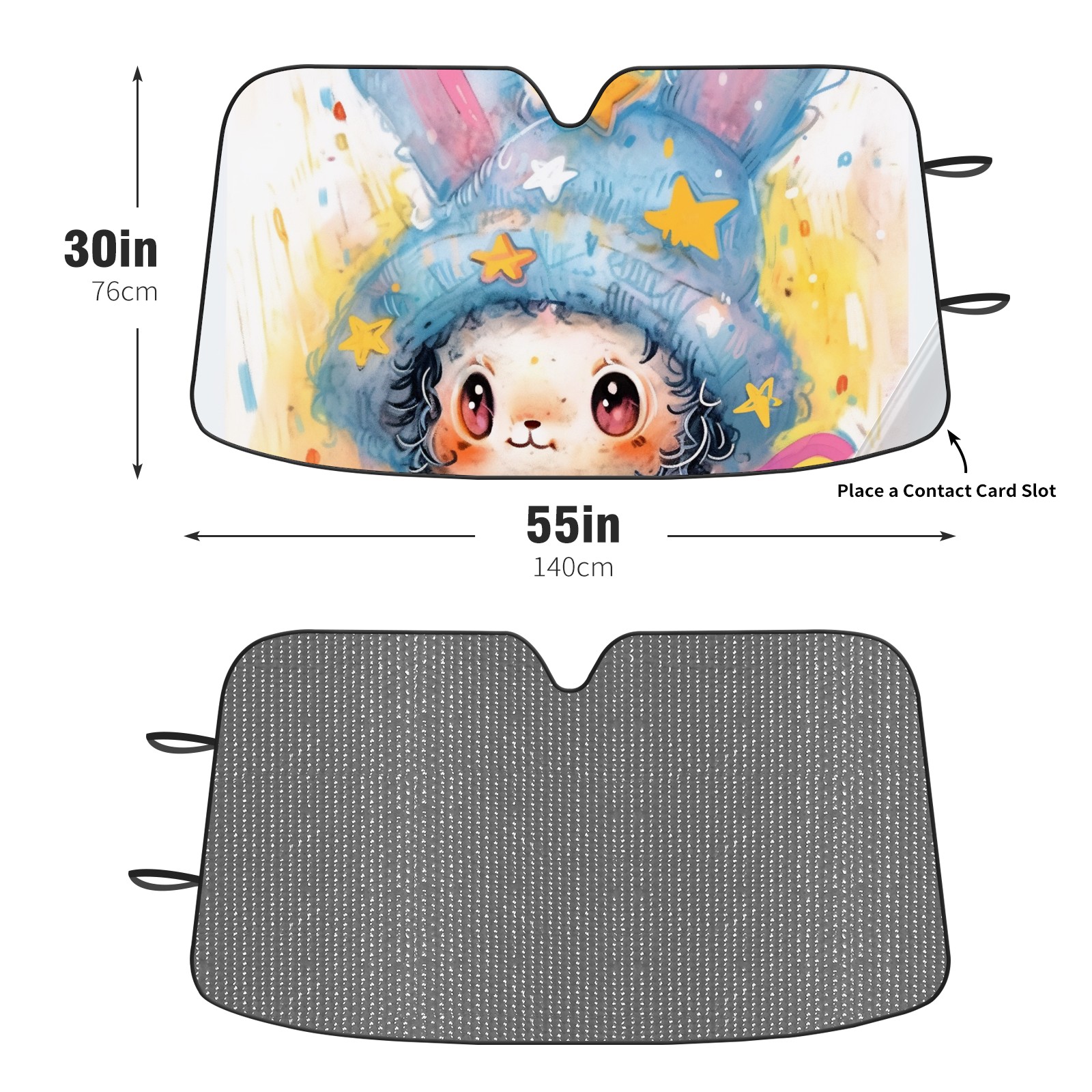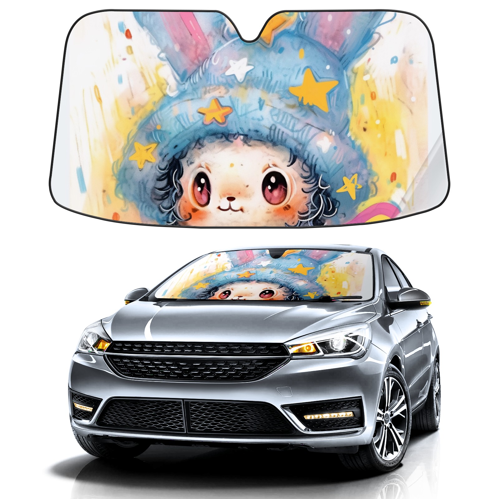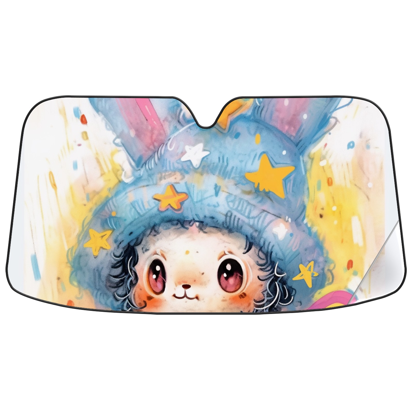 Car Windshield Sun Shade For Front Window Watercolor Rabbit Foldable Vehicle Windshield Car Sun Visor Covers Automotive Window Protector Car Camping Privacy Sun Blocker