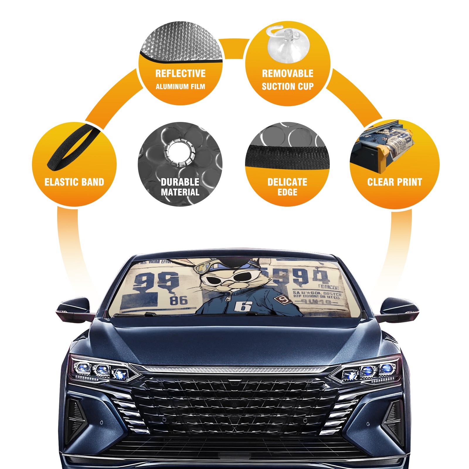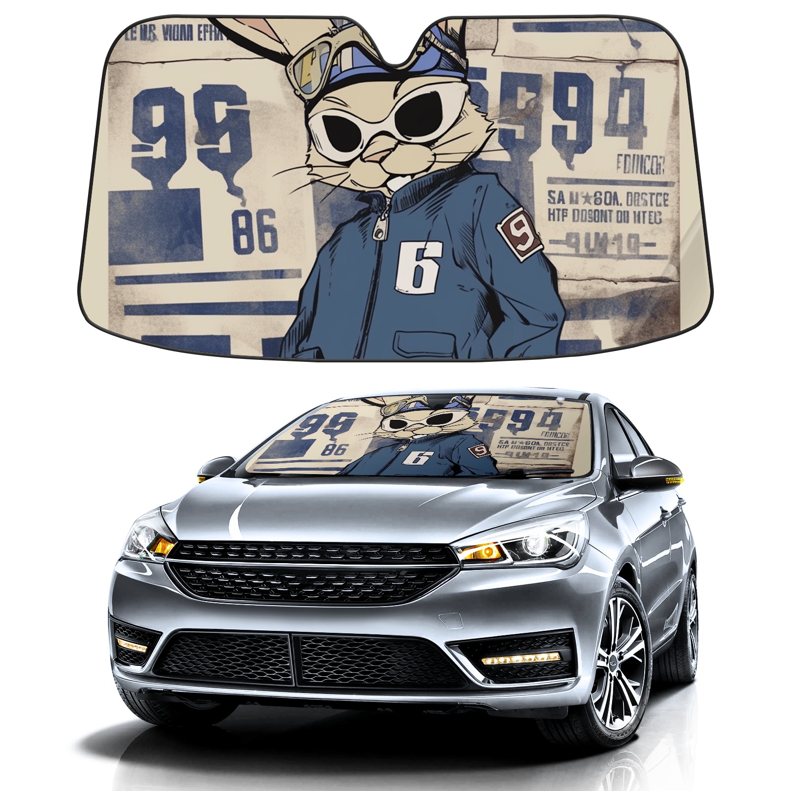Car Windshield Sun Shade For Front Window Domineering Rabbit Foldable Vehicle Windshield Car Sun Visor Covers Automotive Window Protector Car Camping Privacy Sun Blocker