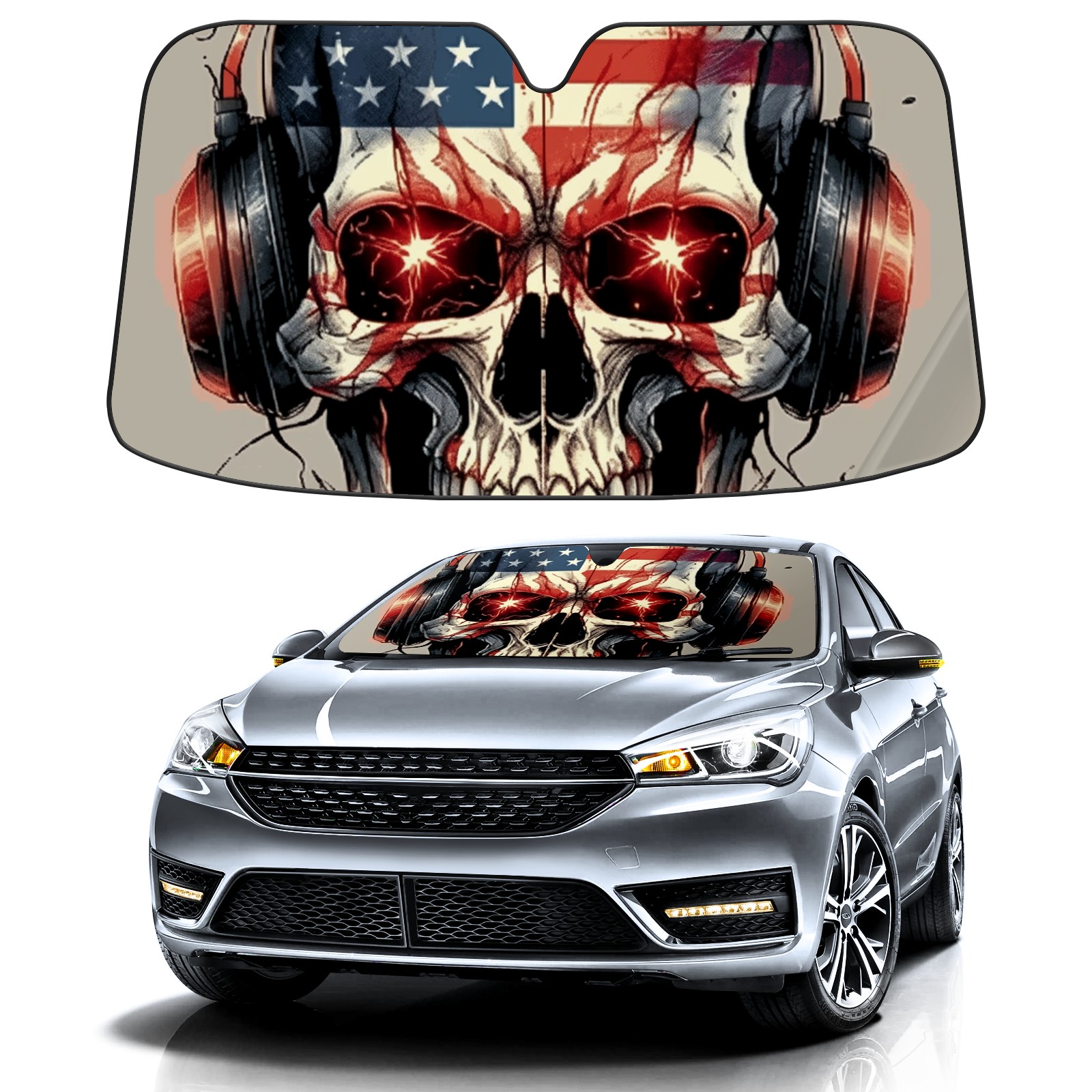 Car Windshield Sun Shade For Front Window Flag Skull Foldable Vehicle Windshield Car Sun Visor Covers Automotive Window Protector Car Camping Privacy Sun Blocker