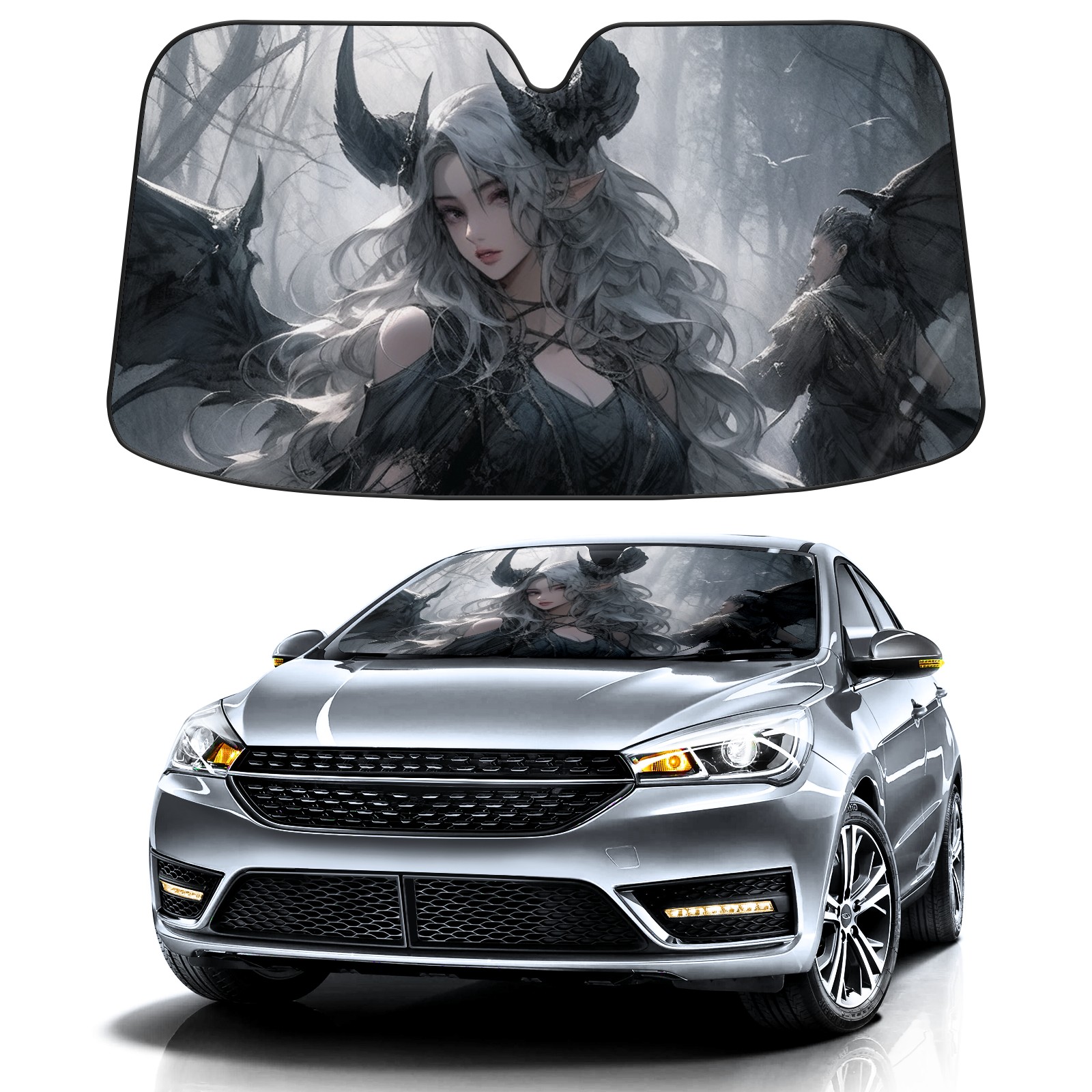 Diameter /Size 63"L x 33.5"W Made from excellent materials which makes it sturdy and protects the car from the sun. Easy to use and pack. Makes the interior of the car cooler.You can easily stash the sunshade in the storage bag or store long term.It open and closes easy. Also the leather storage bag is durable and easy to put the umbrella back into.This windshield sunshade provides complete coverage and keeps your car interior cool under direct sun. It is easy to open and position under the windshield and around the rear-view mirror. Makes Your Car Easy To Identify, Perfect For Finding Your Car In Crowded Parking Lots And Garages.Great Choice: It Is A Great Gift For Dad, Boyfriend, Brother, Brother And Uncle, Friends, Classmates, Family And So On. Notice: Due To Difference Computer Monitors, The Color Maybe Slightly Different From Picture. As Different Measurement Methods, Measurement Data Will Float Within 2%.I Hope You Understand. If You Have Any Question About The Item Please Do Not Hesitate To Contact Us Immediately And We Will Give You A Satisfactory Reply Within 24 Hours.