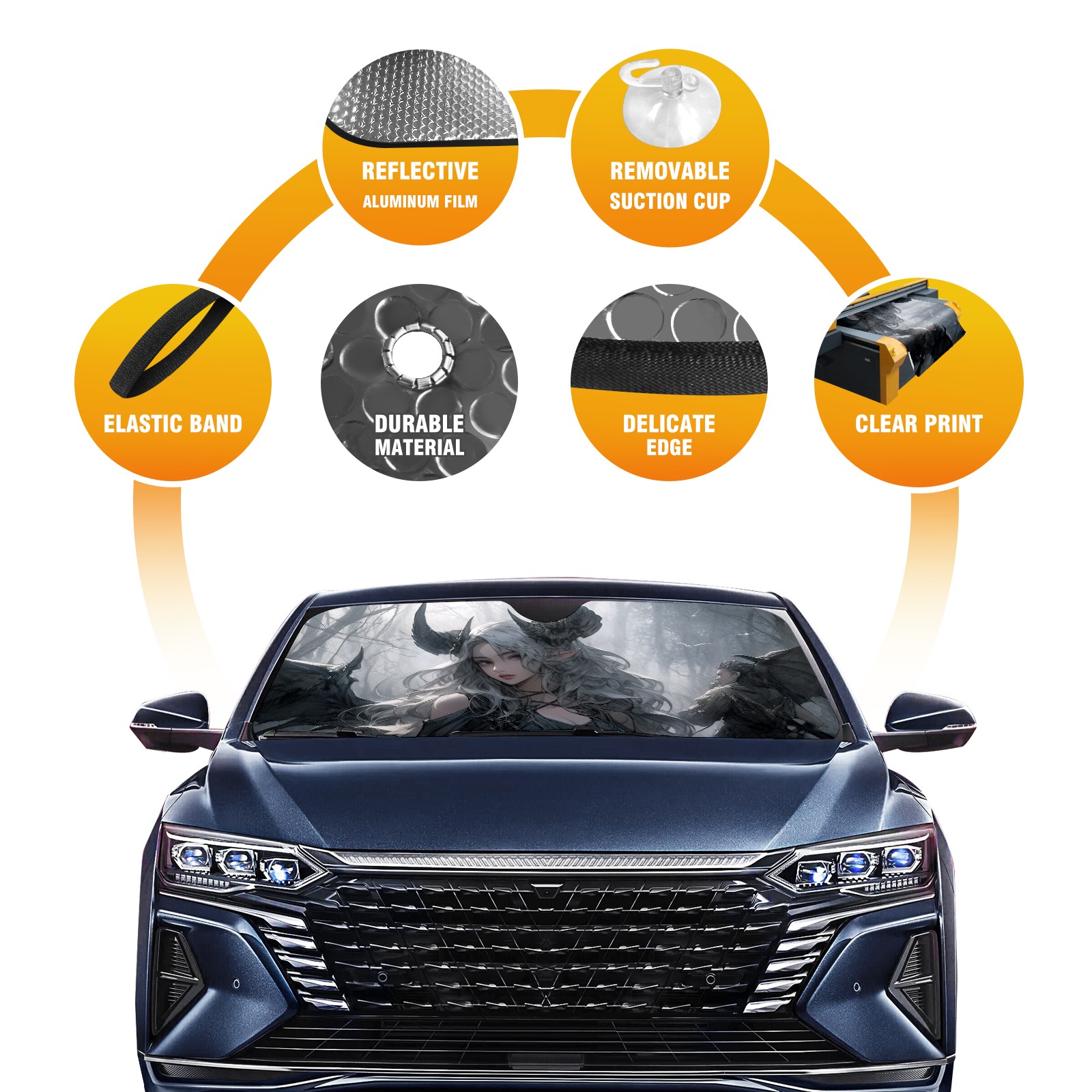 • Diameter /Size 63"L x 33.5"W Made from excellent materials which makes it sturdy and protects the car from the sun. Easy to use and pack. Makes the interior of the car cooler.You can easily stash the sunshade in the storage bag or store long term.It open and closes easy. Also the leather storage bag is durable and easy to put the umbrella back into.This windshield sunshade provides complete coverage and keeps your car interior cool under direct sun. It is easy to open and position under the windshield and around the rear-view mirror. Makes Your Car Easy To Identify, Perfect For Finding Your Car In Crowded Parking Lots And Garages.Great Choice: It Is A Great Gift For Dad, Boyfriend, Brother, Brother And Uncle, Friends, Classmates, Family And So On. Notice: Due To Difference Computer Monitors, The Color Maybe Slightly Different From Picture. As Different Measurement Methods, Measurement Data Will Float Within 2%.I Hope You Understand. If You Have Any Question About The Item Please Do Not Hesitate To Contact Us Immediately And We Will Give You A Satisfactory Reply Within 24 Hours.