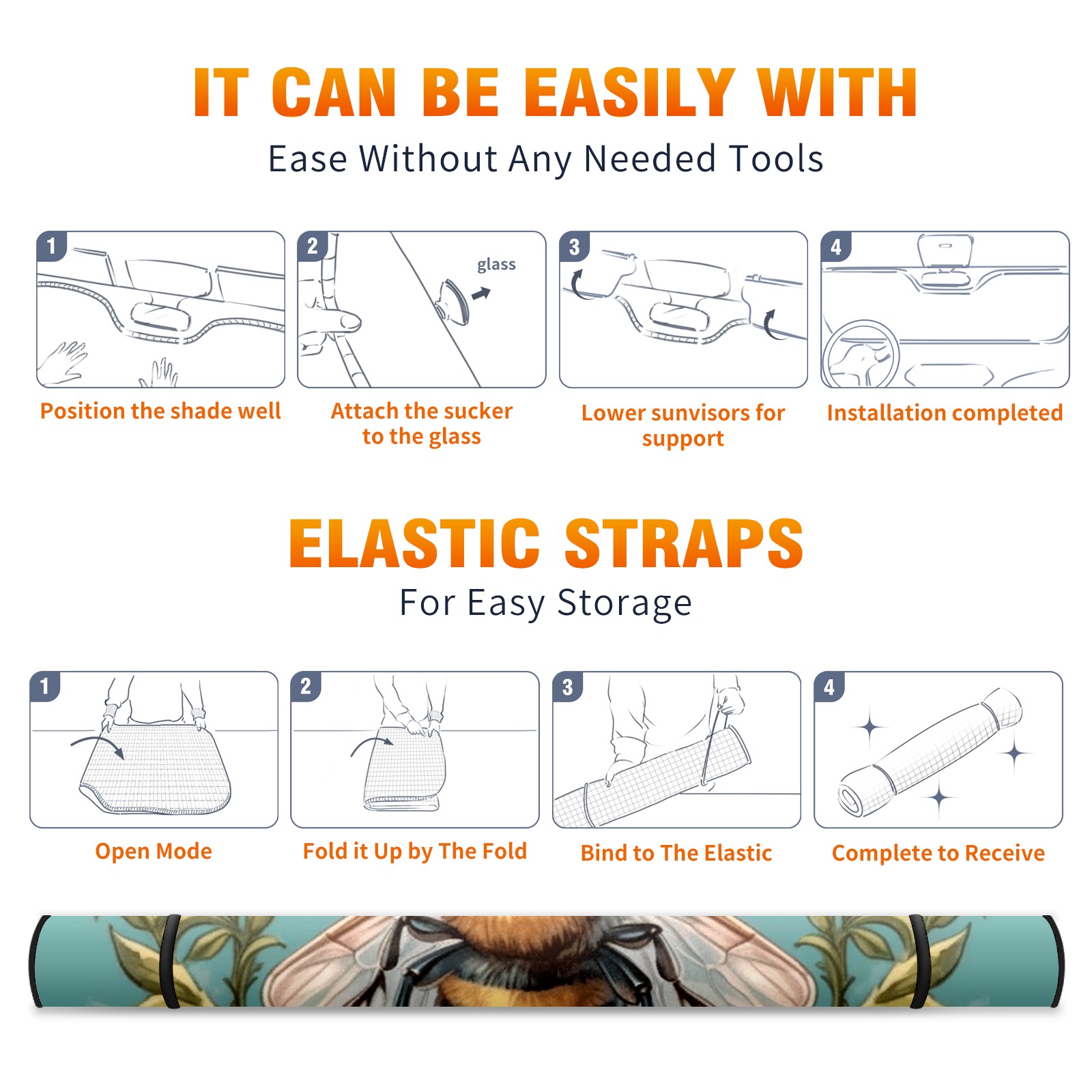 • Diameter /Size 63"L x 33.5"W Made from excellent materials which makes it sturdy and protects the car from the sun. Easy to use and pack. Makes the interior of the car cooler.You can easily stash the sunshade in the storage bag or store long term.It open and closes easy. Also the leather storage bag is durable and easy to put the umbrella back into.This windshield sunshade provides complete coverage and keeps your car interior cool under direct sun. It is easy to open and position under the windshield and around the rear-view mirror. Makes Your Car Easy To Identify, Perfect For Finding Your Car In Crowded Parking Lots And Garages.Great Choice: It Is A Great Gift For Dad, Boyfriend, Brother, Brother And Uncle, Friends, Classmates, Family And So On. Notice: Due To Difference Computer Monitors, The Color Maybe Slightly Different From Picture. As Different Measurement Methods, Measurement Data Will Float Within 2%.I Hope You Understand. If You Have Any Question About The Item Please Do Not Hesitate To Contact Us Immediately And We Will Give You A Satisfactory Reply Within 24 Hours.
